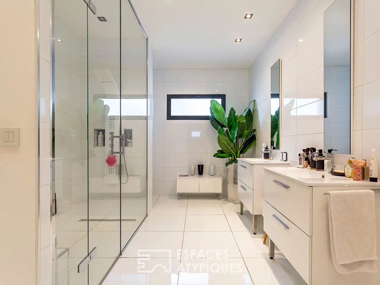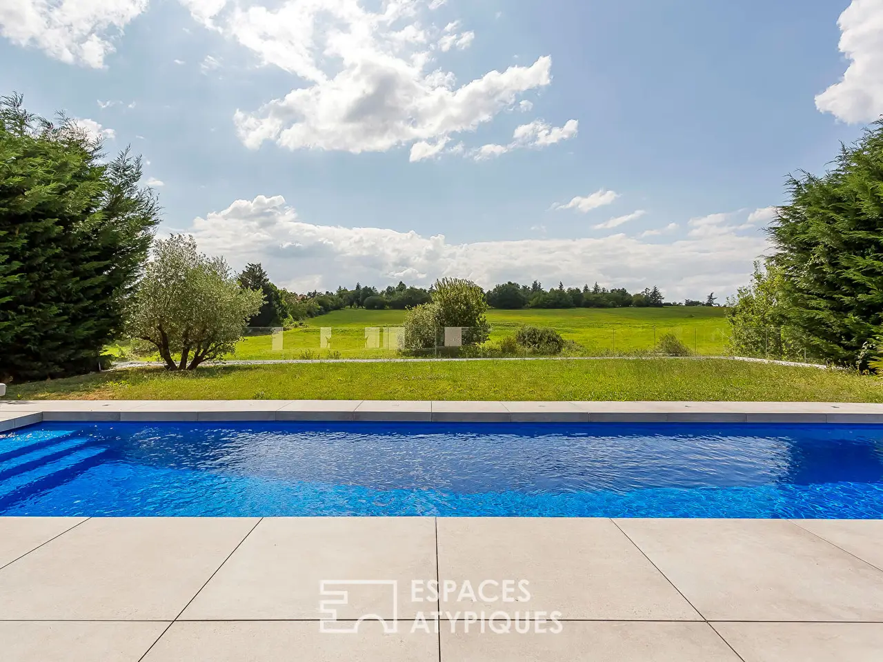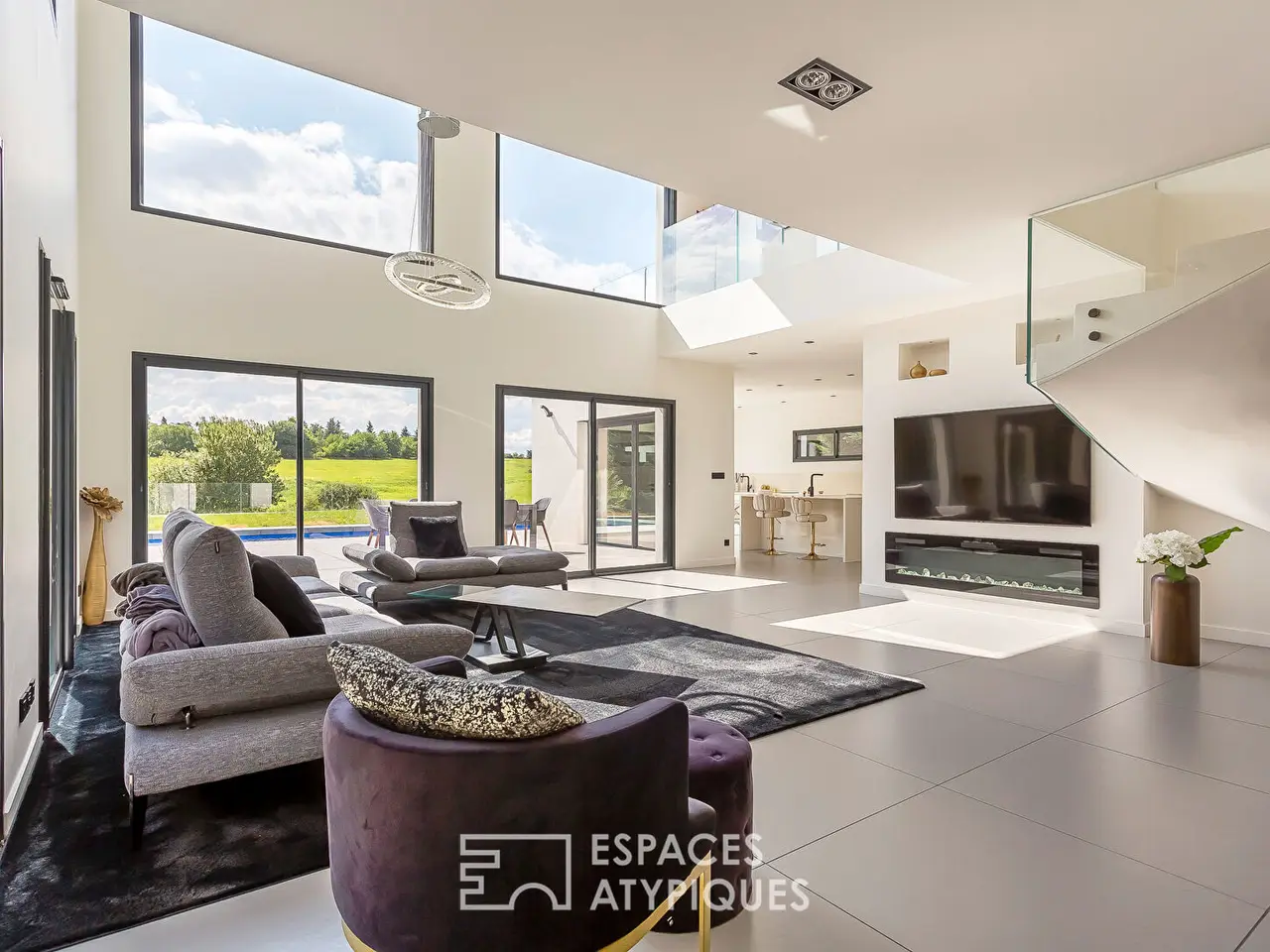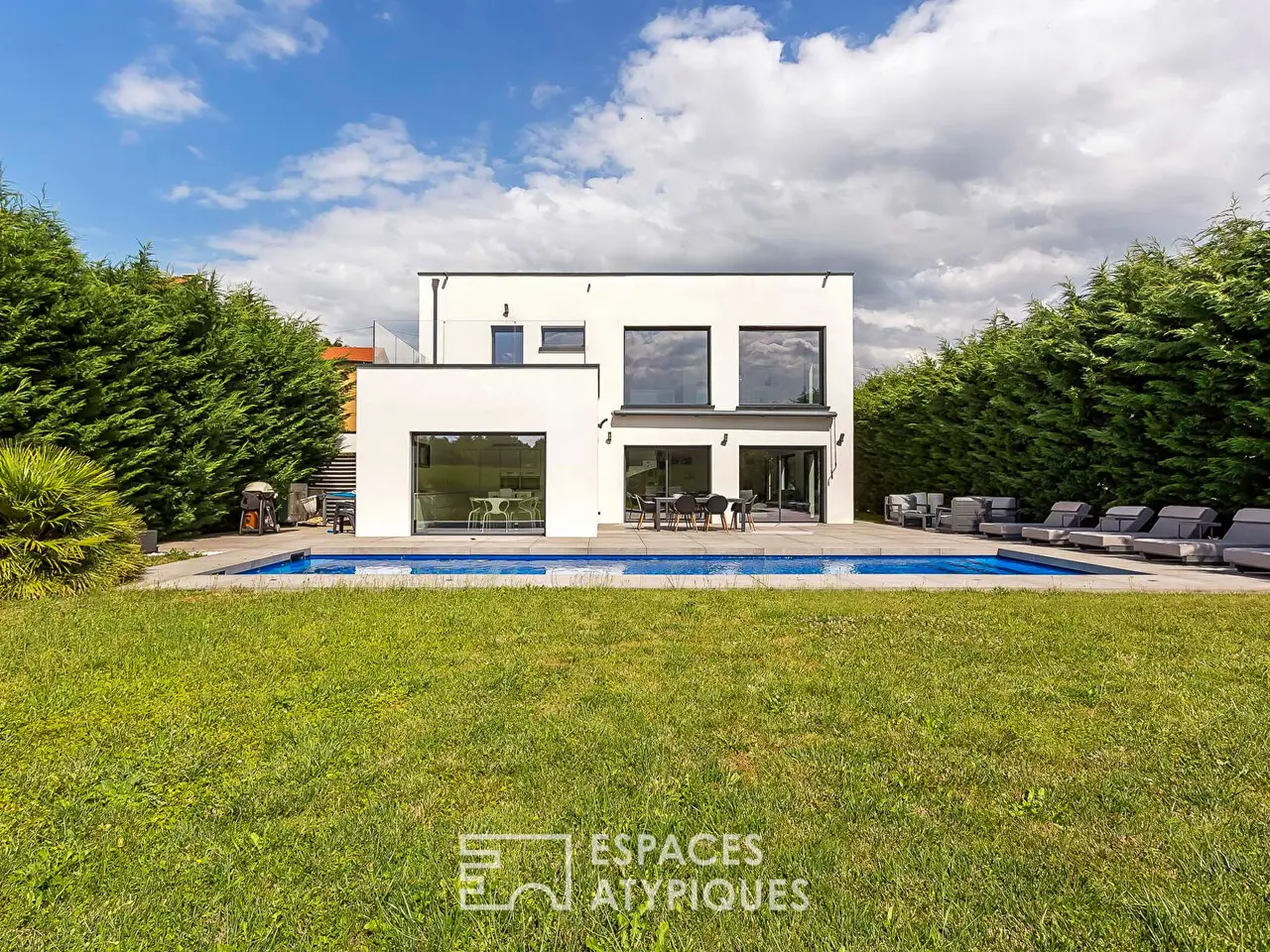 Nestled in the heart of a green setting in Écully, this contemporary house built in 2012, combines architectural elegance and high-end services in a peaceful and sought-after setting. This contemporary house of 234sqm of living space built on a plot of 790sqm with open views combines comfort and modernity. From the entrance, the generosity of the spaces impresses: a vast reception area of 80sqm, is organized around a living room, a dining area and a semi-open and equipped kitchen, all bathed in light thanks to multiple bay windows allowing to admire the view of a rare natural space. The whole communicates with a large terrace and an elegant swimming pool, perfectly integrated into the garden without any vis-a-vis. The sleeping area accommodates a Master Suite on one level of 37sqm, with private bathroom and access to the outside. Upstairs, four bedrooms, all with their own private bathroom, offering each occupant independence and privacy, a true luxury in everyday life. An exceptional address for a refined and bright daily life. ENERGY CLASS: / CLIMATE CLASS: . Estimated average amount of annual energy expenditure for standard use, indexed to the years 2021, 2022, 2023 Contact: Amandine: 06 50 86 46 08 REF. 11920 Additional information * 6 rooms * 5 bedrooms * 5 shower rooms * Outdoor space : 790 SQM * Parking : 3 parking spaces * Property tax : 2 200 € Energy Performance Certificate EPC blank or in progress Agency fees The fees include VAT and are payable by the vendor