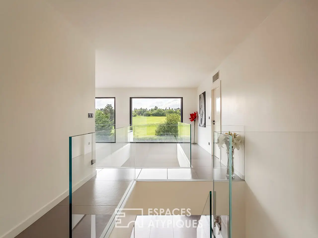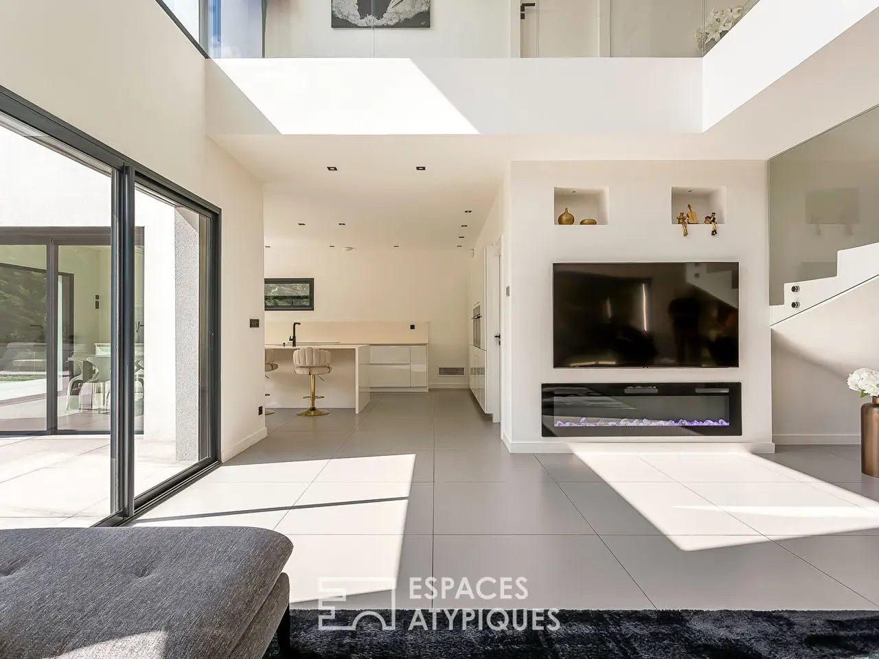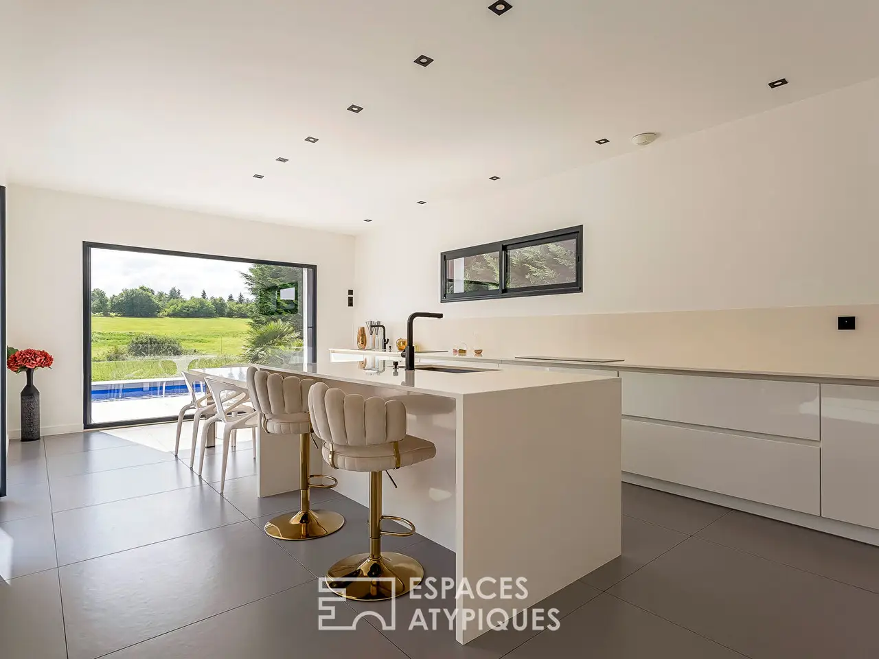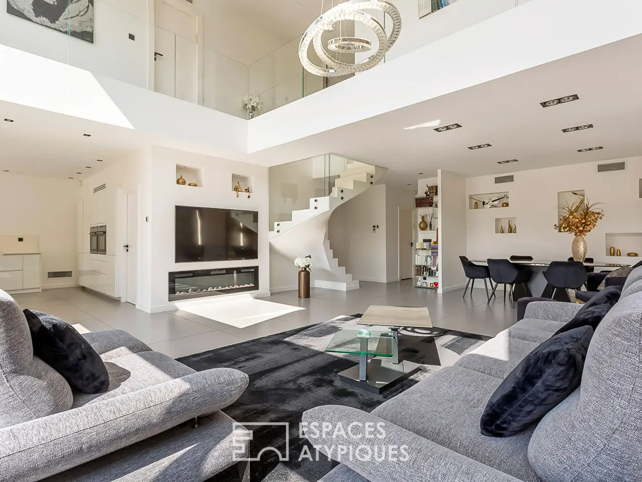 Nestled in the heart of a green setting in Écully, this contemporary house built in 2012, combines architectural elegance and high-end services in a peaceful and sought-after setting. This contemporary house of 234sqm of living space built on a plot of 790sqm with open views combines comfort and modernity. From the entrance, the generosity of the spaces impresses: a vast reception area of 80sqm, is organized around a living room, a dining area and a semi-open and equipped kitchen, all bathed in light thanks to multiple bay windows allowing to admire the view of a rare natural space. The whole communicates with a large terrace and an elegant swimming pool, perfectly integrated into the garden without any vis-a-vis. The sleeping area accommodates a Master Suite on one level of 37sqm, with private bathroom and access to the outside. Upstairs, four bedrooms, all with their own private bathroom, offering each occupant independence and privacy, a true luxury in everyday life. An exceptional address for a refined and bright daily life. ENERGY CLASS: / CLIMATE CLASS: . Estimated average amount of annual energy expenditure for standard use, indexed to the years 2021, 2022, 2023 Contact: Amandine: 06 50 86 46 08 REF. 11920 Additional information * 6 rooms * 5 bedrooms * 5 shower rooms * Outdoor space : 790 SQM * Parking : 3 parking spaces * Property tax : 2 200 € Energy Performance Certificate EPC blank or in progress Agency fees The fees include VAT and are payable by the vendor
