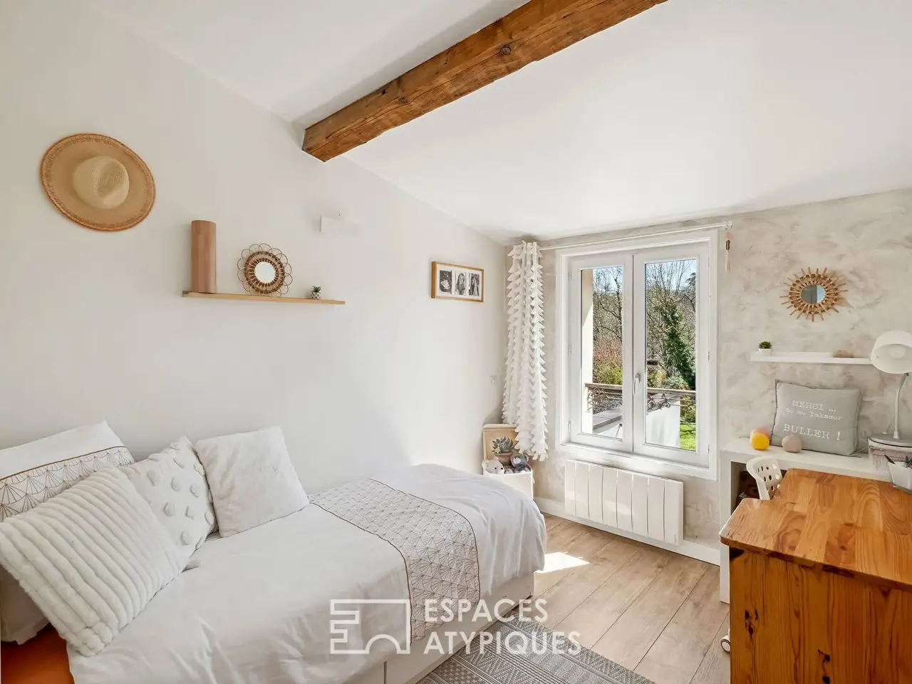 Located just a few minutes' walk from the center of Ecully, this hamlet house combines charm, modern comfort, and serenity. Secluded from view, it spans approximately 160 sqm and opens onto a 1,500 sqm landscaped garden. Upon entering, the eye is drawn to the light-filled kitchen. Its open-air ceiling accentuates the space and naturally extends the view toward the terrace and garden, promising convivial moments. Adjoining it, a spacious dining room precedes a cozy living room, enhanced by a fireplace, terracotta tiles, and beautiful windows overlooking the exterior. A multipurpose space completes this level, offering the possibility of an office, a reading room, or a fourth bedroom. Also on the ground floor, a master suite adds an extra touch of comfort. Built from a modern extension of over 23 sqm, the bedroom offers a dressing room and a practical and functional bathroom. Upstairs, two bedrooms enjoy beautiful light and share a bathroom. The peaceful, tree-lined exteriors are visible from each room and invite contemplation. A separate space of approximately 15 sqm can be used as a workshop, office, or studio. Just a short walk from the center, this light-filled house invites both tranquility and shared moments.A green setting where time seems to stand still, combining charm and convenience. ENERGY CLASS: D / CLIMATE CLASS: B Estimated average annual energy costs for standard use, based on 2021 energy prices: EUR2,050 and EUR2,830. Contact: Amandine - 06 50 86 46 08 REF. 12473 Additional information * 5 rooms * 3 bedrooms * 1 bathroom * 1 bathroom * Outdoor space : 1800 SQM * Property tax : 840 € Energy Performance Certificate Primary energy consumption d : 195 kWh/m2.year High performance housing