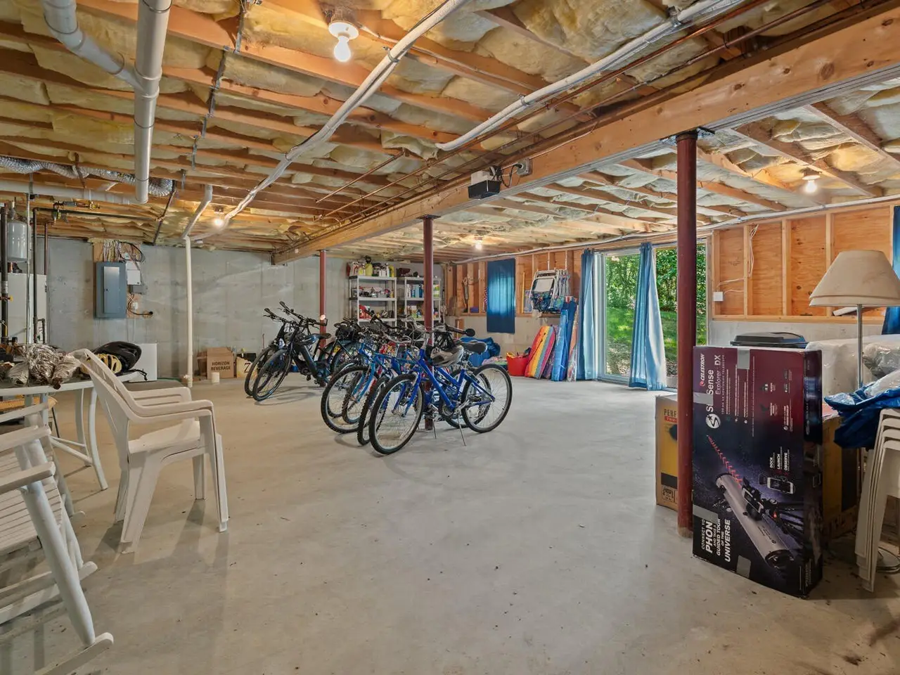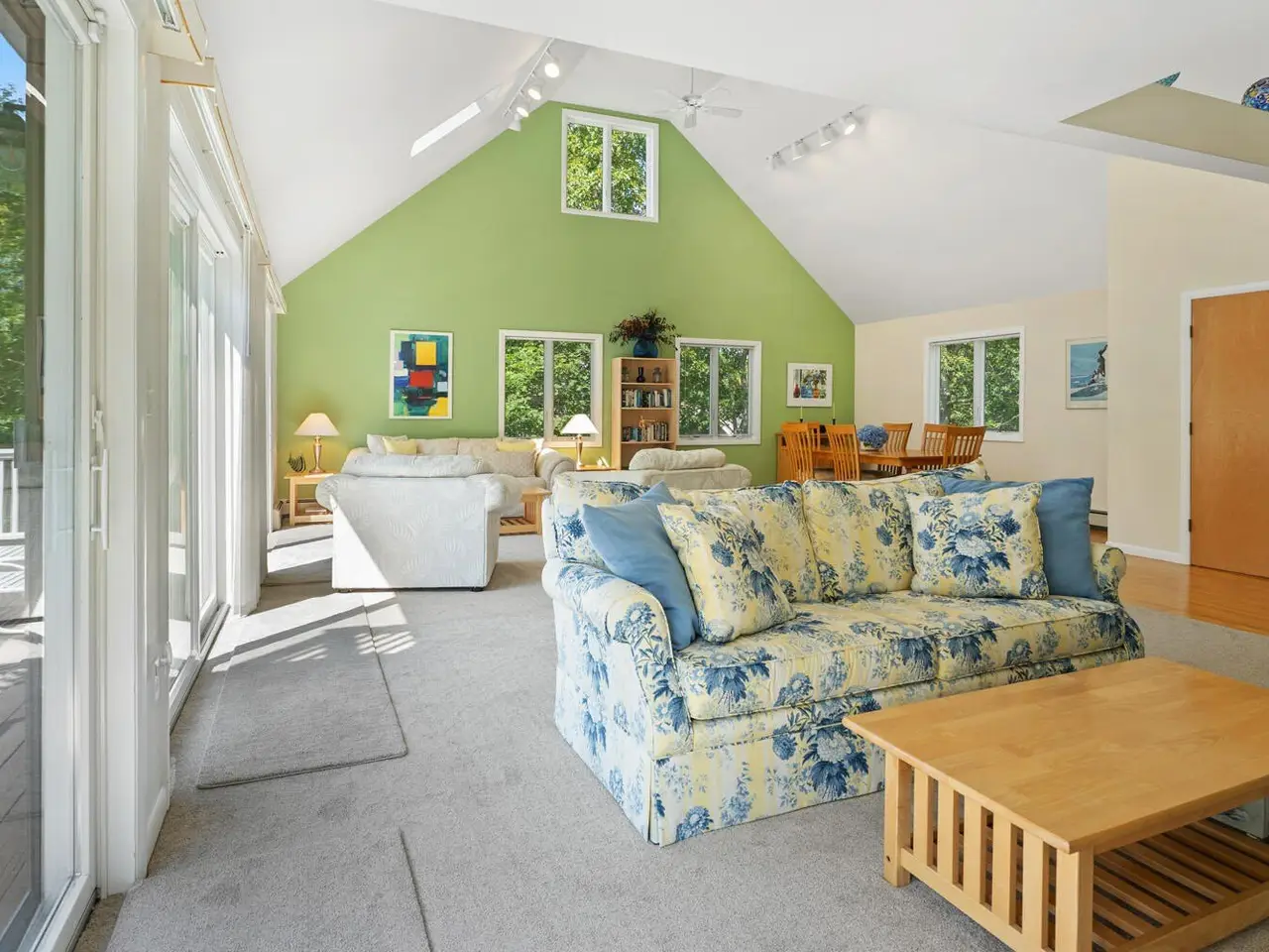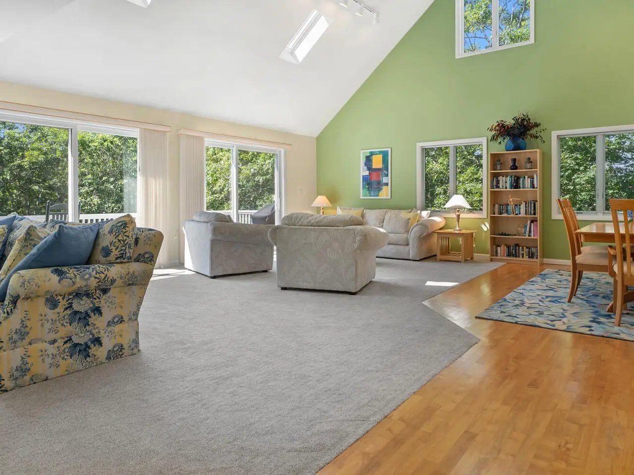 Bright second-floor great room with skylights