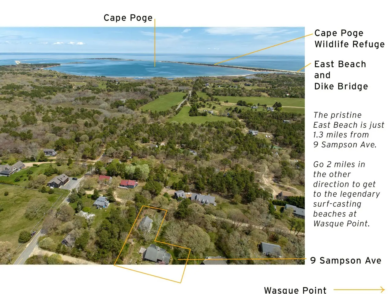 A home for all seasons --- If you choose to have a comfortable, kick-your-shoes-off, not-fussy, beach home on the tranquil island of Chappaquiddick, then this is your destination. The fabulous, pristine, seemingly endless miles of shoreline at East Beach, just over Dike Bridge, is only 1.3 miles distant. The gorgeous beaches at Wasque Point, where you will also find some of the finest surf casting on the east coast, are only 2.1 miles away and the 30.6 acre MV Land Bank Quammox Preserve with its small boat landing on Katama Bay is only 9/10 mile from the property. Chappaquiddick is crisscrossed with walking trails, two of which are a short distance from the front door. If your goal is to establish a firmer, year-round foothold on this idyllic, pastoral island, two ferries removed from the stresses and uncertainty of the modern world, then this can also be your destination. It is currently the home of a well-known fine artist with an impressive studio and a boat builder specializing in small wooden boats with an equally impressive workshop in an adjacent building. The year-round Chappaquiddick community embraces its residents with many neighborhood functions and activities that create a tapestry of connections that make life there very pleasant at all times of the year. Whatever your purpose, this 3 bedroom, 2 bathroom, 2,046 square foot home, situated on almost a half-acre of easily maintained lawns and colorful, natural gardens, offers a great platform for your exciting future.