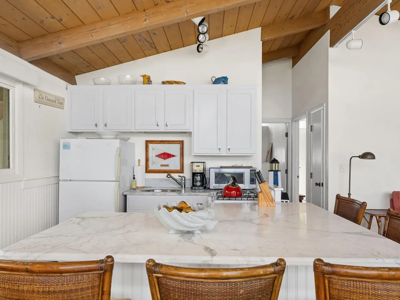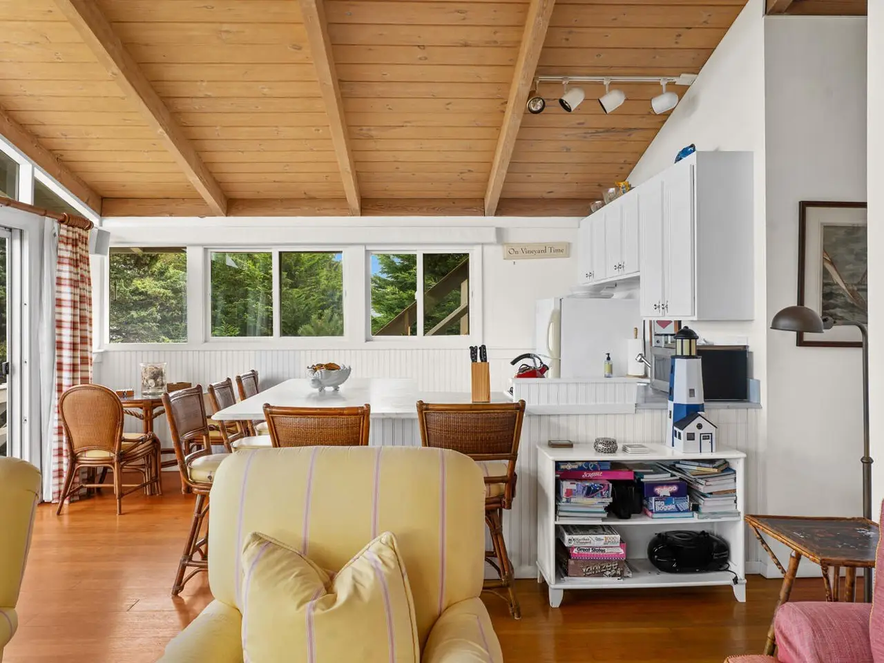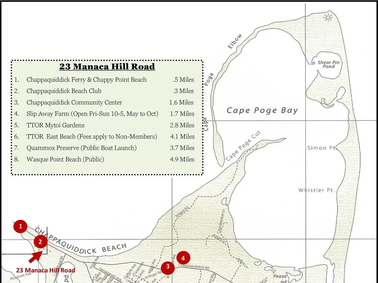 Enjoy dynamic, panoramic views from this charming and thoughtfully updated single-story Chappaquiddick cottage. Designed for effortless living, the home features an expansive deck overlooking the outer harbor and iconic lighthouse, perfect for entertaining or relaxation. A rooftop observation area provides additional seating and even more breathtaking vistas. Deeded beach access is conveniently located just across the way, offering a tranquil spot to enjoy the sandy shore and calm waters of the outer harbor. Ideally situated just off the Chappy Ferry, Manaca Hill offers the best of both worlds: easy access to the shops, dining, and vibrant charm of Downtown Edgartown, while embracing the laid-back, coastal lifestyle that makes Chappaquiddick so special.