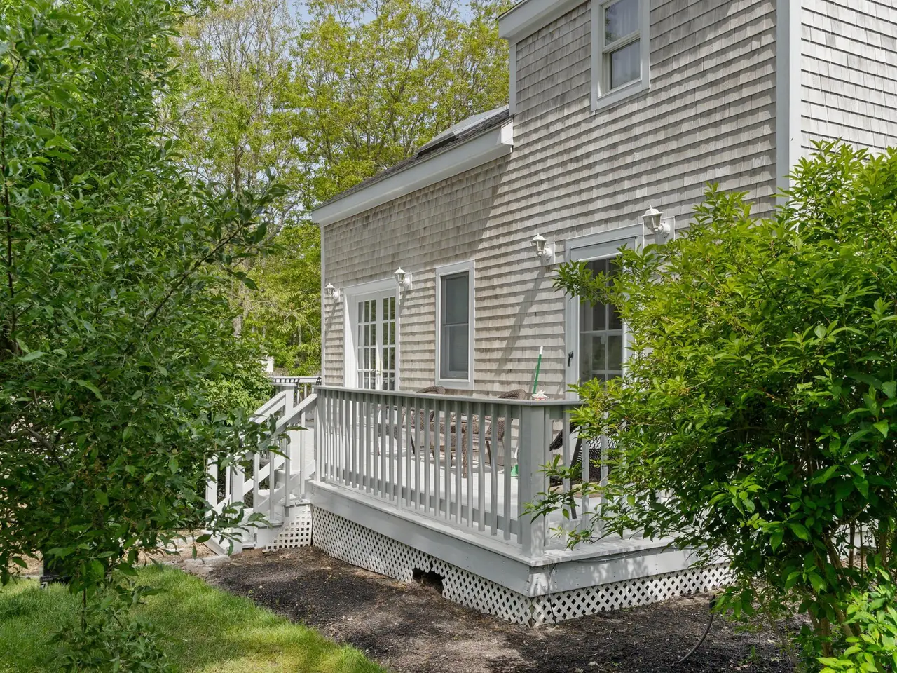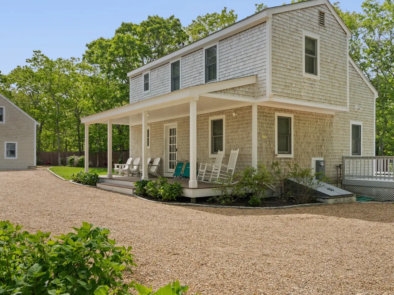 Pristine and superbly maintained, this two-bedroom home and two-bedroom guest house has tremendous upside potential and a substantial rental history. Seven bedrooms are allowed on the site, so the addition of two in the main house is possible within regulations. The property has been freshly landscaped with extensive plantings and an irrigation system. The list of improvements is long, and the result is a stylishly updated property inside and out. It is conveniently located halfway between Morning Glory Farm and Meetinghouse Road, a primary access road to South Beach, 3.8 miles distant and only 8 minutes by car. Adjacent to the bike path, it is 2 miles, 6 minutes by car, to Main Street in Edgartown. It is being offered fully furnished and turnkey, with the exception of a few personal items. In spite of all its distinct advantages, this desirable property has yet to reach its maximum potential.