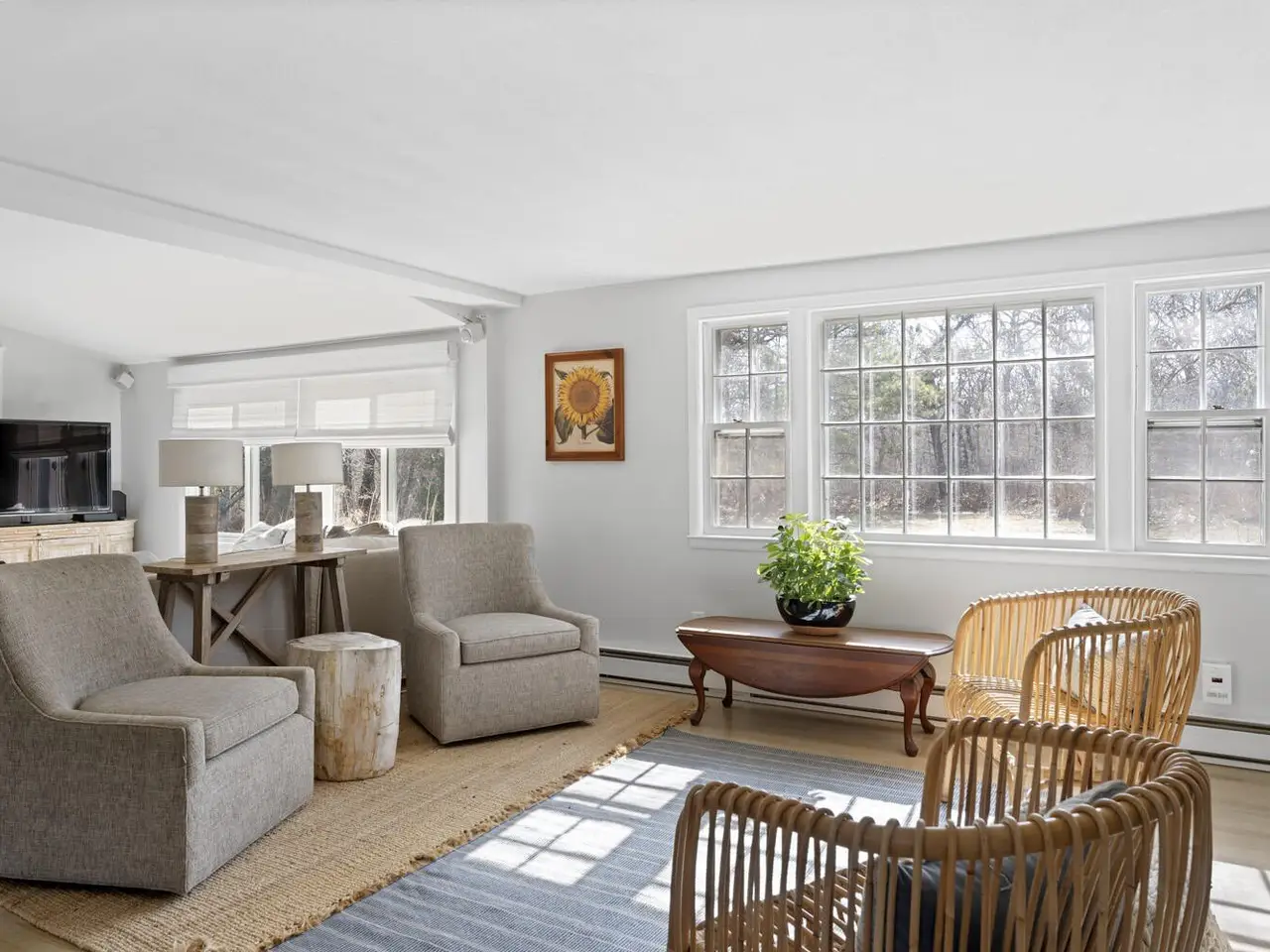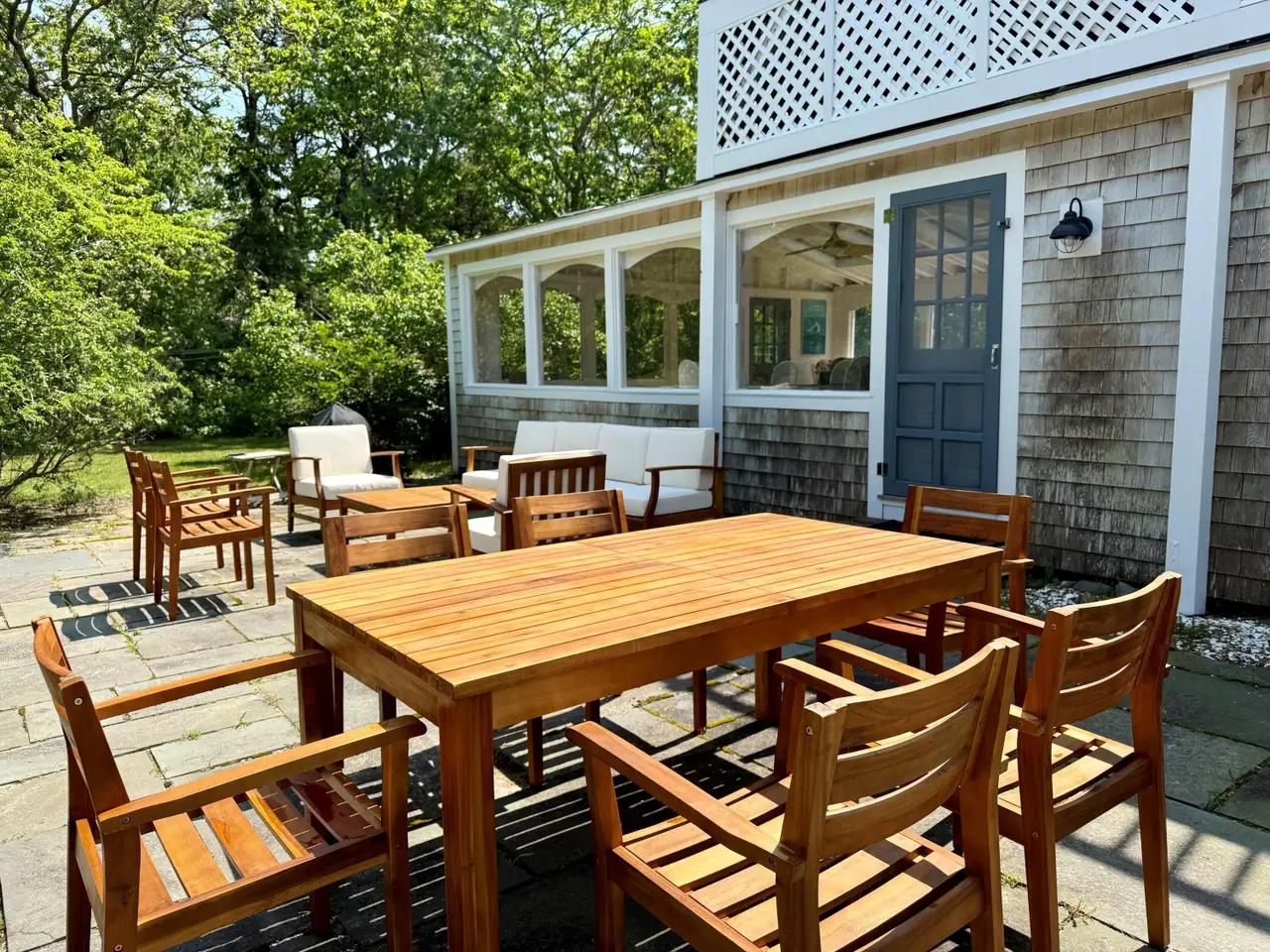 Tucked just off the paved road on picturesque Chappaquiddick, this inviting three-bedroom Cape is the ultimate island retreat. Designed for laid-back living, the home offers a cheerful and versatile floor plan with generous indoor and outdoor spaces. The star of the show? A sprawling screened-in porch with a cozy wood-burning fireplace—perfect for summer nights or crisp fall evenings. The backyard is a private oasis, backing up to conservation land for lasting serenity. Direct access to the nearby walking trails means adventure is right outside your door. Less than a mile away, the calm, swimmable waters of Katama Bay beckon, ideal for paddling, picnicking, and memory-making. Whether you're seeking a peaceful escape or a fun-filled summer basecamp, this lovingly maintained home is move-in ready and waiting to welcome you.