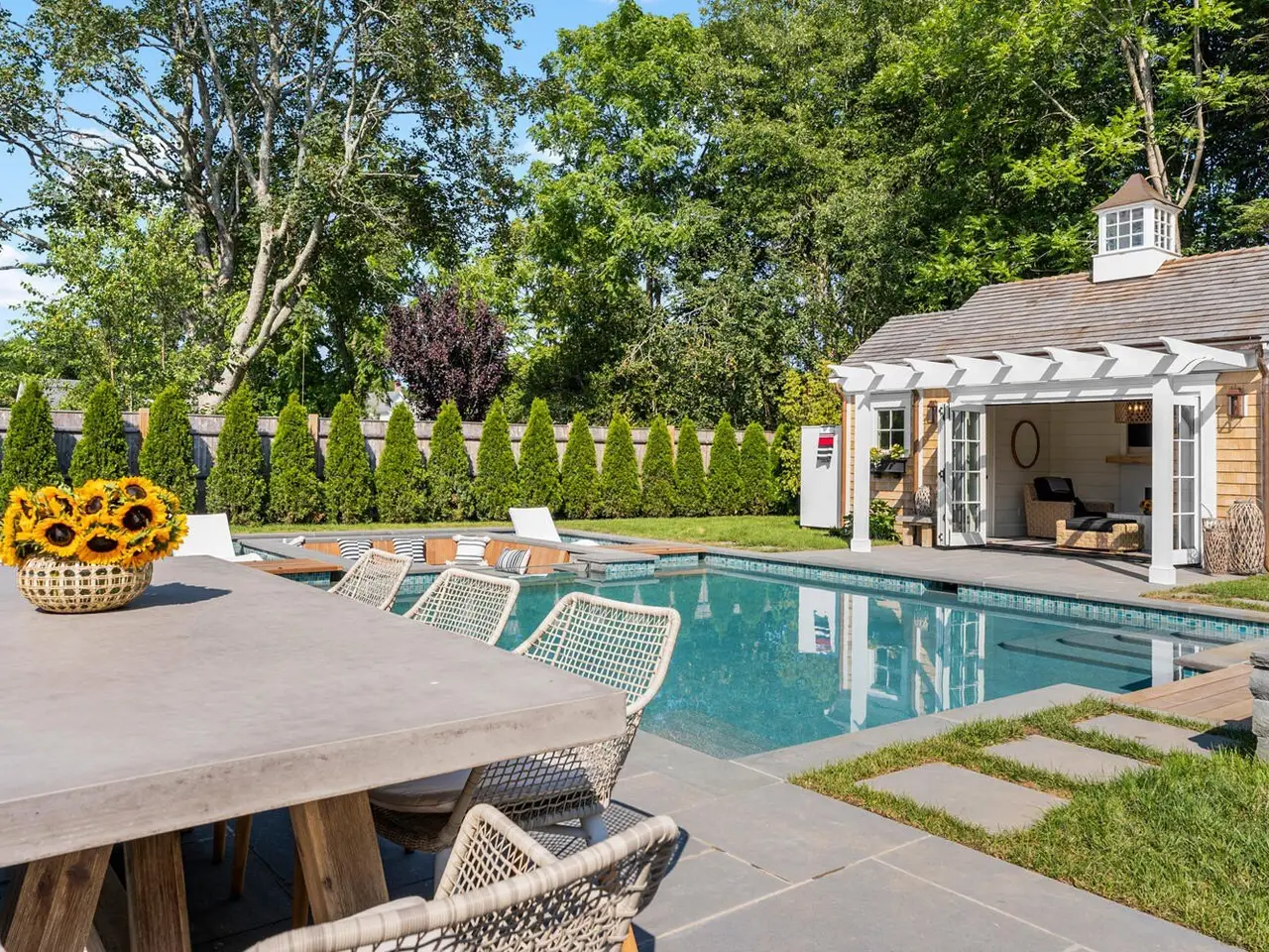 Refined, timeless, and unparalleled, 43 Peases Point Way South effortlessly blends warmth, elegance, and sophistication to create a truly distinctive living experience in one of Edgartown's most coveted locations. Designed by celebrated architect Patrick Ahearn, this exceptional residence is just a short stroll from historic Main Street. From the gated arbor entry and tranquil courtyard to the thoughtfully curated interiors and unique floor plan, every detail reflects impeccable craftsmanship and intentional design. The outdoor living space is equally remarkable, featuring a heated saltwater pool, a sunken fire pit, and a show-stopping custom glass wall feature. With a strong, proven rental history, this luxurious retreat offers both investment potential and flexibility for today's discerning buyer. A rare and refreshing opportunity in the heart of Edgartown Village.
