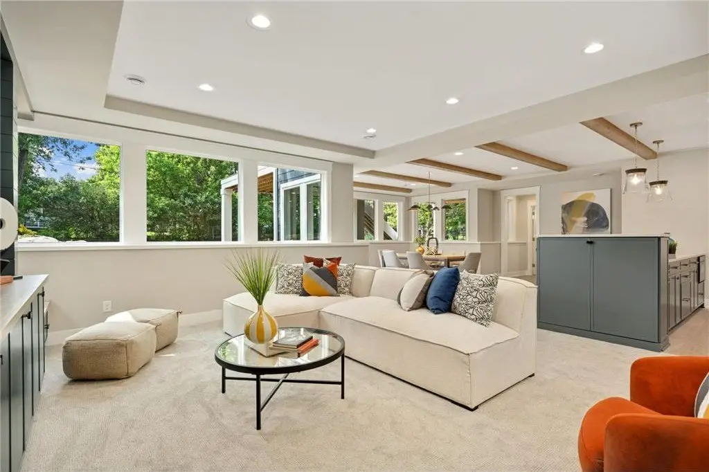 This stunning Wooddale Builders home offers exceptional design and craftsmanship in the heart of Edina. The main level features a light-filled great room with walls of windows and a gourmet center island kitchen with a walk-through pantry. Four bedrooms sit upstairs, including a luxurious owner’s suite with a spa-inspired bath and walk-in shower. The inviting three-season porch—with fireplace, shiplap detailing, retractable windows, and a barn wood ceiling with beams—creates the perfect year-round retreat. The finished lower level includes a walk-behind bar and Wooddale’s signature hidden doors, ideal for entertaining. Additional highlights include a three-car heated garage with epoxy floors, welcoming front porch, and spacious back deck overlooking a beautiful yard. Blending luxury, comfort, and timeless style, this home exemplifies Edina living at its best.