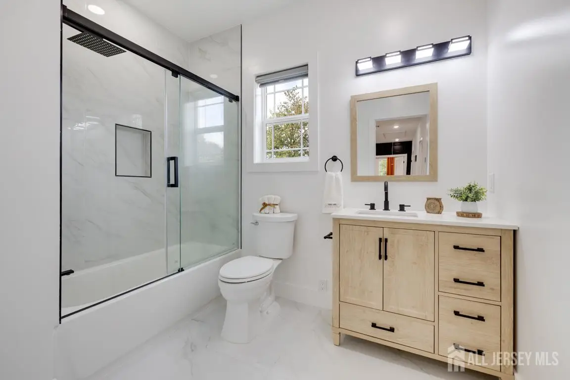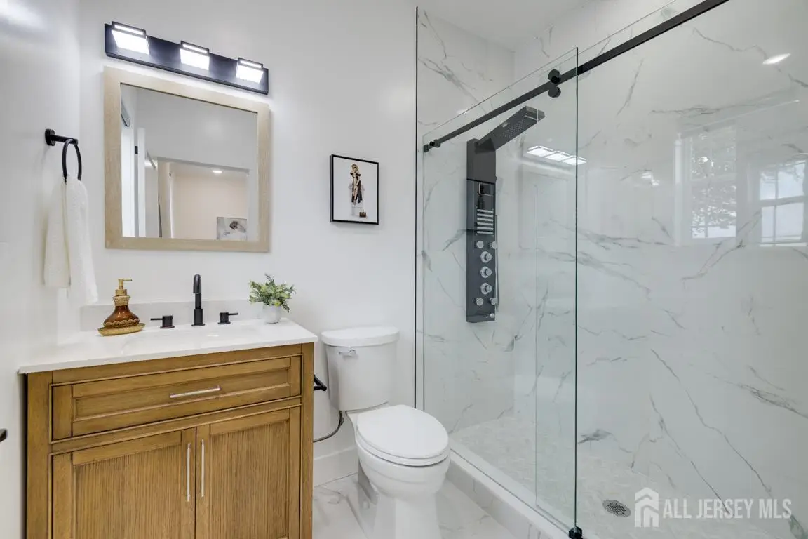 Welcome to this exquisite 5-bedroom, 5-bathroom home with a fully finished exterior access basement in Edison offering over **5,100 sq ft** of total living space, including the basement with a full bath. *** Experience luxury living with spacious interiors, modern design, and top-tier finishes throughout. The inviting floor plan features **9-foot ceilings on both levels** and a **first-floor bedroom with a full bath**, ideal for guests. *** The **gourmet kitchen** is a chef's delight equipped with a cooktop, high-end appliances, custom cabinetry, and a convenient breakfast bar perfect for casual dining. The **family room** exudes warmth and sophistication with an elegant electric fireplace and refined deco. *** Upstairs, the **primary suite** offers a spacious closet and a spa-like ensuite bath with a soaking tub for ultimate relaxation. An additional **ensuite bedroom** plus two more generous bedrooms sharing a full bath provide flexibility and comfort for family or guests. The **second-floor den** makes an ideal office, library, or extra lounge area, complete with access to a private balcony. *** Additional premium features include **Pella windows**, **dual-zone HVAC**, **EV charger setup**, and **security camera readiness**. The **finished basement**, with ceilings over 8 feet and a full bath, provides endless possibilities for a home theater, gym, or recreation space. *** Nestled in a sought-after Edison neighborhood, this home offers **easy access to major highways, top-rated schools, shopping centers, dining, parks, and the Edison NJ Transit station** ( and #8776;50 minutes to NYC). Close to **Rutgers University, RWJ Hospital**, and major supermarkets and malls, this property delivers the perfect blend of **luxury, convenience, and location**. **Truly one of the finest homes in South Edison a rare opportunity not to be missed!**