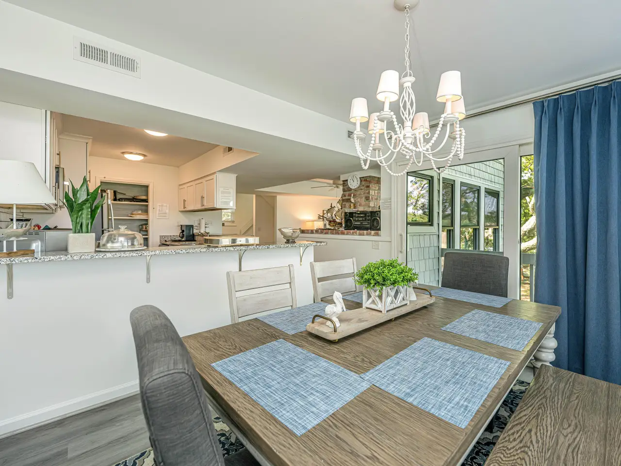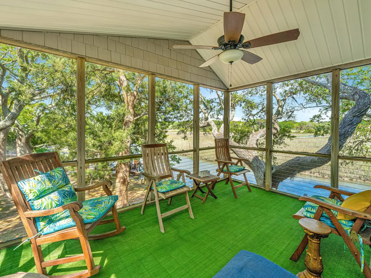King's Grant house - glorious creekside and direct ocean views with pedestrian access to Edingsville Beach. Almost total renovations in 2019 (see feature list in documents), this designer decorated home is offered fully furnished including kayak (jon boat negotiable). Spectacular views abound from every room, balcony, screen porch, and multiple ground level decks. The dock with float awaits your boating/kayaking/fishing adventures. Hurry, don't miss this one.
