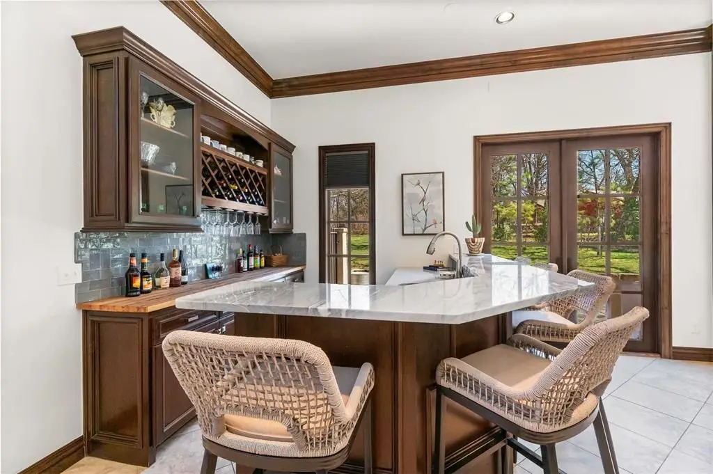 - Custom wet bar with stone fireplace