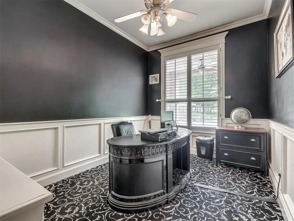 he perfect backdrop for turning life’s most meaningful moments into lasting memories. Nestled along the 5th fairway in the prestigious gated community of Fairfax Estates, this exquisite residence offers timeless elegance, inviting warmth, and sweeping golf course views. Picture ending each day with a front-row seat to breathtaking sunsets from your covered back porch, complete with a sparkling pool and generous outdoor living designed for both entertaining and relaxation. Step through the grand entry to find a spacious formal dining room, a sweeping staircase, and a refined sitting area off the foyer, setting the tone for the elevated living throughout. Rich wood floors flow across the main level, enhancing both beauty and comfort. The central living room features a cozy fireplace, custom built-ins, and easy flow to the chef-ready kitchen, equipped with abundant cabinetry, a center island, walk-in pantry, and expansive prep space. Just off the private primary suite is a dedicated study with double glass doors, built-in bookcases, and large windows, ideal for a home office or quiet retreat. The primary suite offers serene backyard views and a spa-inspired ensuite with dual vanities, a luxurious jetted tub, walk-in shower, and custom closet. Upstairs, a versatile flex room awaits, perfect as a media room, home gym, or bonus lounge. Secondary bedrooms are bright, spacious, and include walk-in closets. A private downstairs guest suite adds flexibility and comfort. The backyard is a true showstopper with a stunning pool, lush landscaping, and space to entertain under the open sky. Upgrades include a new roof (2020), South HVAC (2020), upstairs HVAC (2024), and North HVAC (2011). Fairfax Estates offers residents a community pool, pickleball, basketball, and volleyball courts, a playground, and regular neighborhood events. Welcome home to refined comfort and resort-style living.