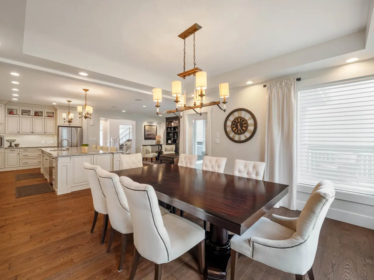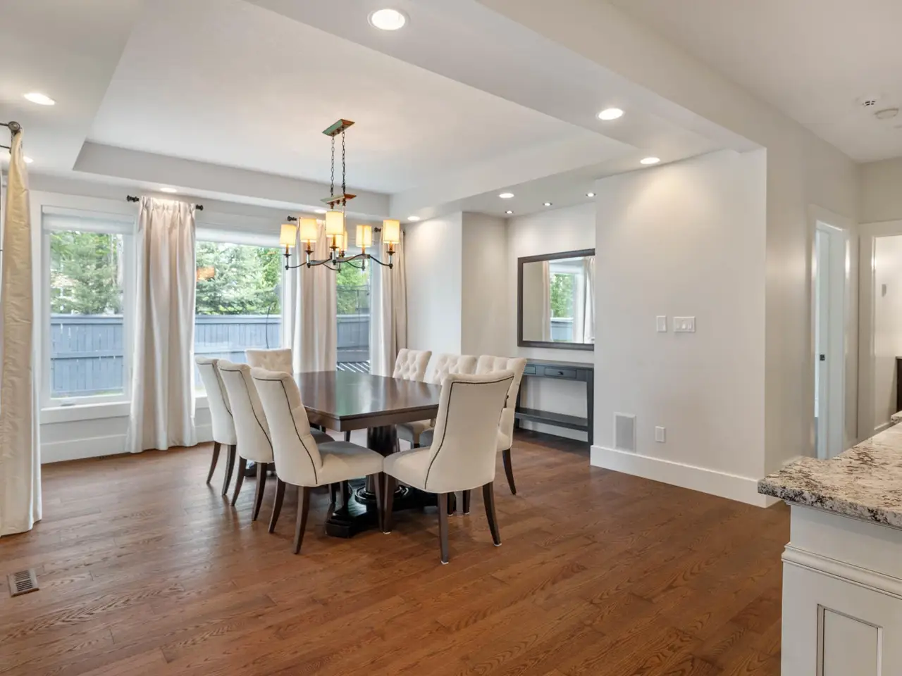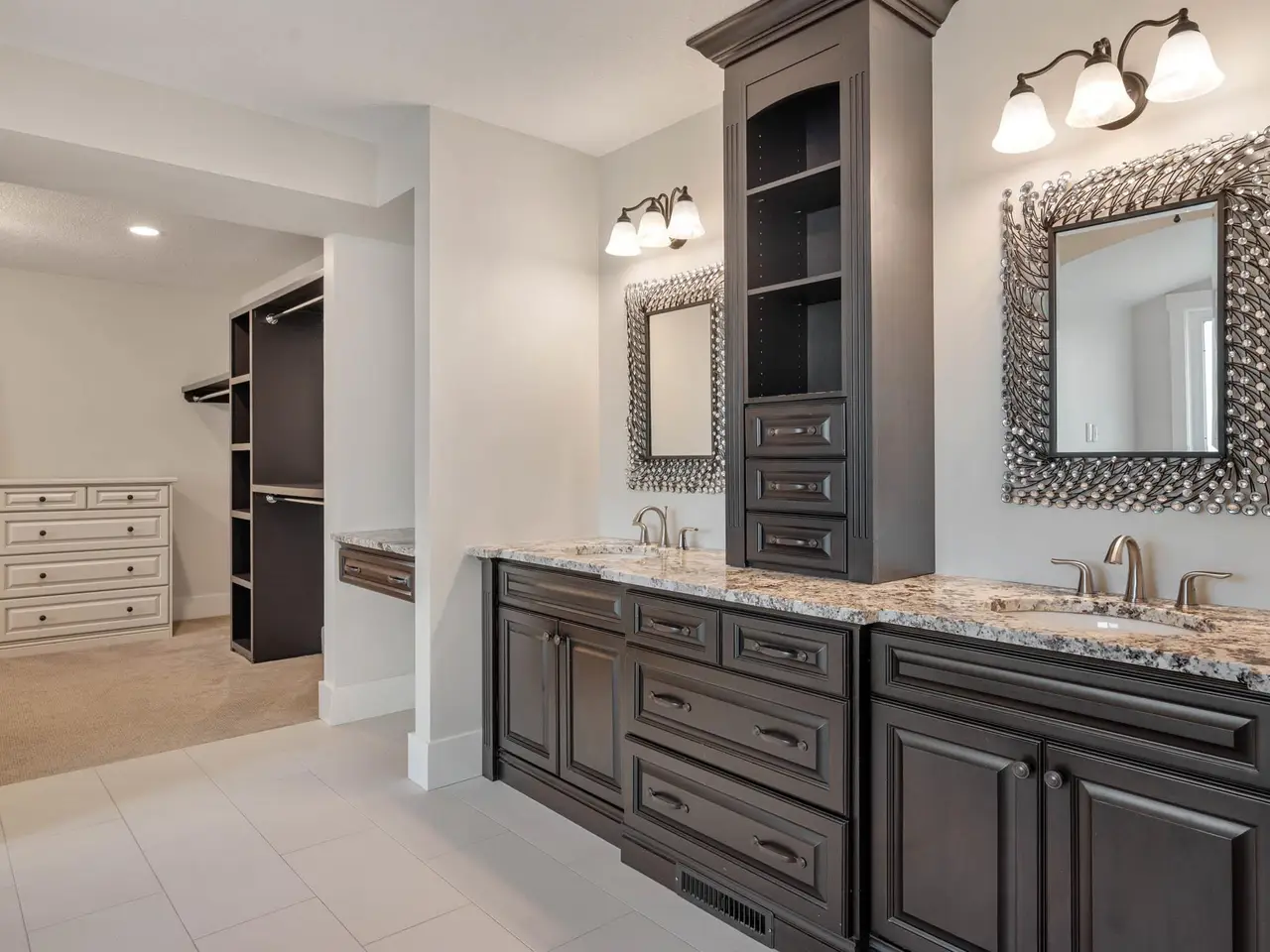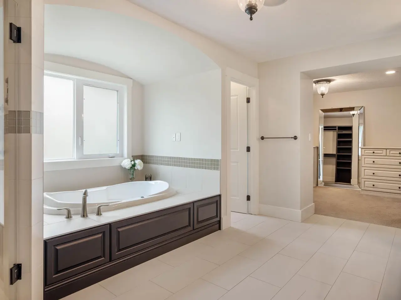 Steps from the serene MacTaggart Ravine, this elegant SW Edmonton home offers nearly 5000 sqft of beautifully designed living space. With 6 spacious bedrooms and 4 full baths, it’s ideal for multi-generational living. A main floor bedroom with adjacent full bath provides flexibility, while a private basement entrance from the garage suits extended family. The fully finished basement features a wet bar and a large rec room—perfect for entertaining. Enjoy the expansive dining area with views of the backyard and covered deck. The bright, open layout has a main floor with chefs kitchen, loads of cabinet space, large pantry and a mud room with built in mill work. Upstairs includes a luxurious primary suite with a massive custom walk-in closet and spa-like 5-piece ensuite. 2 furnaces/AC and infloor heat. Second-floor laundry adds everyday ease. Located in a prestigious, family-friendly community near top-rated schools, shops, and restaurants—this is refined living at its finest.