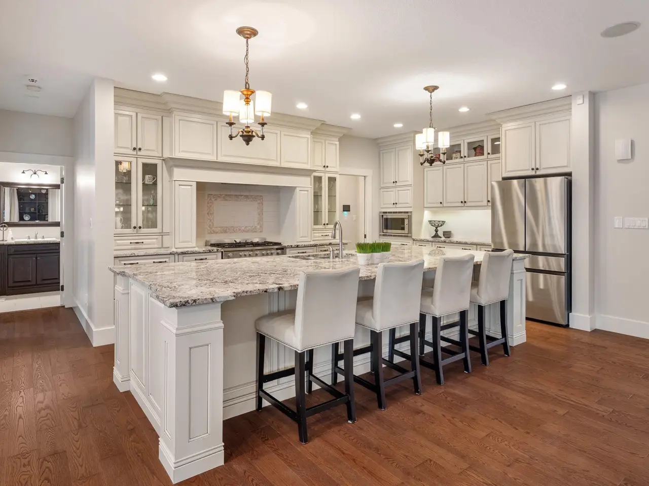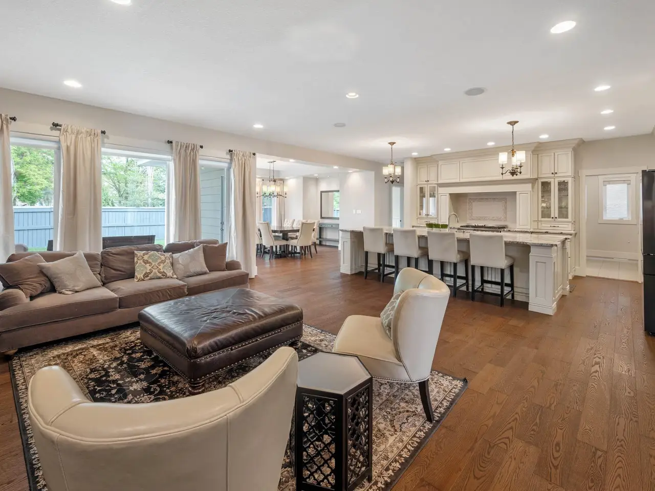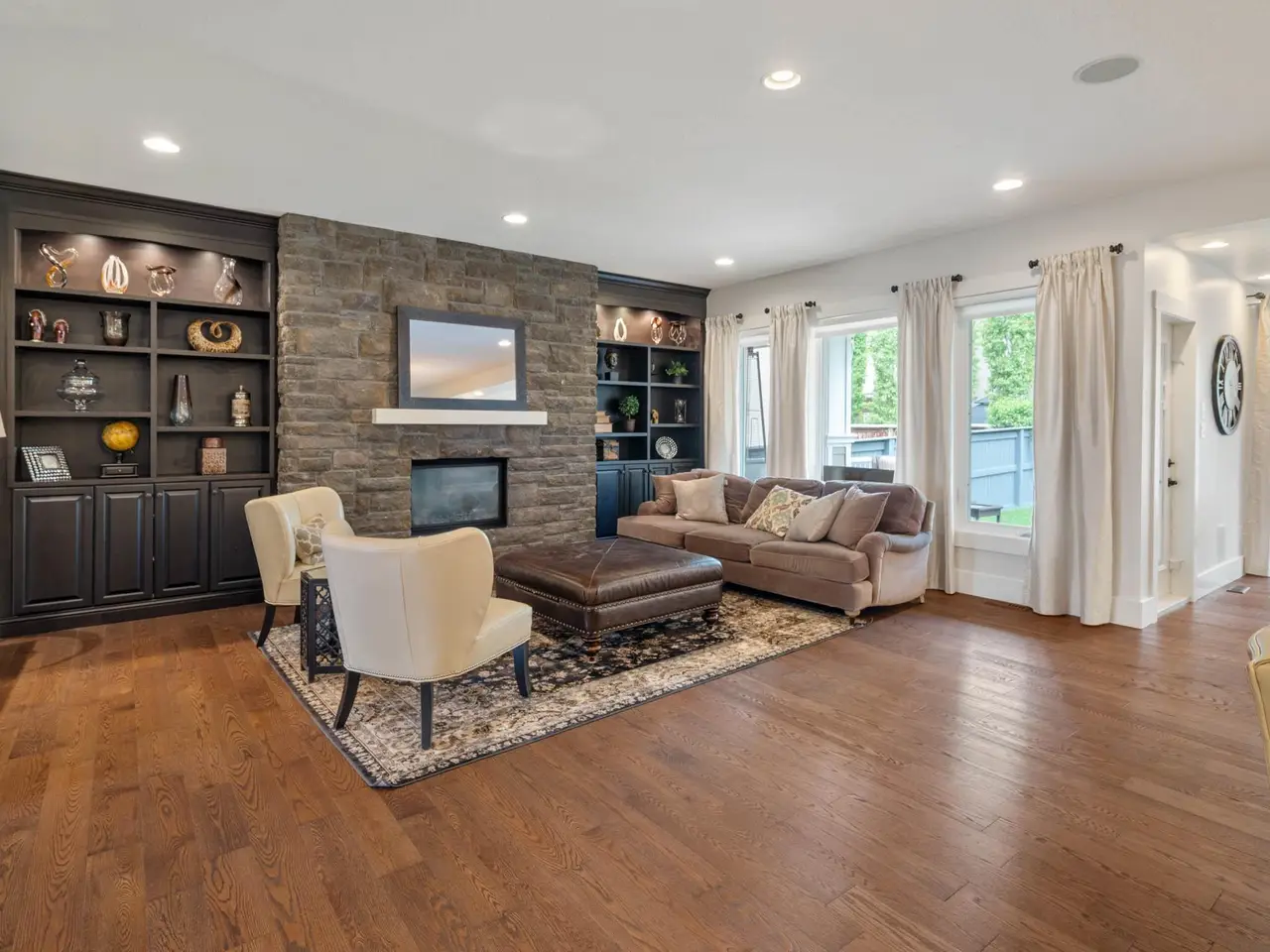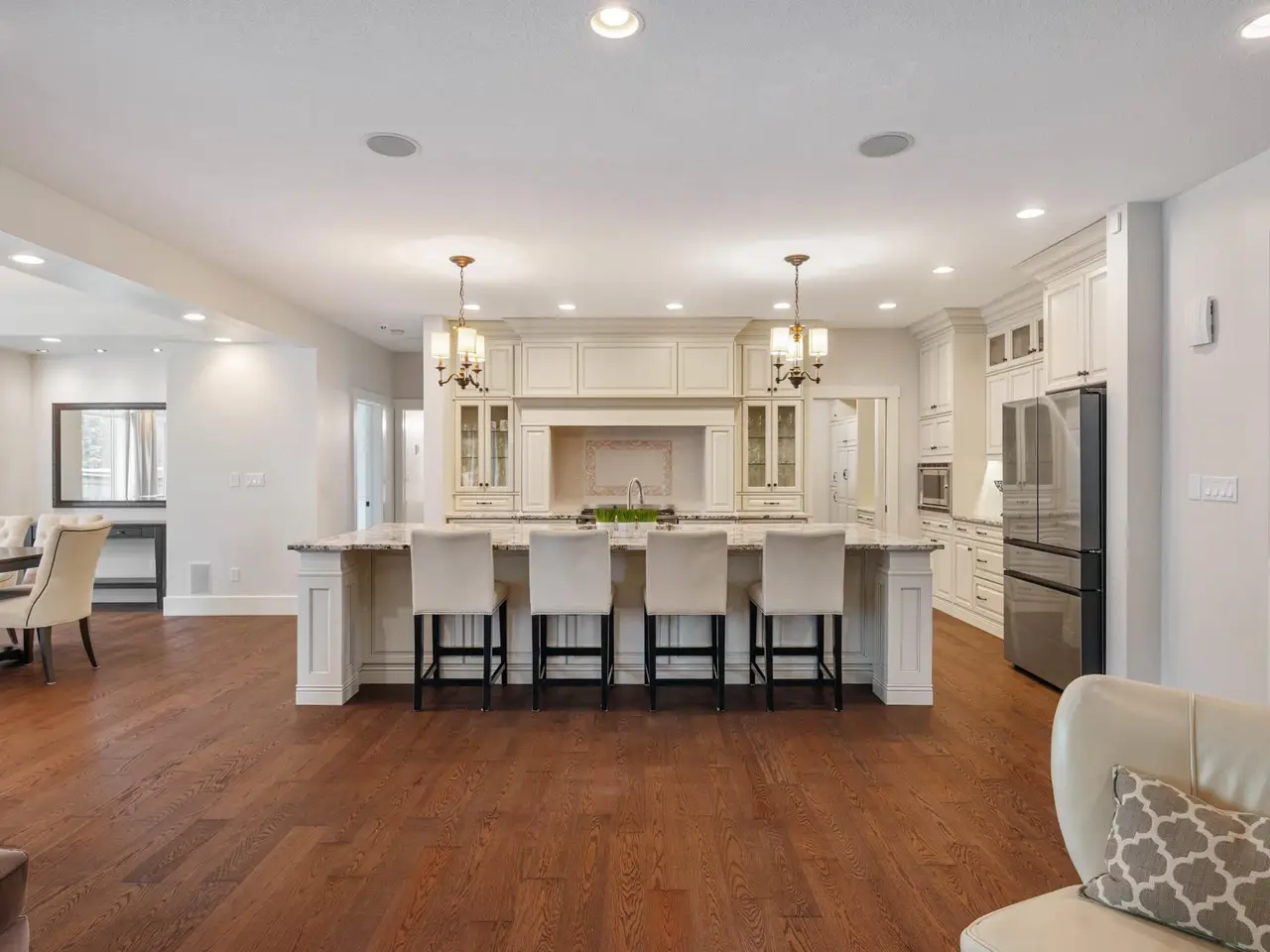 Steps from the serene MacTaggart Ravine, this elegant SW Edmonton home offers nearly 5000 sqft of beautifully designed living space. With 6 spacious bedrooms and 4 full baths, it’s ideal for multi-generational living. A main floor bedroom with adjacent full bath provides flexibility, while a private basement entrance from the garage suits extended family. The fully finished basement features a wet bar and a large rec room—perfect for entertaining. Enjoy the expansive dining area with views of the backyard and covered deck. The bright, open layout has a main floor with chefs kitchen, loads of cabinet space, large pantry and a mud room with built in mill work. Upstairs includes a luxurious primary suite with a massive custom walk-in closet and spa-like 5-piece ensuite. 2 furnaces/AC and infloor heat. Second-floor laundry adds everyday ease. Located in a prestigious, family-friendly community near top-rated schools, shops, and restaurants—this is refined living at its finest.