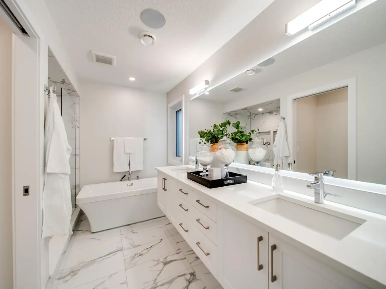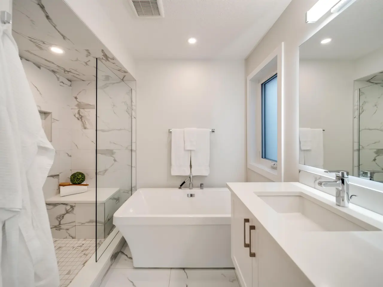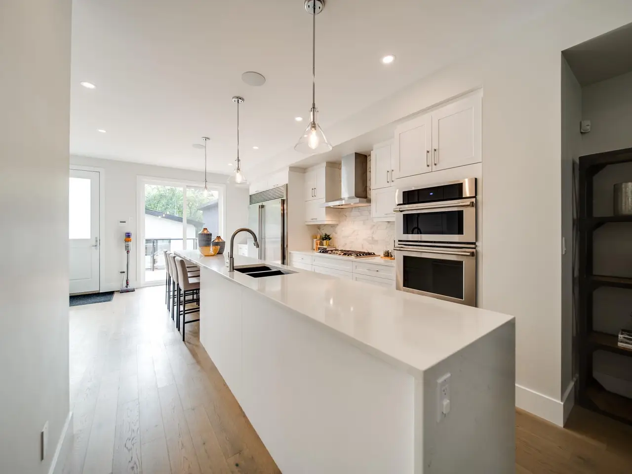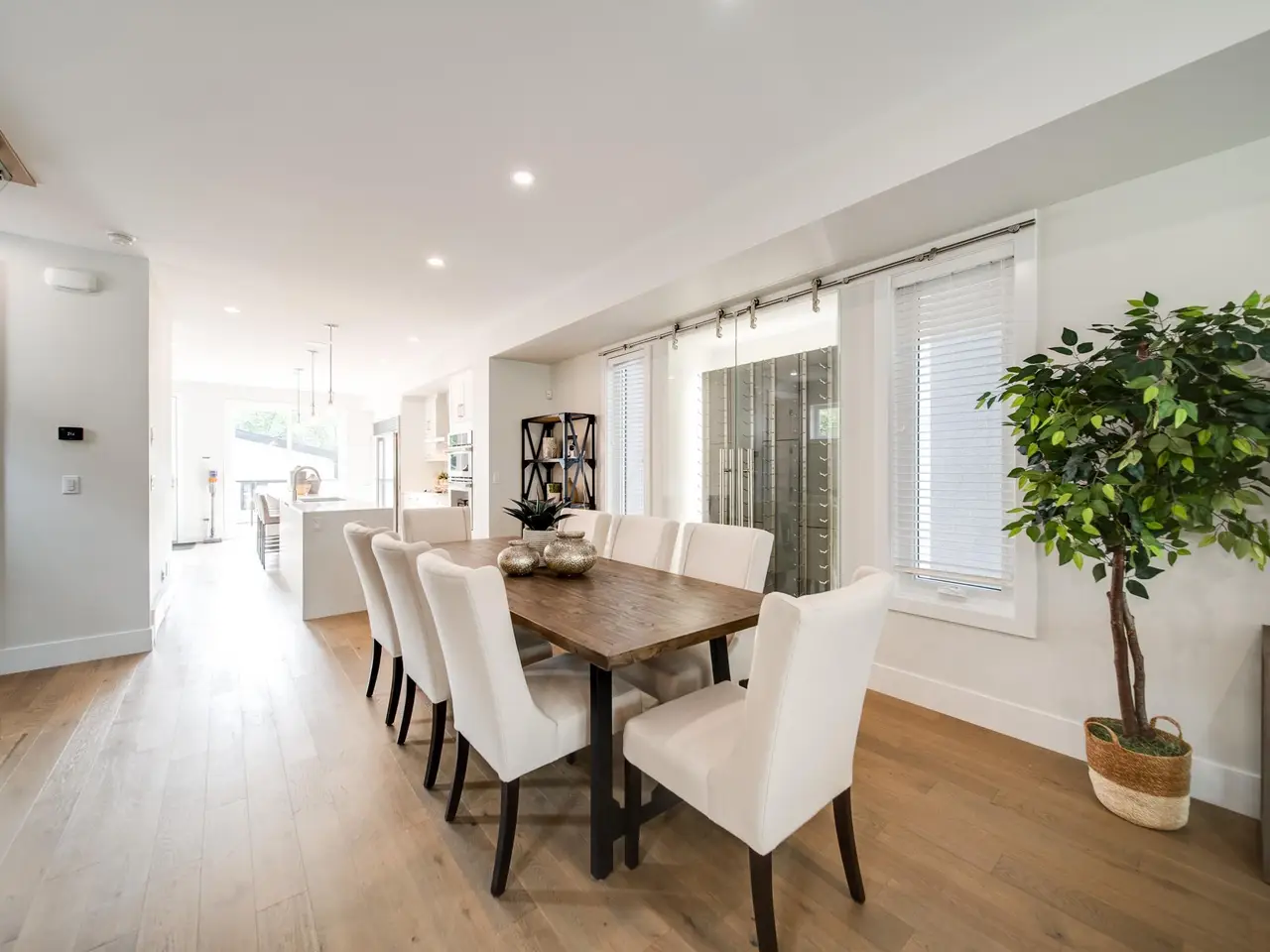 This 2,305 sq. ft. 2.5-storey stunner sits in Edmonton’s most coveted neighbourhood—GLENORA & features a total of 4 beds, 4 full baths & 2 half baths. Designed for modern living, it blends minimalism, comfort, & elegance with striking glass details throughout. The main floor showcases an open layout anchored by a 13-ft quartz island, complemented by a premium stainless steel appliance package. A floor-to-ceiling glass wine wall highlights the dining area, while an open-riser staircase encased in glass adds architectural flair. Upstairs, the primary retreat impresses with sliding glass barn doors leading to a spa-inspired ensuite with freestanding tub & custom shower. Two additional bedrooms, each with ensuites, plus handy same-level laundry complete this floor. The third level offers an urban lounge with seamless access to an indoor/outdoor rooftop patio boasting skyline views. Fully finished basement has rec area & 4th bed/bath. Built in sound + minutes from the River Valley, Ice District, and downtown.