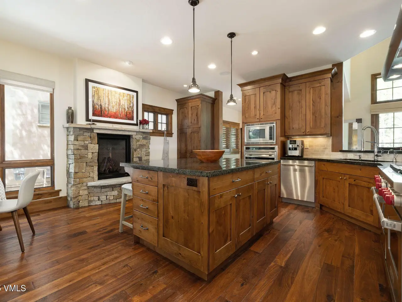 Great opportunity to own a stunning home in the intimate Mountain Retreat enclave in the exclusive gated community of Arrowhead Village. This single-family home is conveniently located just steps away from the Arrowhead Bahn Ski Lift, Country Club of the Rockies and the well-touted Vista Restaurant. The property has been beautifully updated with stylish furniture and furnishings throughout. The main level boasts high vaulted ceilings with grand wood beams, elegant hardwood floors and a dry stack limestone gas fireplace. It also features a private office, large chef's kitchen with an island, breakfast nook with additional gas fireplace and bar seating. The open dining room provides access to the front deck, which is perfect for entertaining with its built-in gas fireplace and private hot tub. The upper level includes a library room with a daybed and three well-appointed, attractive bedrooms, all with cathedral ceilings, each with ensuite bathrooms. The primary bedroom is a luxurious retreat featuring a large steam shower, soaking tub, walk-in closet, and a Juliet balcony. The lower level is comfortable and cozy featuring a spacious family room with a gas fireplace, pool table, full bar with a climate-controlled wine closet and movie theater room. Additionally, this level includes three guest bedrooms with ensuite bathrooms and a laundry room. Perfect summer retreat with air conditioning; 2-car garage. Residence is being sold thoughtfully fully furnished.