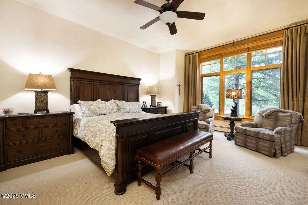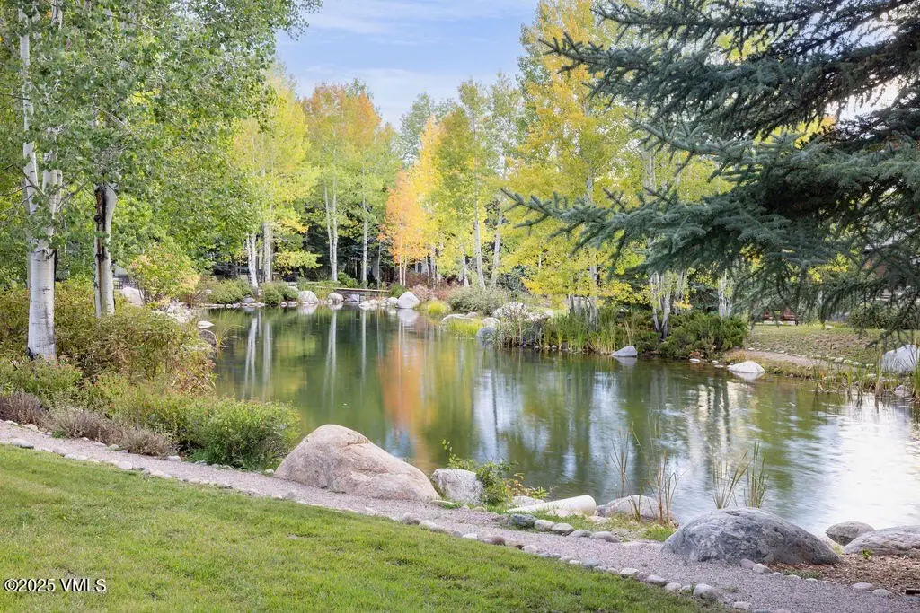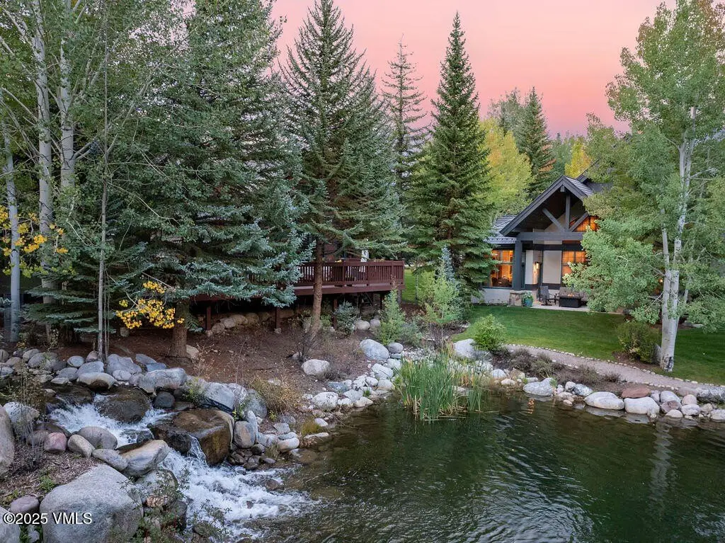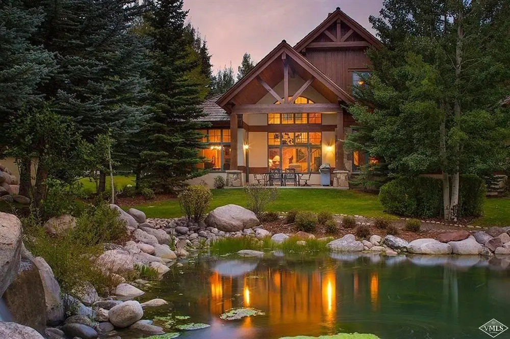 Discover this charming home nestled by a picturesque pond, offering stunning views of a tranquil waterfall. Relax and unwind in the private, peaceful backyard from the spacious patio, perfect for outdoor entertaining. The residence features a main-level master suite and four additional ensuite bedrooms, providing ample space for family and guests. The large recreational room downstairs, complete with a billiards table, is ideal for fun and gatherings. Experience serene living in this beautiful, nature-inspired setting. A free front door pickup shuttle ride away from Arrowhead's ski lift, hiking and mountain biking trails, private fishing, an outdoor pool and hot tub, and down the street from The Country Club of the Rockies, you'll find endless ways to enjoy the outdoors right at your doorstep. Tennis and pickleball enthusiasts will also appreciate the availability of courts for their enjoyment. This home offers a truly desirable and sought-after lifestyle in the mountains.