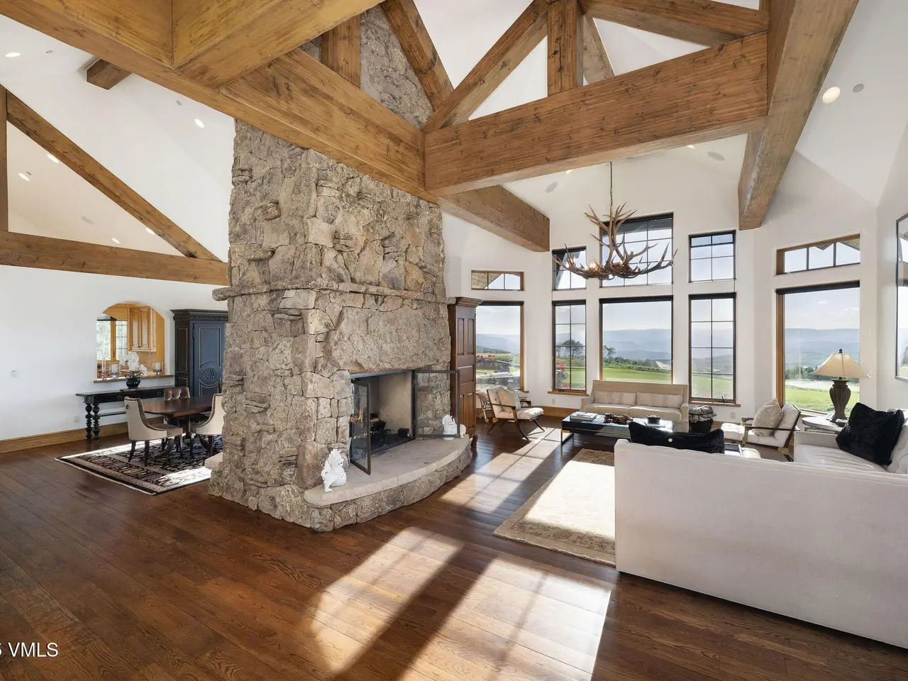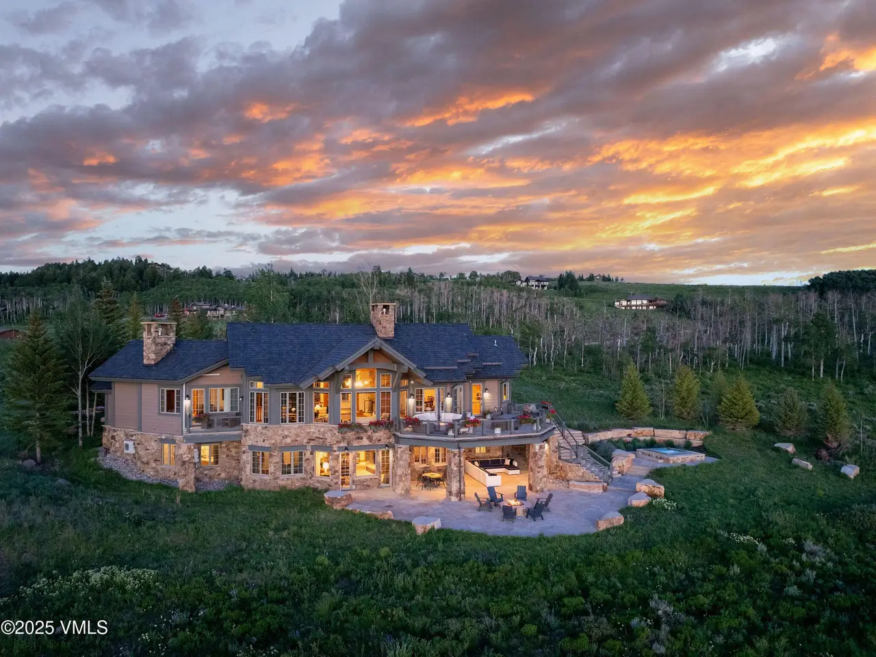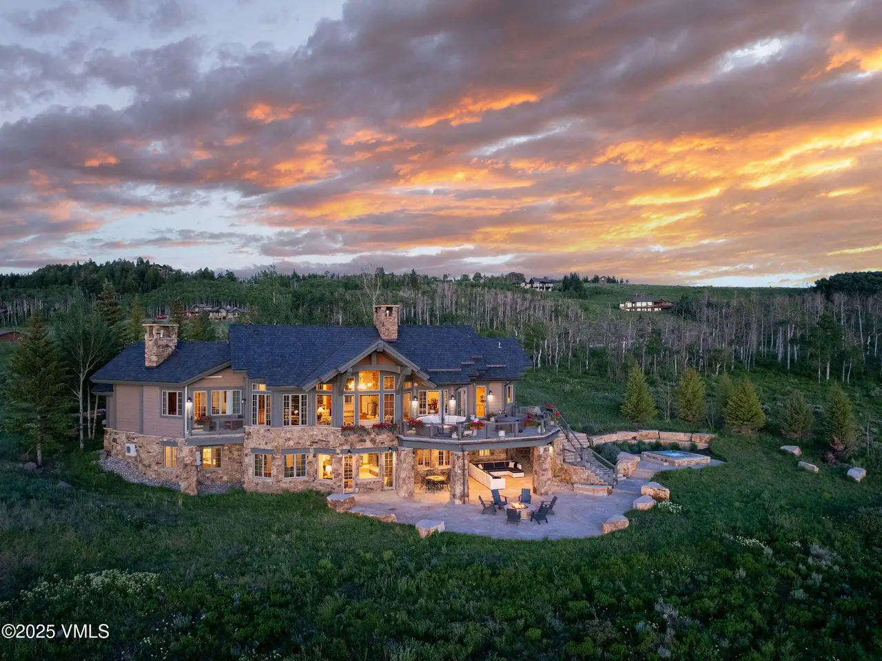 Enjoy breathtaking views from the expansive deck and patio of this perfectly situated home in the Cordillera Summit, located on the highest point of the Jack Nicklaus Golf Course. Because this home is being offered to also include the homesite next door, this beautiful 6100 sq ft home is now located on 5+ acres abutting a wildlife migration corridor and providing incredible privacy. This 4 bedroom / 6 bath home plus office is the perfect setting for creating memories in the Vail Valley. The recently renovated outdoor space includes an upper deck with a spacious eating area and sitting area complete with a fire table. The lower deck is accessible via outdoor stairs or doors on the walk-out lower level, and is complete with a firepit and built in hot tub to take in the beautiful sunsets. The thoughtful floorplan of this home is accented by architectural elements such as vaulted ceilings, exposed hand-hewn wooden beams and dual sided fireplace. The primary bedroom, located on the main floor, includes a fireplace, large master bathroom, air conditioning, and oxygen system. A main floor office/den is located adjacent to the primary bedroom and offers guest overflow in a pinch. A large guest suite is located above the 3 car garage as well as two additional suites in the lower level of the home, that also includes a secondary family room. Take advantage of Cordillera's many amenities including the Summit Athletic Club, Trailhead pool, hiking trails, private Eagle River fishing, horseback riding and Dave Pelz Short Course, or join The Club at Cordillera for private access to 3 world class 18 hole golf courses. Start making your memories in the Vail Valley today.