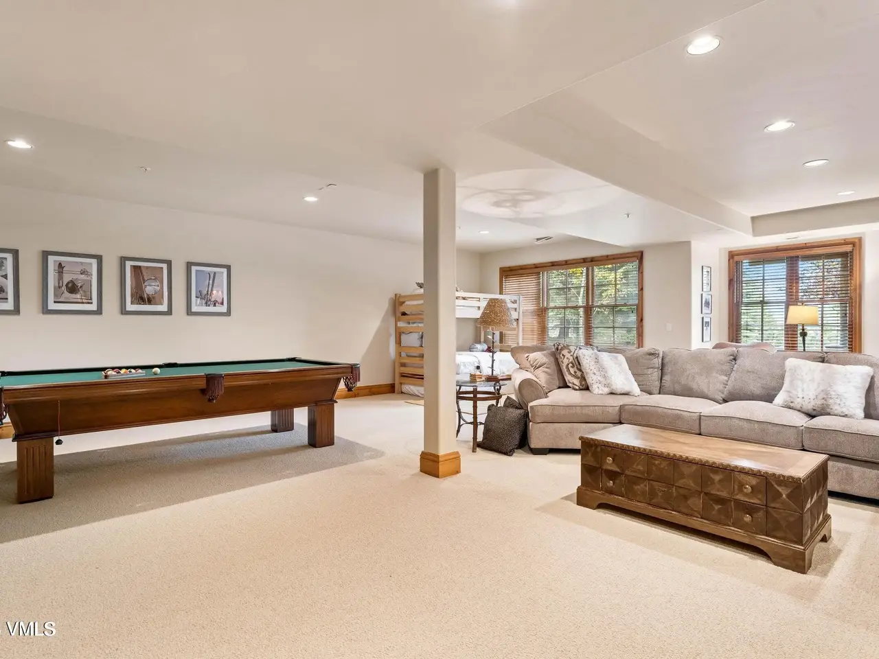 Large recreation room with wet bar
