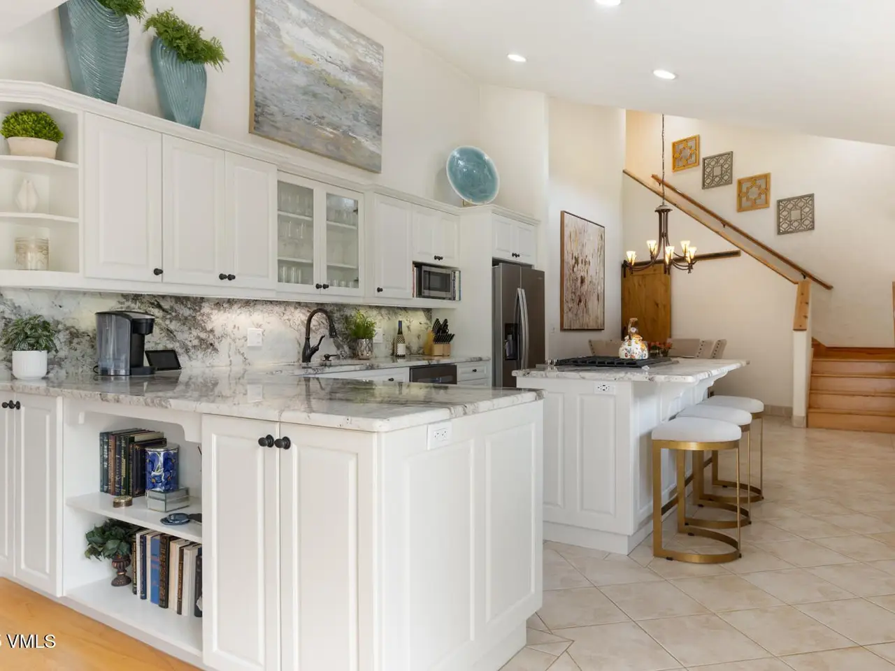 This turnkey Singletree home radiates warmth and natural light, surrounded by trees and nestled in nature. Ideally located just minutes from the shops and restaurants of Edwards, this spacious 3-bedroom plus den (perfect for a home office) offers both comfort and convenience. Enjoy mountain views stretching into Arrowhead from the sun-filled, south-facing living room, kitchen, primary bedroom, and balcony. The open floor plan features vaulted ceilings and a thoughtfully updated kitchen with new countertops, appliances, and cabinetry. Recent upgrades include an expanded deck and the addition of air conditioning-perfect for year-round living. Radiant floor heating and smart design details add everyday comfort, making this home truly move-in ready. With nearby membership access to the Sonnenalp Golf Club, Harvest Restaurant, fitness, tennis and pickle ball, hiking and biking trails. The neighborhood offers an active mountain lifestyle as vibrant as the home itself.