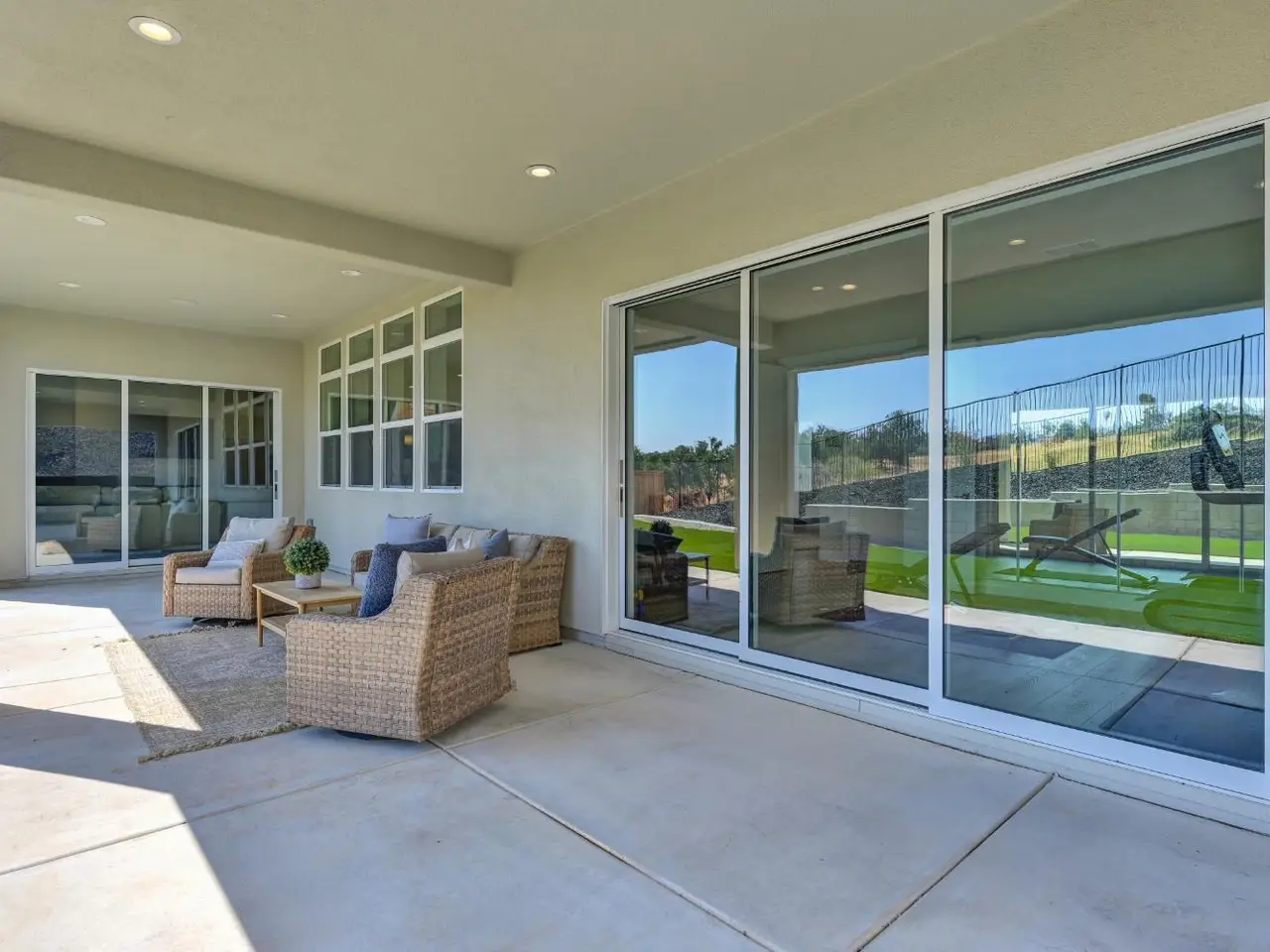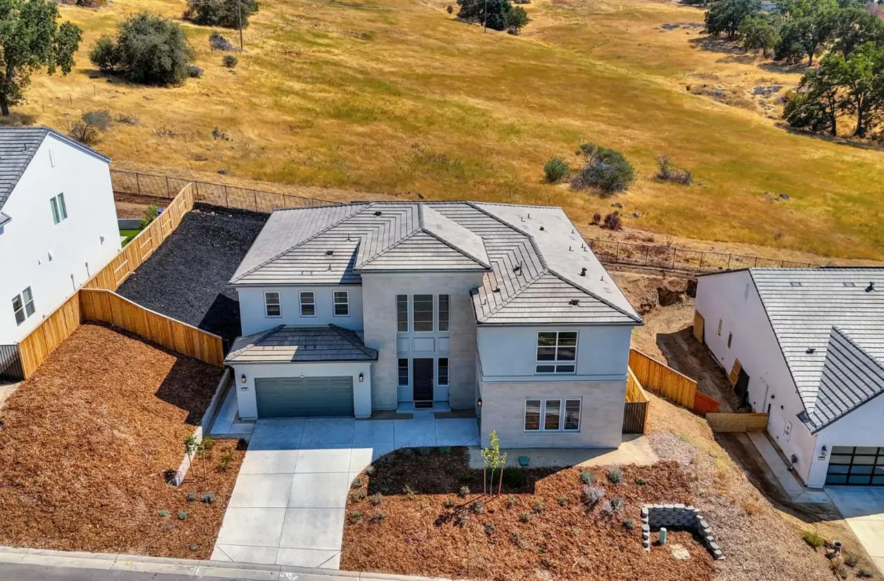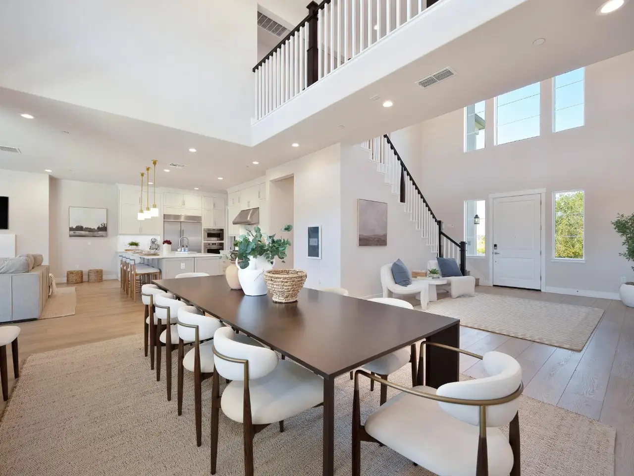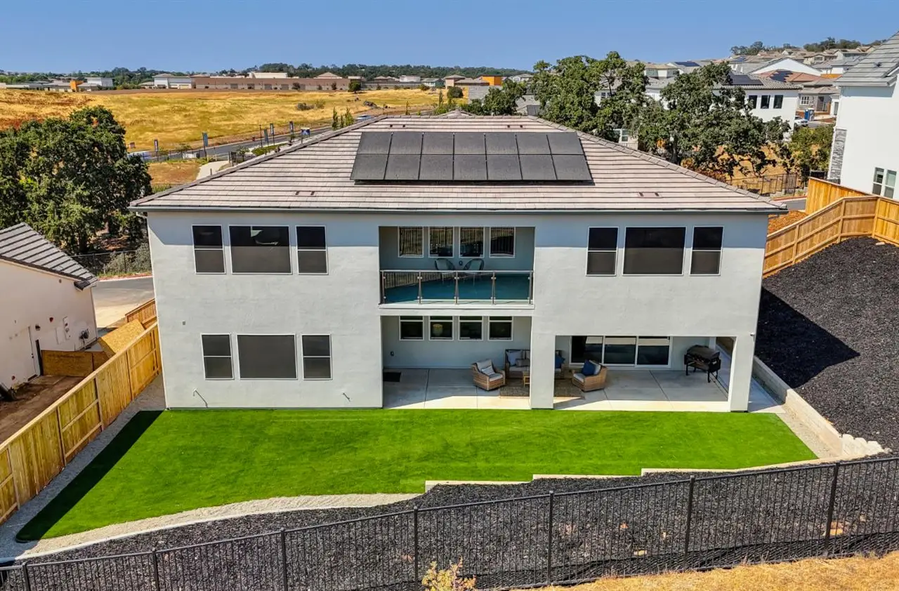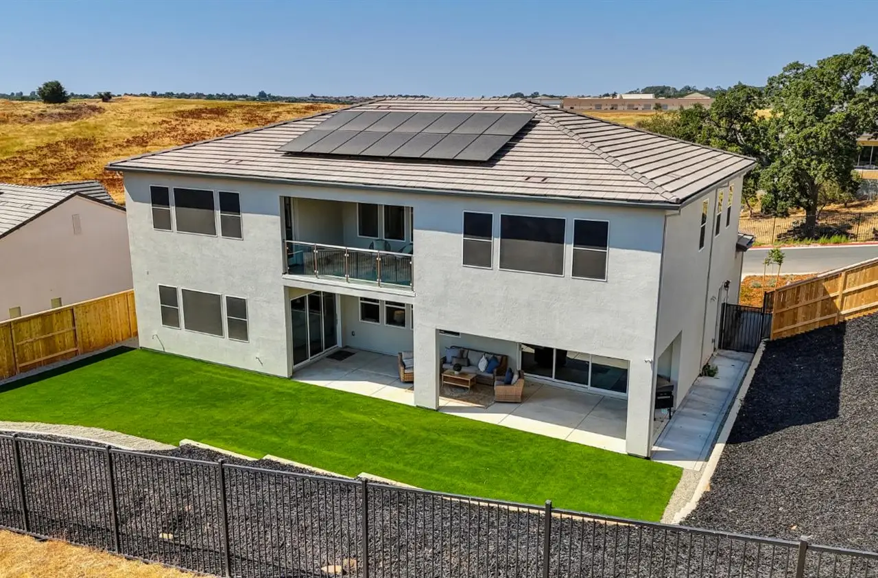 Beautifully designed, Toll Brothers' home, purchased in March is welcoming with soaring ceilings and an abundance of natural light. Chef-inspired kitchen features modern appliances, spacious island, generous counter space, and a walk-in pantry perfect for everyday living and entertaining. Adjacent to the kitchen, the casual dining area is ideal for family meals, while the formal dining room offers an elegant setting for hosting and holiday celebrations. The expansive Great Room invites relaxation, with large windows that open to the California Room, creating a seamless indoor-outdoor living experience. A downstairs bedroom with an ensuite bath offers privacy and comfort for overnight guests or multigenerational living. The three-car garage provides ample parking and storage options and OWNED 15KW solar system. Retreat upstairs to the luxurious primary suite, complete with dual vanities, a soaking tub, a separate oversized shower, and a spacious walk-in closet and covered deck perfect for a cozy morning or romantic evenings. Two additional bedrooms each enjoy their own private baths, while a versatile loft offers flexible space for a home office, media room, or play area. Additional highlights include an expansive upstairs laundry room.