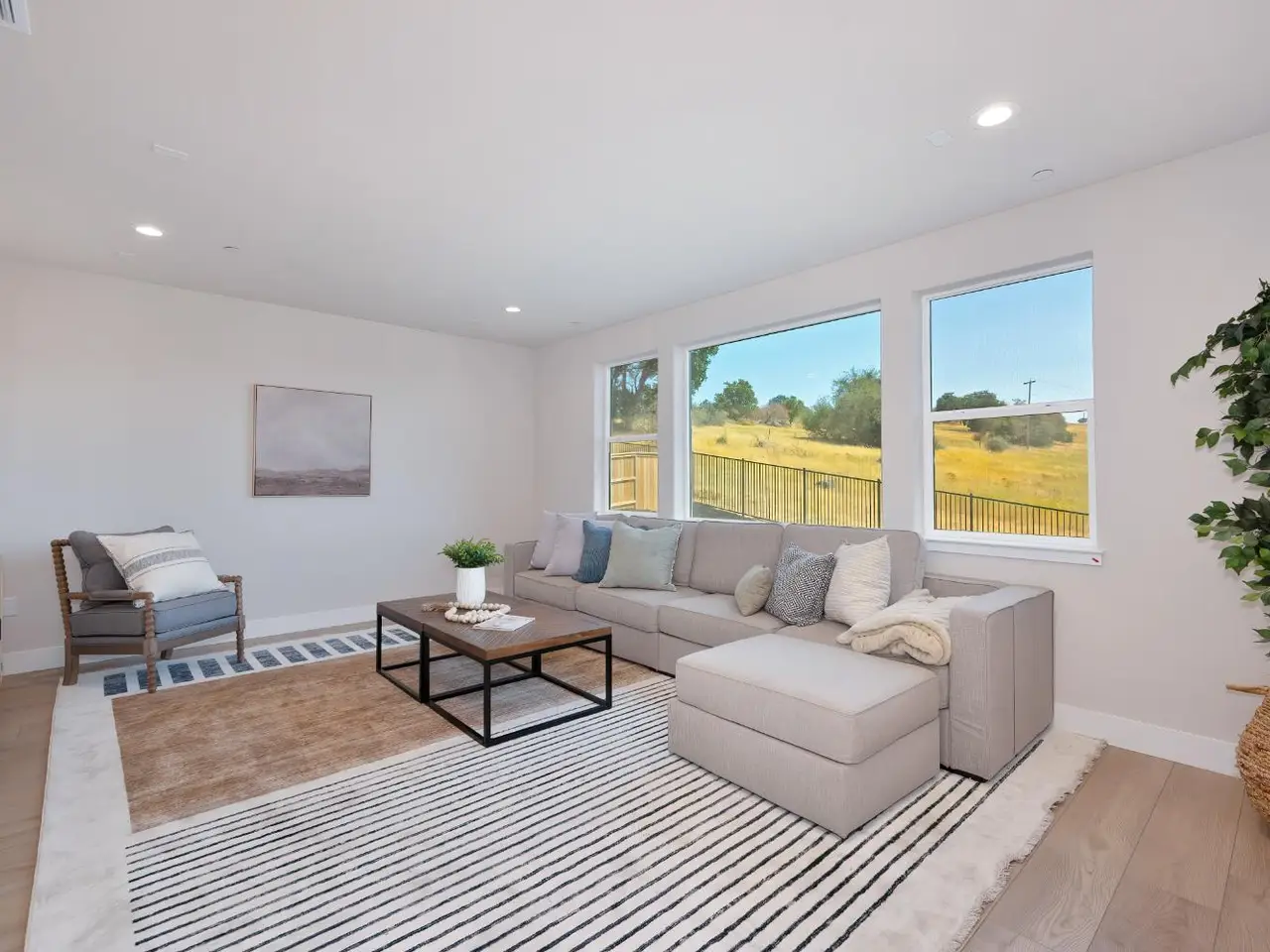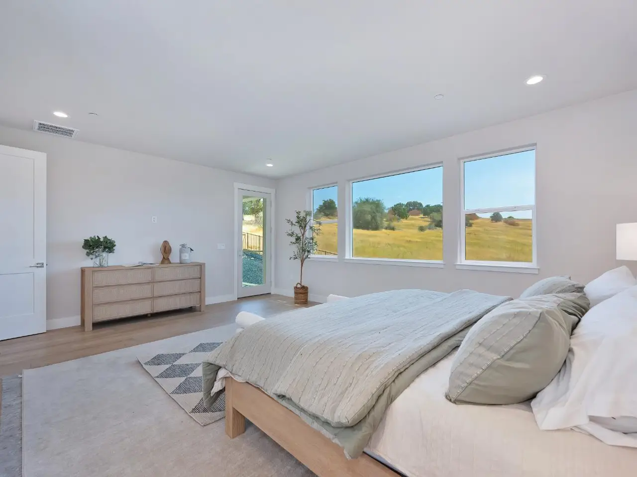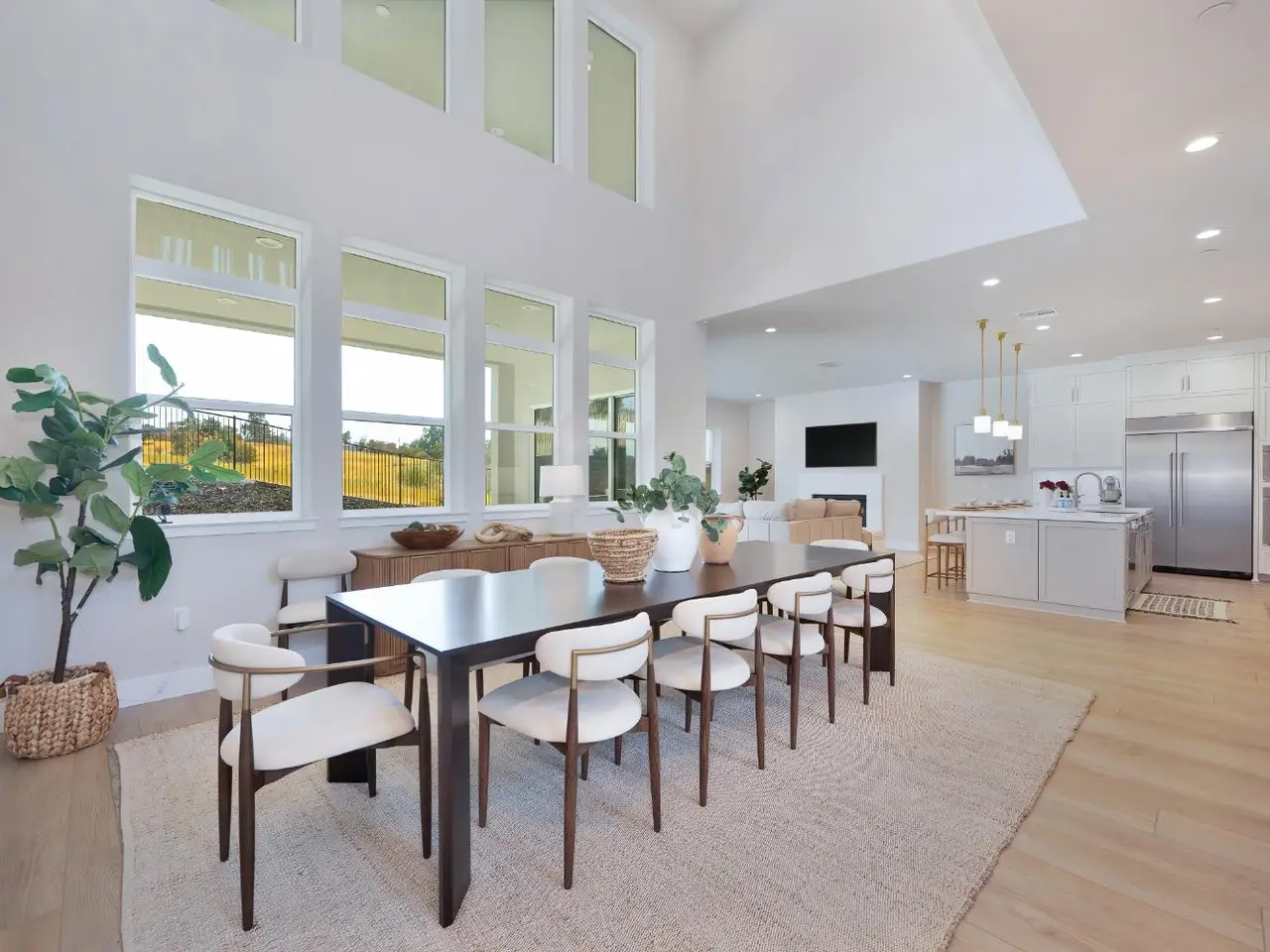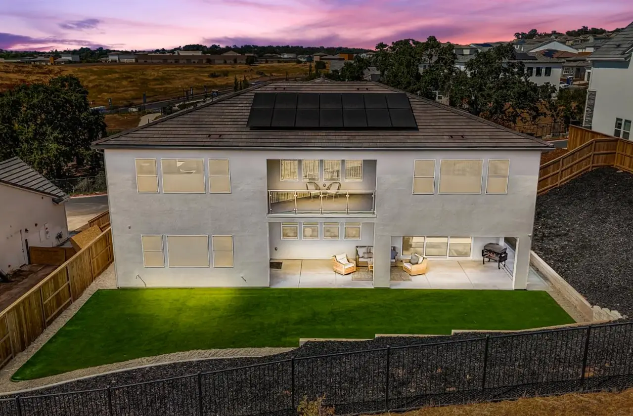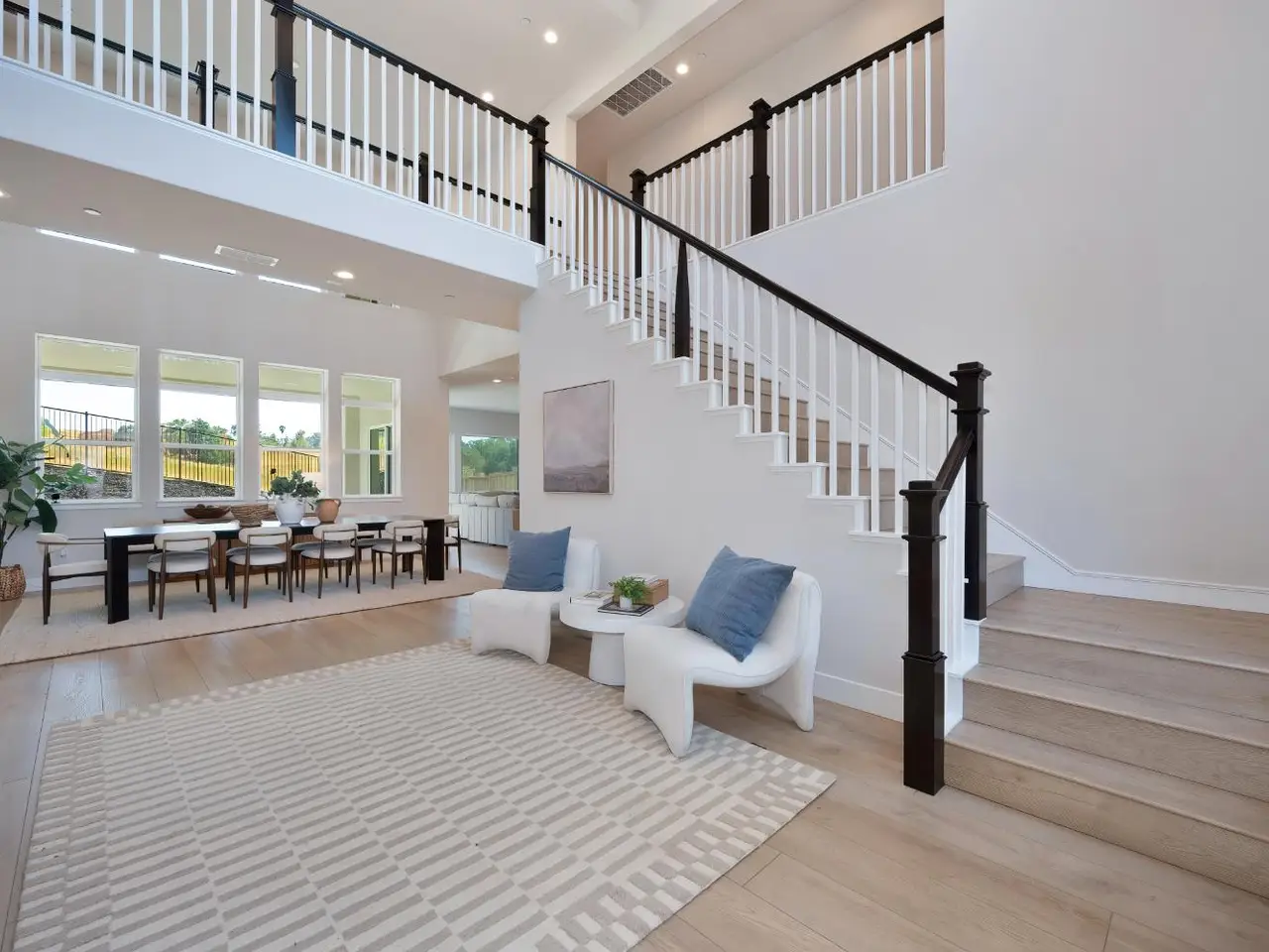 Beautifully designed, Toll Brothers' home, purchased in March is welcoming with soaring ceilings and an abundance of natural light. Chef-inspired kitchen features modern appliances, spacious island, generous counter space, and a walk-in pantry perfect for everyday living and entertaining. Adjacent to the kitchen, the casual dining area is ideal for family meals, while the formal dining room offers an elegant setting for hosting and holiday celebrations. The expansive Great Room invites relaxation, with large windows that open to the California Room, creating a seamless indoor-outdoor living experience. A downstairs bedroom with an ensuite bath offers privacy and comfort for overnight guests or multigenerational living. The three-car garage provides ample parking and storage options and OWNED 15KW solar system. Retreat upstairs to the luxurious primary suite, complete with dual vanities, a soaking tub, a separate oversized shower, and a spacious walk-in closet and covered deck perfect for a cozy morning or romantic evenings. Two additional bedrooms each enjoy their own private baths, while a versatile loft offers flexible space for a home office, media room, or play area. Additional highlights include an expansive upstairs laundry room.