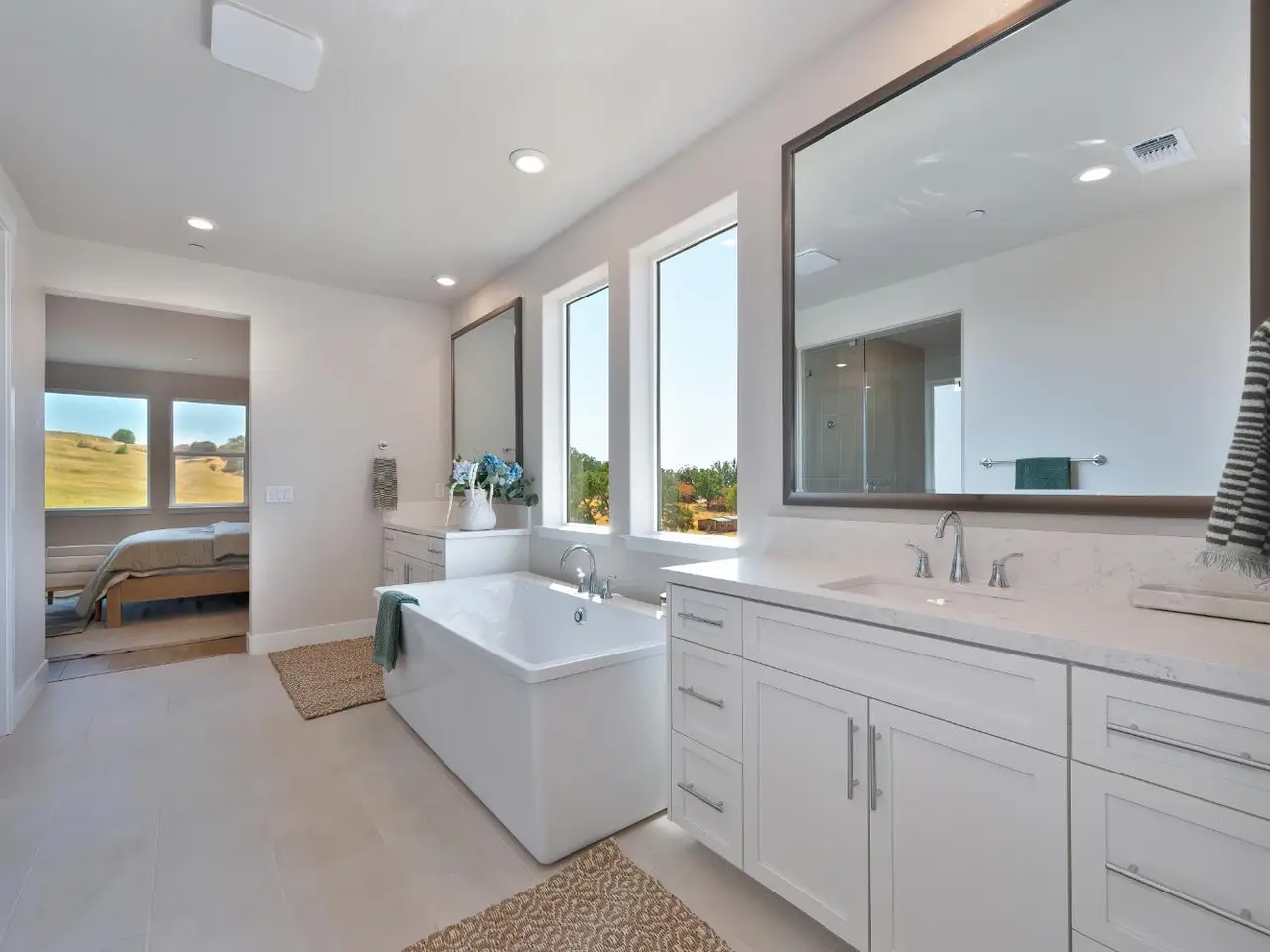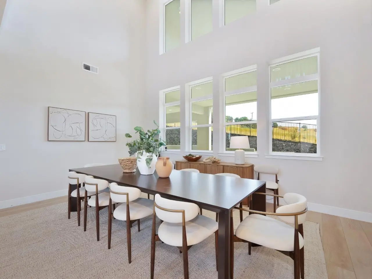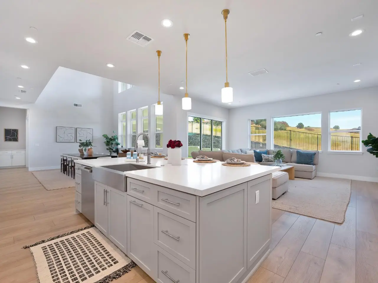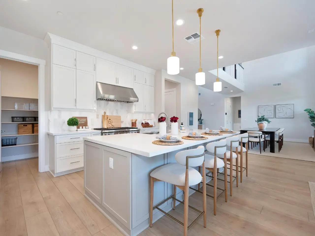 Beautifully designed, Toll Brothers' home, purchased in March is welcoming with soaring ceilings and an abundance of natural light. Chef-inspired kitchen features modern appliances, spacious island, generous counter space, and a walk-in pantry perfect for everyday living and entertaining. Adjacent to the kitchen, the casual dining area is ideal for family meals, while the formal dining room offers an elegant setting for hosting and holiday celebrations. The expansive Great Room invites relaxation, with large windows that open to the California Room, creating a seamless indoor-outdoor living experience. A downstairs bedroom with an ensuite bath offers privacy and comfort for overnight guests or multigenerational living. The three-car garage provides ample parking and storage options and OWNED 15KW solar system. Retreat upstairs to the luxurious primary suite, complete with dual vanities, a soaking tub, a separate oversized shower, and a spacious walk-in closet and covered deck perfect for a cozy morning or romantic evenings. Two additional bedrooms each enjoy their own private baths, while a versatile loft offers flexible space for a home office, media room, or play area. Additional highlights include an expansive upstairs laundry room.