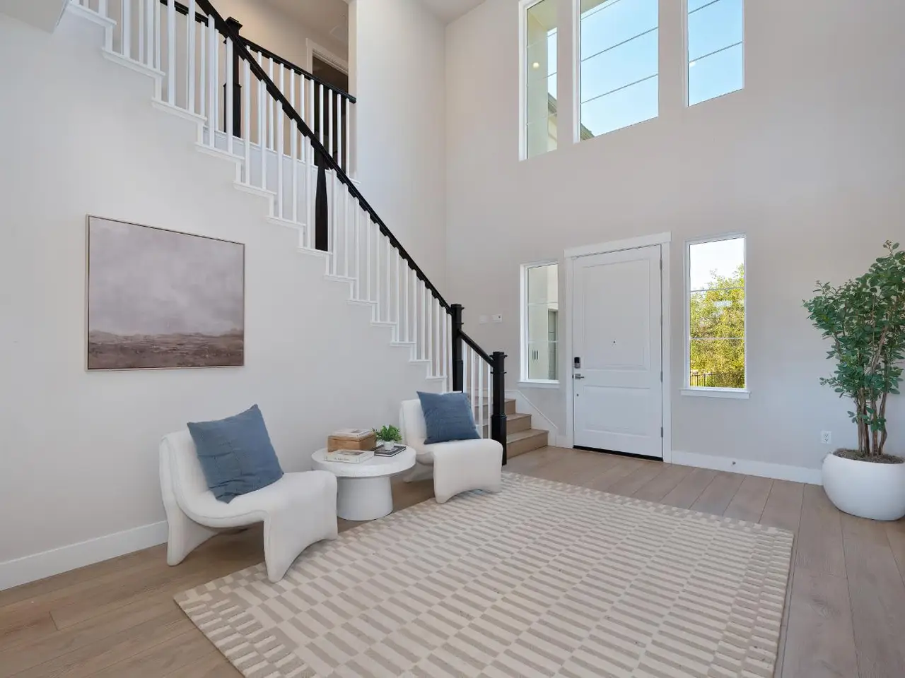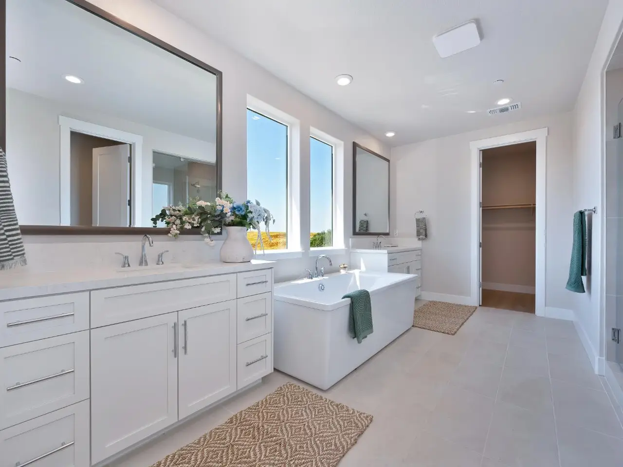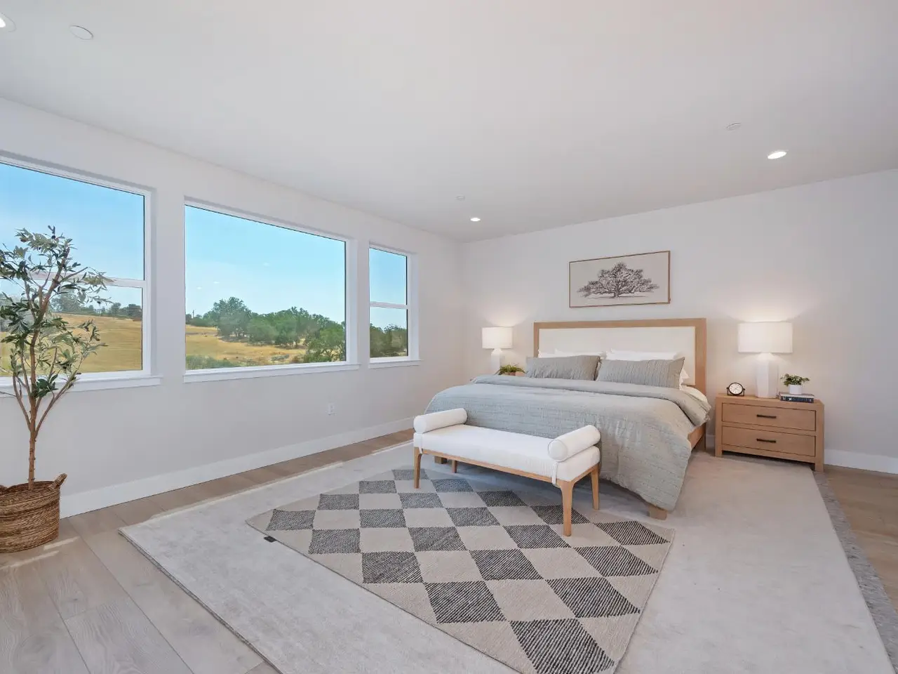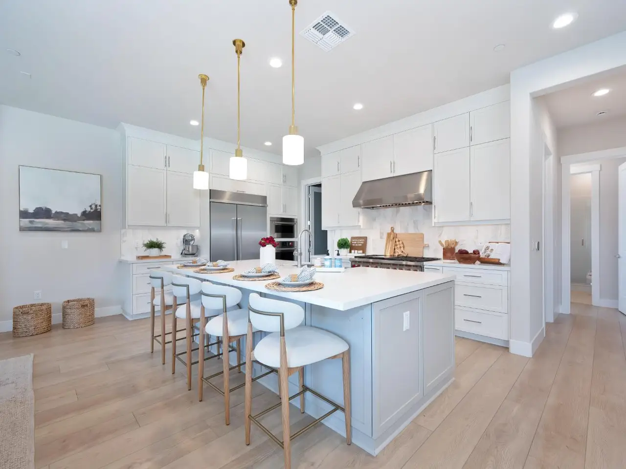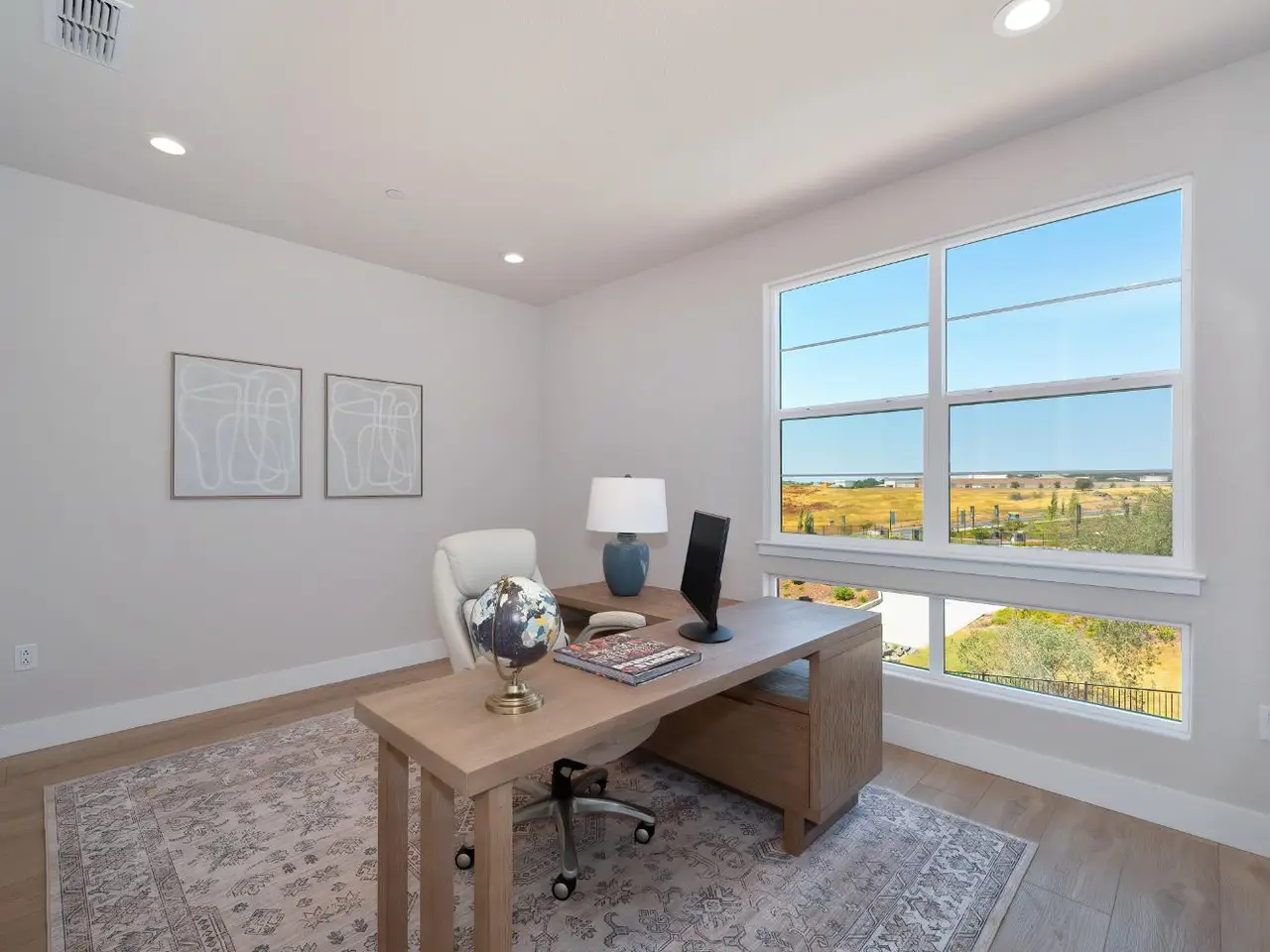 Beautifully designed, Toll Brothers' home, purchased in March is welcoming with soaring ceilings and an abundance of natural light. Chef-inspired kitchen features modern appliances, spacious island, generous counter space, and a walk-in pantry perfect for everyday living and entertaining. Adjacent to the kitchen, the casual dining area is ideal for family meals, while the formal dining room offers an elegant setting for hosting and holiday celebrations. The expansive Great Room invites relaxation, with large windows that open to the California Room, creating a seamless indoor-outdoor living experience. A downstairs bedroom with an ensuite bath offers privacy and comfort for overnight guests or multigenerational living. The three-car garage provides ample parking and storage options and OWNED 15KW solar system. Retreat upstairs to the luxurious primary suite, complete with dual vanities, a soaking tub, a separate oversized shower, and a spacious walk-in closet and covered deck perfect for a cozy morning or romantic evenings. Two additional bedrooms each enjoy their own private baths, while a versatile loft offers flexible space for a home office, media room, or play area. Additional highlights include an expansive upstairs laundry room.