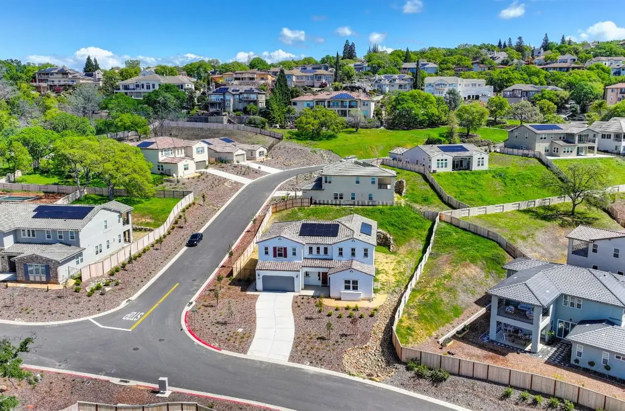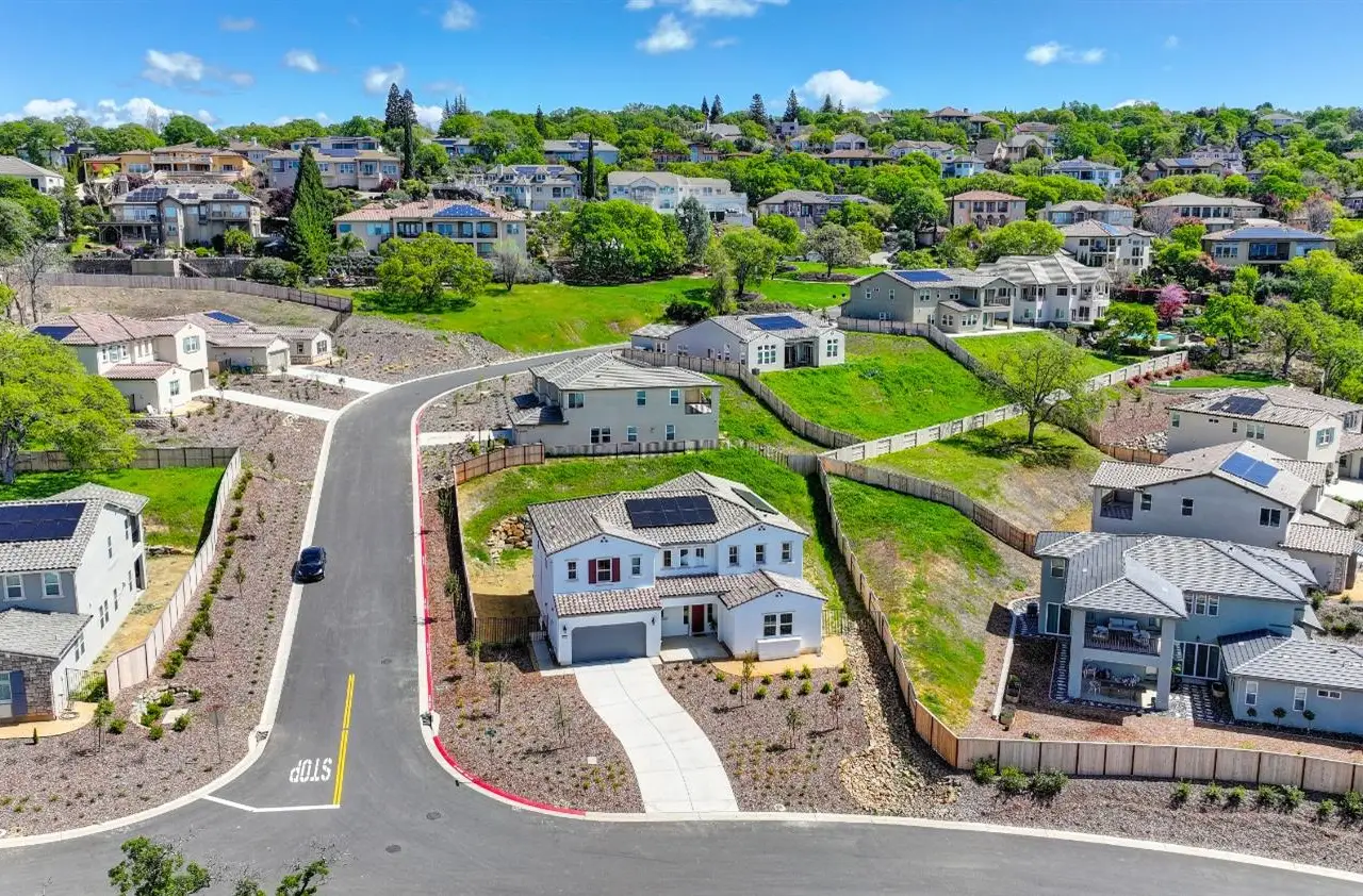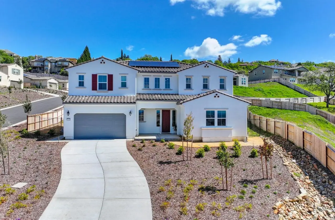 Nestled in the highly sought-after Ridgeview Village of El Dorado Hills, this brand-new, meticulously crafted home offers 3,984 square feet of elegant living space. Featuring 4 spacious bedrooms and 4.5 beautifully appointed bathrooms, this residence effortlessly blends comfort with modern sophistication. The upstairs Great Room provides an ideal secondary space for entertaining, with panoramic views that create the perfect backdrop for family gatherings and special events. The gourmet kitchen is a chef's dream, showcasing a large center island, custom white cabinetry, a fully equipped rear prep kitchen, and premium stainless steel Caf appliances. Step outside to the expansive California Room, a peaceful oasis perfect for alfresco dining or simply relaxing in style while enjoying the tranquil views. The private downstairs guest suite offers a quiet, secluded retreat for family or visitors, ensuring comfort and privacy. With abundant natural light flowing throughout, this home strikes a flawless balance of style and functionality. It stands as a true gem in the Ridgeview community, offering an unparalleled lifestyle in a serene setting.