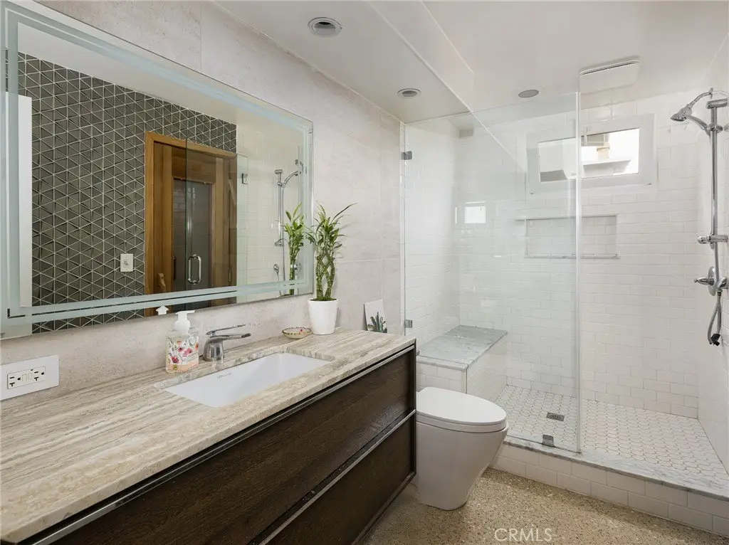 Perched on one of El Segundo’s most elevated and sought-after streets, this fully updated Mediterranean luxury estate sits at the end of a quiet cul-de-sac, offering unobstructed, breathtaking views of the city skyline. With over 4,500 square feet of refined living space, this home was thoughtfully designed for both elegant living and effortless entertaining. Upon entry, you're greeted by a seamless blend of indoor and outdoor living. Both levels feature 16-foot stacking glass multi-slide doors, creating a smooth connection between the sunlit interiors and expansive outdoor terraces. The result is a true entertainer’s dream, where panoramic views and sophisticated finishes set the tone. The first floor offers a media and entertainment space unlike any other, complete with a 97” Samsung TV, embedded Bowers & Wilkins speakers, a handcrafted terrazzo glass bar, sleek fireplace, wet bar, and custom feature wall. Slide open the aforementioned doors to reveal a beautifully remodeled backyard perfect for entertaining. This level also includes a large primary suite with a fully updated bath, a second spa-like bathroom with sauna situated between two spacious bedrooms, and a conveniently located laundry room. Upstairs, the gourmet kitchen—crafted by Euroconcepts of Beverly Hills—features Italian Arclinea custom cabinetry, Sub-Zero refrigeration, Wolf appliances, an espresso bar, floating hood, and sweeping neighborhood and park views. The open-concept layout flows into the stylish living room, anchored by a modern fireplace and opening to an expansive deck—ideal for indoor-outdoor gatherings. The second-floor primary suite is a sanctuary of its own, boasting high-end finishes, a huge walk-in closet, a dedicated laundry area, and an updated bathroom with separate tub and shower. Two additional office spaces and another upgraded full bath complete the upper level. Additional highlights include: central air conditioning throughout, a private elevator, an oversized driveway fitting multiple cars, and two separate garages offering a total of three garage spaces A rare offering with commanding views, cutting-edge design, and exceptional functionality—this estate is a must-see for buyers seeking luxury living in El Segundo.
