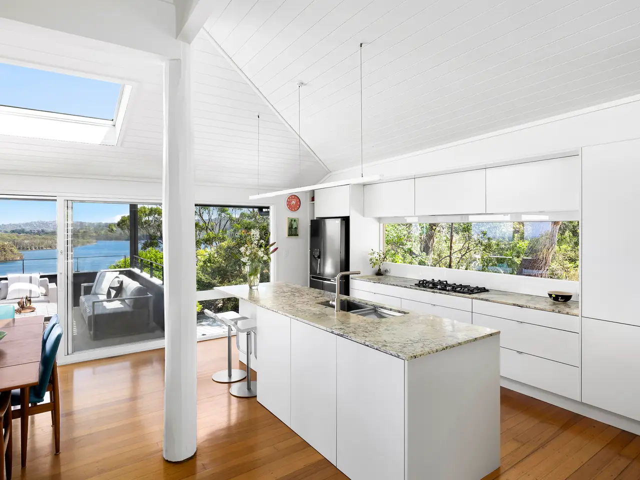 INSPECTION VIA PRIVATE APPOINTMENT ONLY Suspended above the water with views that shift like a painting, this remarkable residence carries a creative spirit through every light-filled space. Vast panels of glass draw the eye to expansive lake and ocean vistas, while the warmth of stone and timber grounds the design in nature. Four bedrooms plus a flexible studio, home office or gym invite imagination and expression. Incredibly private and surrounded by bushland, it's a haven where you can listen to the wind in the trees, watch the colours of the day unfold and feel a million miles from anywhere. Mere moments to Narrabeen Lakes nature trails, surf beaches, eateries, schools, shops and express city transport. - Elevated above the water expansive lake and ocean views - Creative spirit flows through light-filled, open living spaces - Vast glass panels frame the landscape like living artwork - Warm stone and timber textures evoke nature's harmony - An artistic fusion of mid-century style and coastal calm - Original sandstone gas fireplace, raked ceilings, skylights - Bright, airy gourmet kitchen with quality gas appliances - Serene bedrooms, master with sweeping views and ensuite - Flexible layout with separate studio, office or gym options - Underfloor heating in main bathroom and separate bath - European style laundry with handy ironing board system - Balcony with vergola, lush native gardens and local plants - Outdoor beach shower, solar, garden shed and utter privacy - Immersed in bushland, with potential to subdivide STCA - Double carport and ample additional off-street parking - Moments to popular surf beaches, eateries and city buses