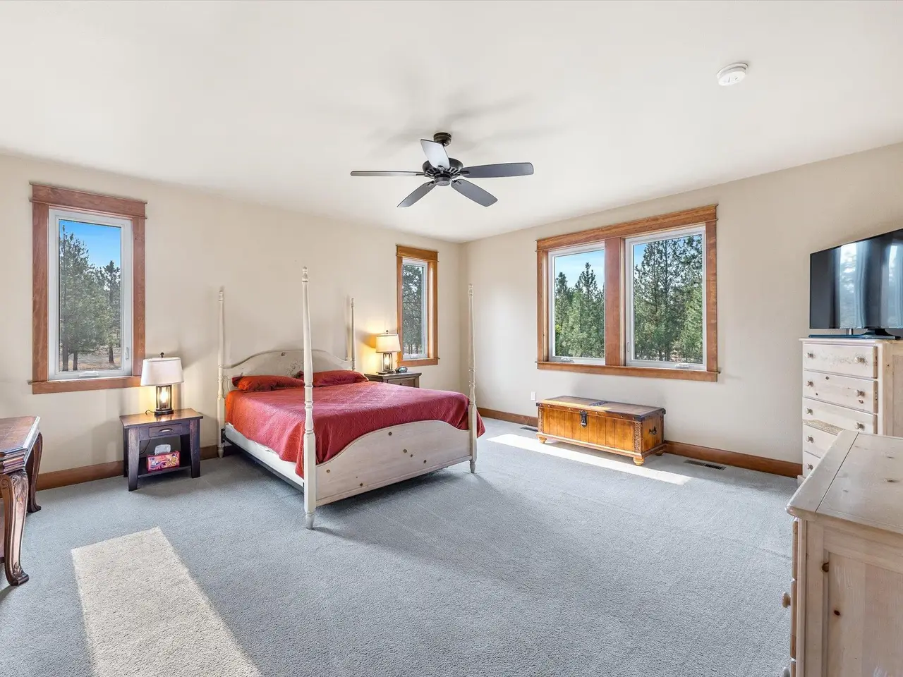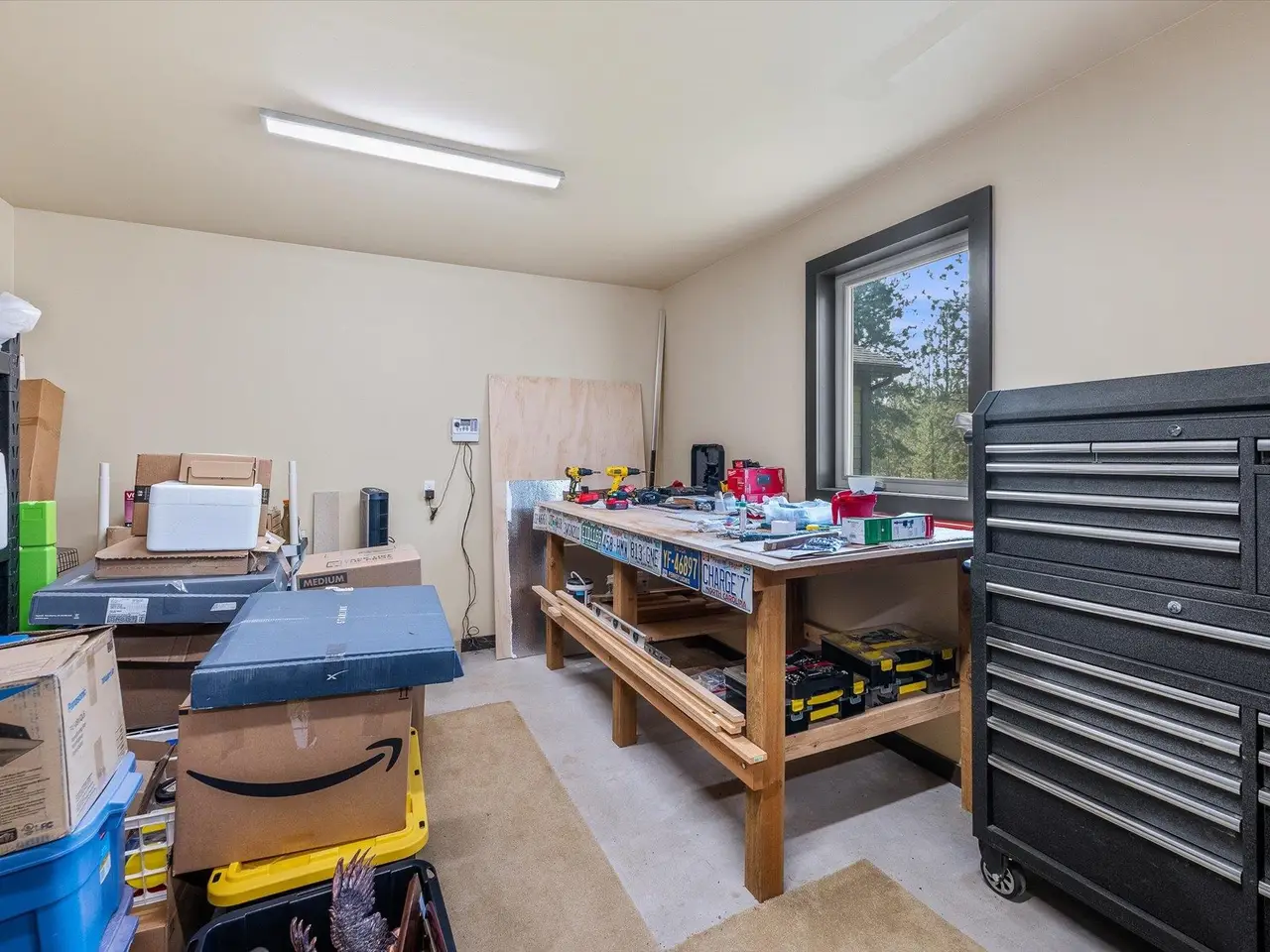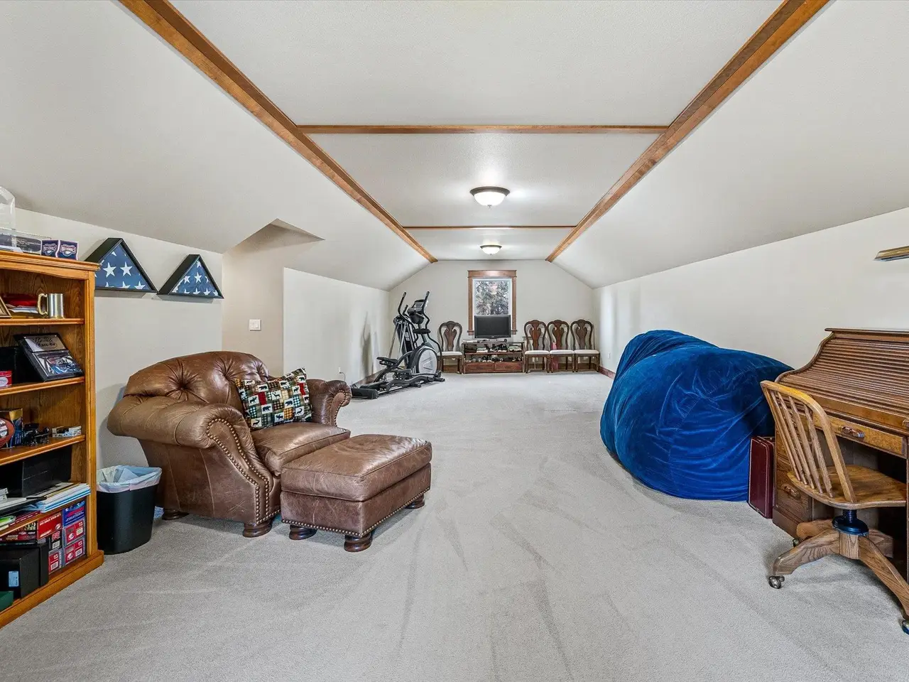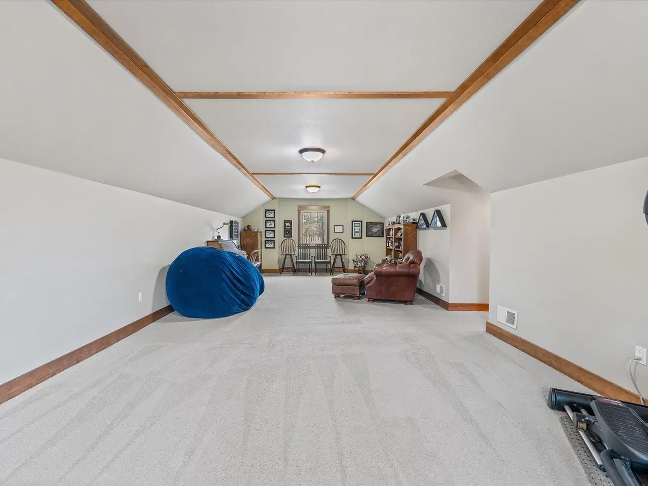 Discover a thoughtfully designed rancher by Tim Lewis, where rustic warmth seamlessly blends with modern, efficient floor planning-every square foot is purposeful. Centered around a river-rock fireplace, the living area offers both style and ambiance, with sweeping views of the front 19.55-acre parcel. Primary Suite opens into two walk-in closets and an inviting garden tub, creating the perfect blend of comfort and luxury. Three-Season Porch: Step into the serene outdoors from your porch-ideal for morning coffee and peaceful wildlife watching; deer and moose are delightful frequent visitors. An upper-level bonus room offers flexible potential-perfect for future bedrooms, a workspace, or a media lounge. A generously sized, oversized garage includes a handy workshop area-great for hobbyists, storage or project space. Beautifully custom crafted, thoughtfully balancing rustic character with modern utility, all within a design that respects your time and space. Enjoy the beautiful walking trails around the property.