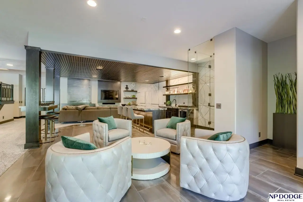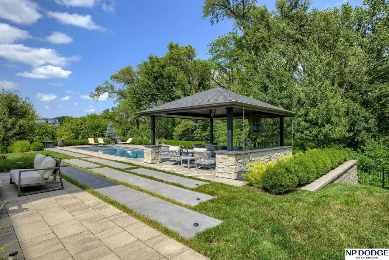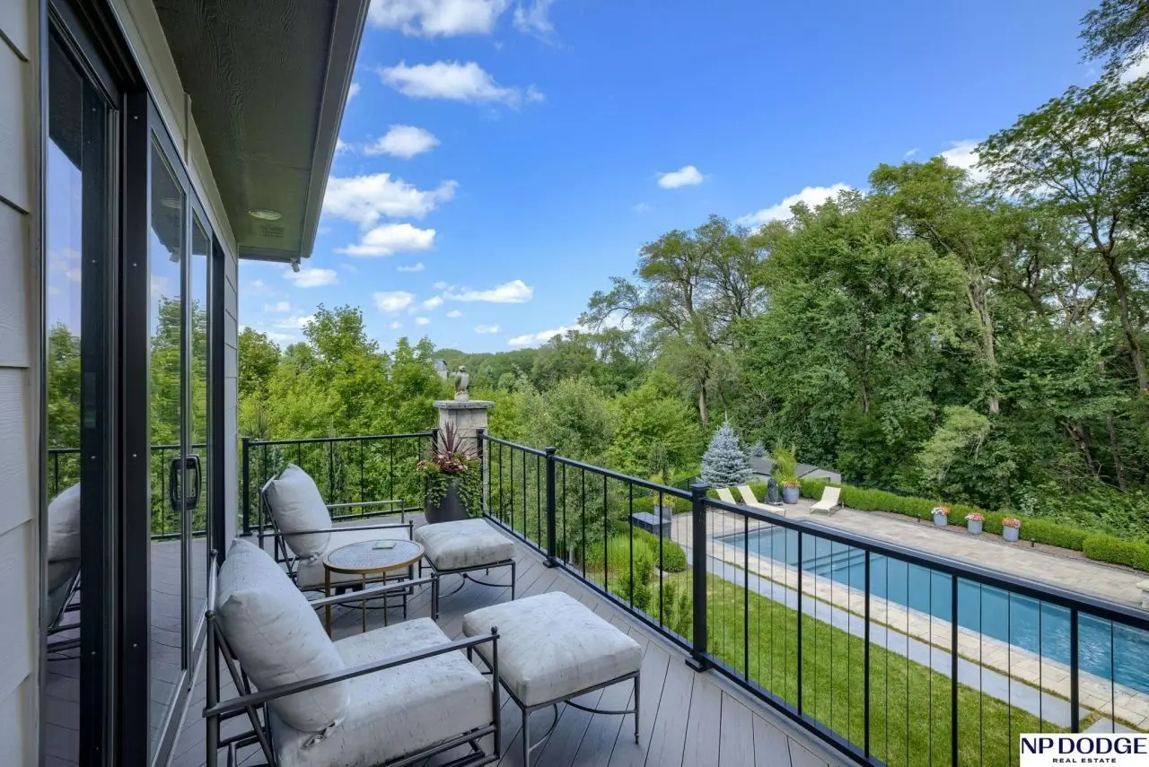 Over 6,200 sq. ft. of luxury in this 6 bed, 6 bath home with 5-car garage on an oversized private lot backing to trees. Thoughtfully designed with expansive rooms, custom built-ins, and high-end finishes. Gourmet kitchen with top-of-the-line appliances and dual-entry oversized pantry. All second-floor bedrooms are en-suite with walk-in closets. The primary suite offers a private deck overlooking the pool, spa-like bath with soaking tub, walk-in shower, and oversized custom closet. Lower level includes large living spaces, designer wall features, full bar, and temperature-controlled glass wine room. Outdoors features a resort-style pool with custom cover, freestanding lanai, and built-in BBQ station. No neighbor on north side ensures exceptional privacy. Located in the desirable Elkhorn School District.