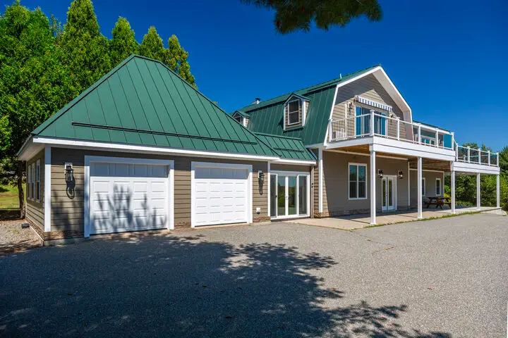 Nearing Completion! Nestled on ten private acres along the western shore of Graham Lake in Ellsworth, this property offers generous indoor and outdoor living space. This charming residence features two bedrooms with en-suite baths on the second floor, an open kitchen, dining, and a great room, all opening onto a deck showcasing beautiful, scenic views. A large study with custom shelving is perfect for remote work, and the great room provides ample space for both living and additional sitting areas. The main level includes an exclusive entry into the primary suite, which boasts two oversized walk-in closets, a bath, and direct access to an outdoor patio. An adjacent bedroom with a private entry offers potential for an in-law suite, with direct access to a utility room, half-bath, heated single-bay garage, and whole-house automatic 13kW Generac generator. Purchased in 2022, this home has been subject to a substantial, whole-house renovation now nearing completion. A complete exterior overhaul promotes energy efficiency and low-maintenance living; a standing seam metal roof. Outside, perimeter walls wrapped in rigid, foam board insulation, replacement exterior entry doors, all new Paradigm, double-hung, Low-E vinyl, replacement windows with reinforced framing, insulated with stone wool. Inside includes; new lighting and paint throughout, and one of the two second-floor bathrooms received a full remodel. The remaining baths were outfitted with new fixtures and toilets. The Seller's contractor is actively working to complete the installation of all new cedar wood textured LP SmartSide lap siding, corner boards, window & door trim, fascia boards, and soffits. The former deck has been re-engineered with all new structural materials, TimberTech, composite decking, and railing system. Located just minutes from Ellsworth, with Acadia National Park and Route 9 nearby. DO NOT ENTER DRIVEWAY, permission is required.