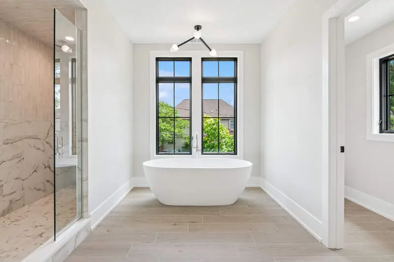 Luxurious primary suite with spa-like bath