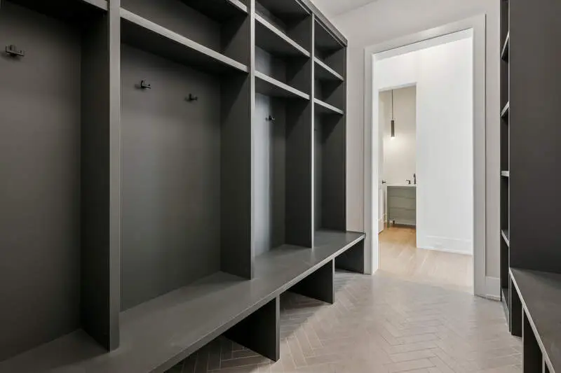Custom-built mudroom with walk-in closet