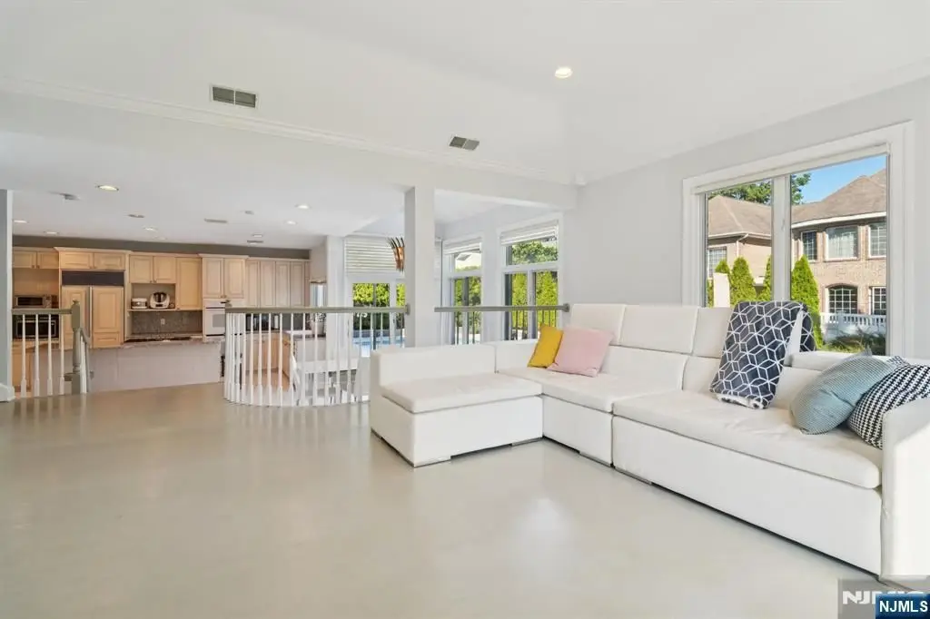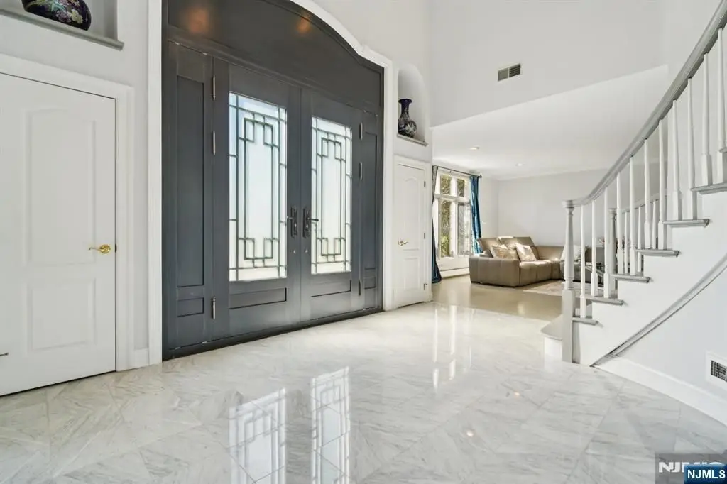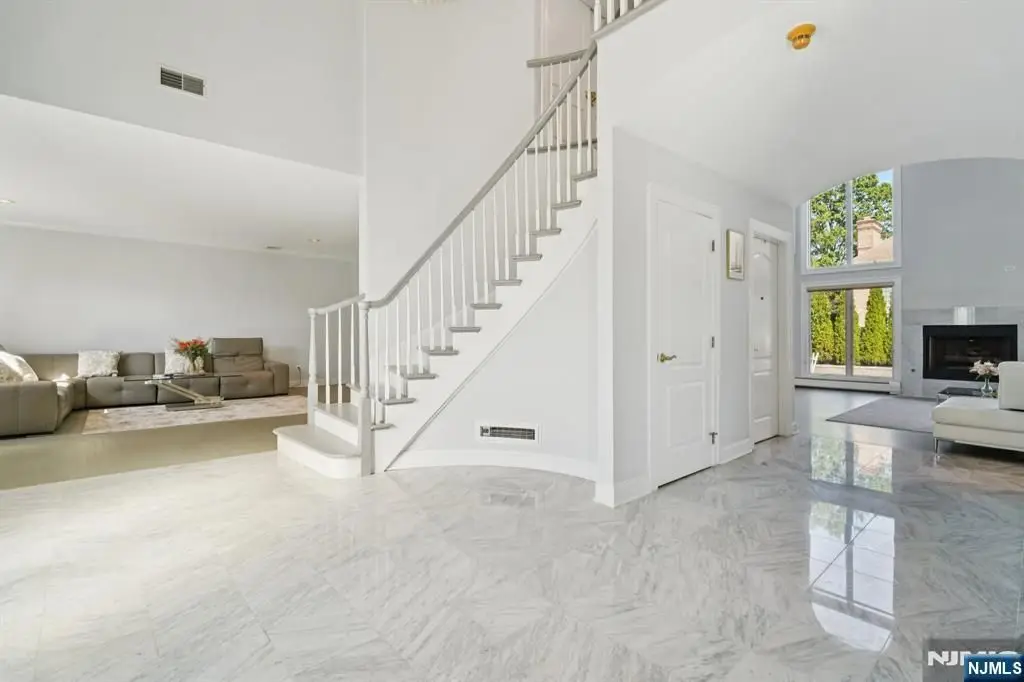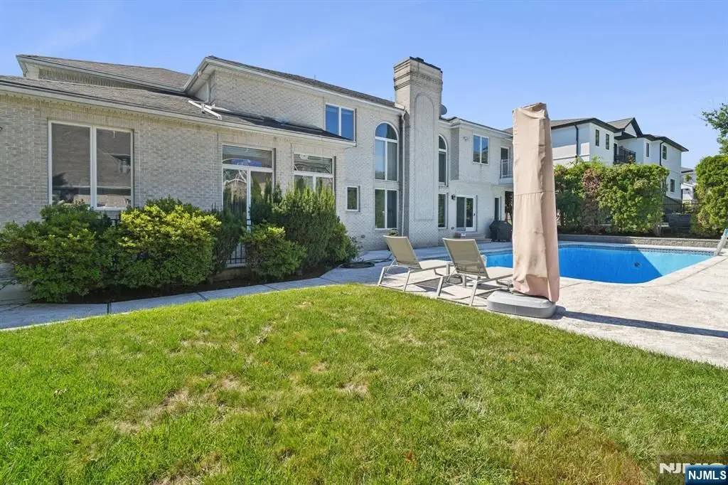 Impressive all-brick center hall colonial in the coveted North Cliffs, offering approx. 8,000 sq ft of beautifully finished living space. A grand two-story entry opens to a sun-filled great room with cathedral ceilings and fireplace, creating the perfect backdrop for gatherings. The elegant layout includes a formal dining room, private library with French doors, and a spacious living room. The gourmet kitchen is appointed with custom cabinetry, granite counters, center island, and an inviting breakfast area overlooking the pool and landscaped yard. Adjacent is a comfortable sitting area designed for everyday living. The home offers 5 spacious bedrooms and 6.5 baths, including a stunning primary suite with sitting area, fireplace, spa-like bath, walk-in closets, and a private balcony. Each additional bedroom features an en-suite bath and generous storage. A separate guest suite provides added privacy. The fully finished walk-out lower level includes new flooring, a large recreation area, full bath, and flexible space for entertaining or gym. Outdoors, enjoy manicured grounds with multiple patios and an in-ground pool, ideal for summer living. A rare opportunity in one of Englewood Cliffs most desirable neighborhoods.