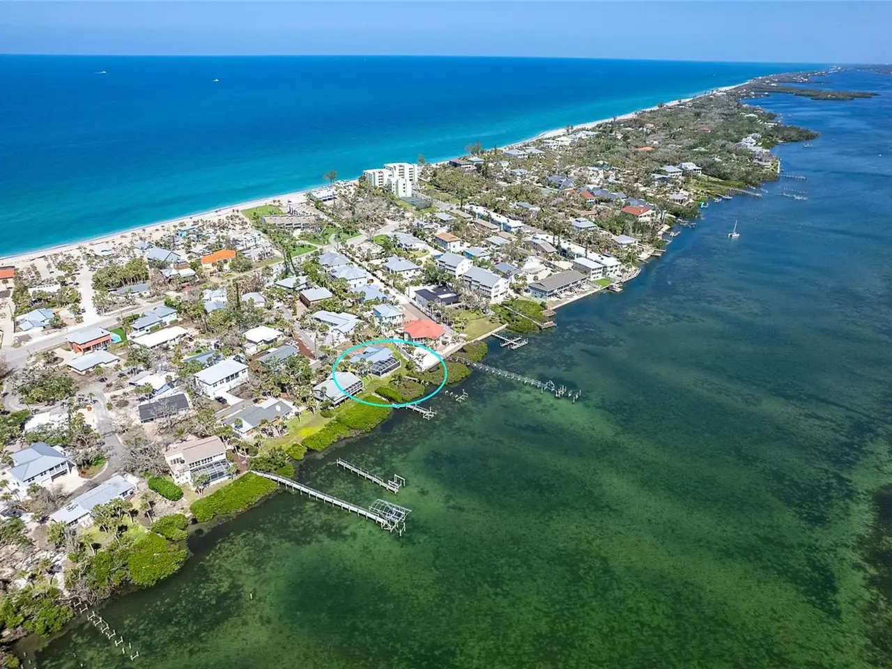 MANASOTA KEY – BAYFRONT HOME WITH DOCK & DEEDED BEACH ACCESS This home sustained storm surge damage and is being sold as is. It is a fantastic opportunity to restore and personalize a rare waterfront property on Manasota Key. Welcome to Pelican Shores, where this charming 2-bedroom, 2-bath pool home with a 1.5-car garage sits on an impressive nearly one-third-acre lot and 71 feet of water frontage—offering direct access to the Intracoastal Waterway, a private deeded dock, and community deeded beach access just steps across the street. Whether you're envisioning morning beach walks, launching a kayak, or boating directly from your backyard, this home delivers the ultimate Florida lifestyle. The spacious lanai and caged pool, added in 2020 with stylish brick pavers, is the perfect place to relax and entertain while taking in stunning sunrises over the Bay. In the evenings, cross the street and head for the beach for breathtaking Gulf sunsets. Although the home was affected by the recent storm, many key features remain intact—all windows are Hurricane Impact-rated and undamaged. The sliding glass doors in both the kitchen and living room are currently being replaced with new Hurricane Impact, already ordered for installation. The interior showcases cathedral ceilings, polished Terrazzo floors, and a spacious kitchen that flows into a large utility room for your washer and dryer, and a convenient full guest bath located off the laundry area and garage—designed for practical, everyday living. The formal living and dining rooms offer direct access to the lanai through the soon-to-be-installed sliding glass doors, and both bedrooms are generously sized, providing plenty of comfort and space. This is a rare chance to own on the Intracoastal Waterway in a location just moments from local restaurants, entertainment, and all that Manasota Key has to offer. Don’t miss this opportunity, call today to schedule your private showing