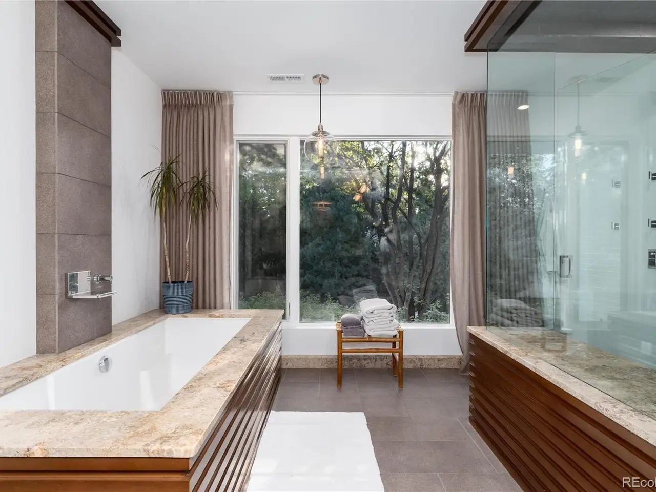 Spa-like Primary Bathroom with steam shower and freestanding tub
