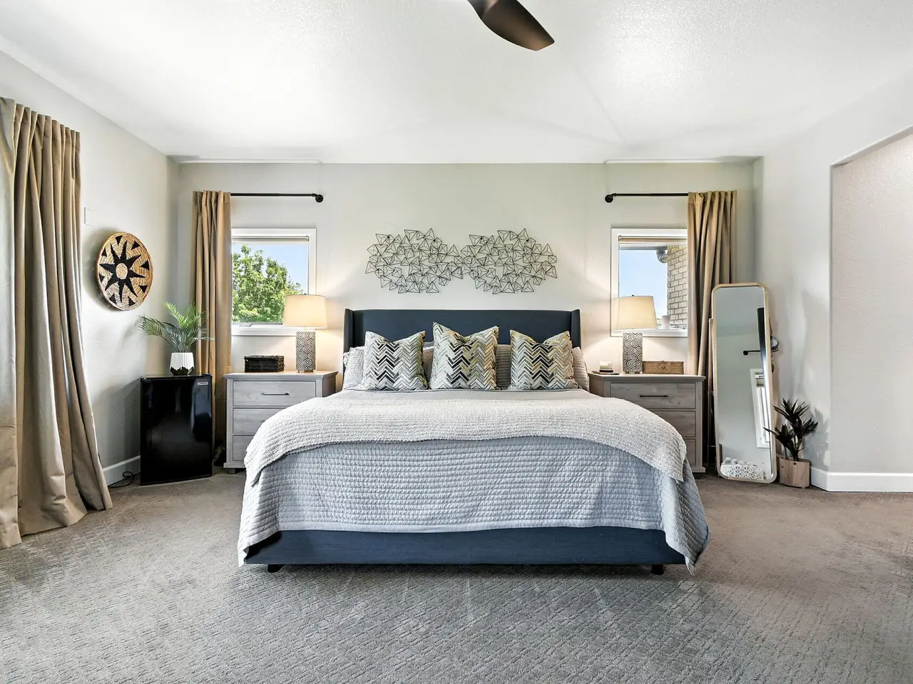 Tucked at the end of a cul-de-sac in Baxter Farm, one of Erie's most prestigious neighborhoods, this stunning estate sits on 2.3 acres of professionally landscaped grounds w/sweeping unobstructed mountain views. Main level features dramatic entry, soaring ceilings, sun-filled living room w/floor-to-ceiling windows, Gourmet kitchen w/Viking range, double ovens, breakfast bar, & pantry, Spacious main-floor primary suite, 2 ensuite bedrooms, laundry, & patio w/hot tub. Upstairs, enjoy a family room w/wet bar, study, bath, & view deck. Walkout basement adds 3,000+ sq ft of beautifully finished space, including media room w/ projection screen, 2 bedrooms, 2 baths, exercise room, 2 flex rooms, safe room, & multiple walkouts to lower patio. Outdoor living is elevated w/multiple decks & patios for relaxation & entertaining. Oversized 6 car garage, w/ extra-tall drive through doors, offers exceptional versatility. This home is the perfect combination of luxury, privacy & Colorado lifestyle.