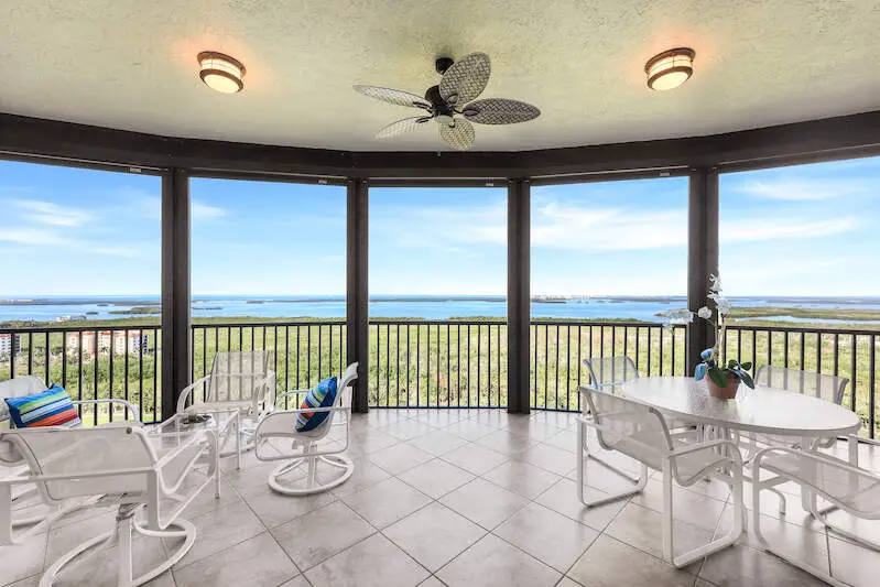 Welcome to exceptional high-rise living in the vibrant gated community of The Colony at Pelican Landing. Here, you will call home the 20th-floor of Treviso. This luxurious residence offers panoramic views of Estero Bay, the Gulf of Mexico, the city lights of Bonita Springs, and the lush greenery of The Colony golf course and estuaries; the views are truly breathtaking. This stylish condo with 2 bedrooms plus a den boasts chiseled marble floors that enhance the spacious living room, family room design, and relaxed dining, where everyone enjoys sparkling water views. Also included are two parking spaces, private storage, a resort-style pool with a pavilion, guest suites, a theater, fitness, and club room. The many amenities of The Colony include tennis, pickleball, bocce, kayaking, canoeing, walking trails, a playground, and a private beach club. Located conveniently near Coconut Point Mall, The Promenade, RSW International Airport, theaters, and lively downtown Bonita Springs, this residence offers both tranquility and the excitement of city life. Come experience the ultimate blend of luxury and leisure in this remarkable property.