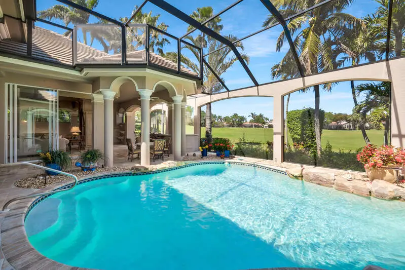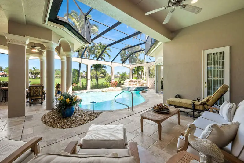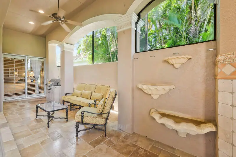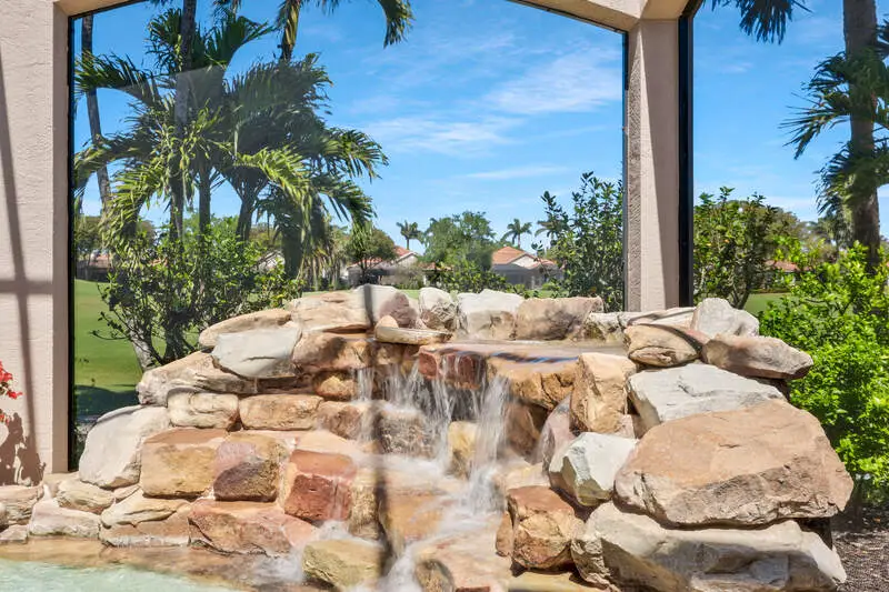 Expansive lanai with waterfall feature
