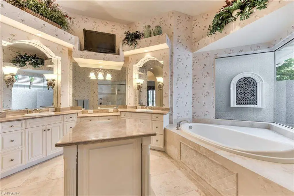 SKIP the waitlist and head directly to the tee box, with the option to buy a full golf membership with this spectacular Frey & Son home in the exclusive Lake Forest neighborhood in Shadow Wood. Enjoy a cocktail on your balcony with truly one of the best property views of lake, #1 North, #9 North and yet another lake. Located in the peaceful center of Shadow Wood, this estate home is one of a kind. Newly painted, new roof 2023, natural gas provides power protection with a whole home generator and heats your huge pool and spa. The lanai will cinch this for an elite buyer-a massive space with outdoor kitchen, huge sun-drenched spaces, as well as a covered area which is received from the family room by a massive 90 degree set of sliding glass doors. Two garages, 2 and 1 car. Master bedroom suite includes a closet that is easy to get lost in. Kitchen updated with quartz counters. Walk-in pantry, as well as an adjacent room for wine and other storage. Upstairs guest suite includes a salon with wet bar, bath with double sink and that gorgeous balcony view. Fiber to the home provides lightning fast internet and television. Member owned Shadow Wood Country Club offers 54 holes of championship golf, 2 club houses, 9 Har Tru tennis courts, bocce, outdoor fire pits, access to a private beach club, fitness center, full-service spa, pickle ball, and private restaurant. New Lifestyle Amenity Center will add 2 resort style pools with zero-depth entry, lap lanes and dedicated kids pool, poolside restaurant & bar, 6 indoor pickleball courts, new racquet pro shop and a grab & go cafe. Great location close to shopping, airport, beaches and much, much more. THIS HOME IS A MUST SEE!