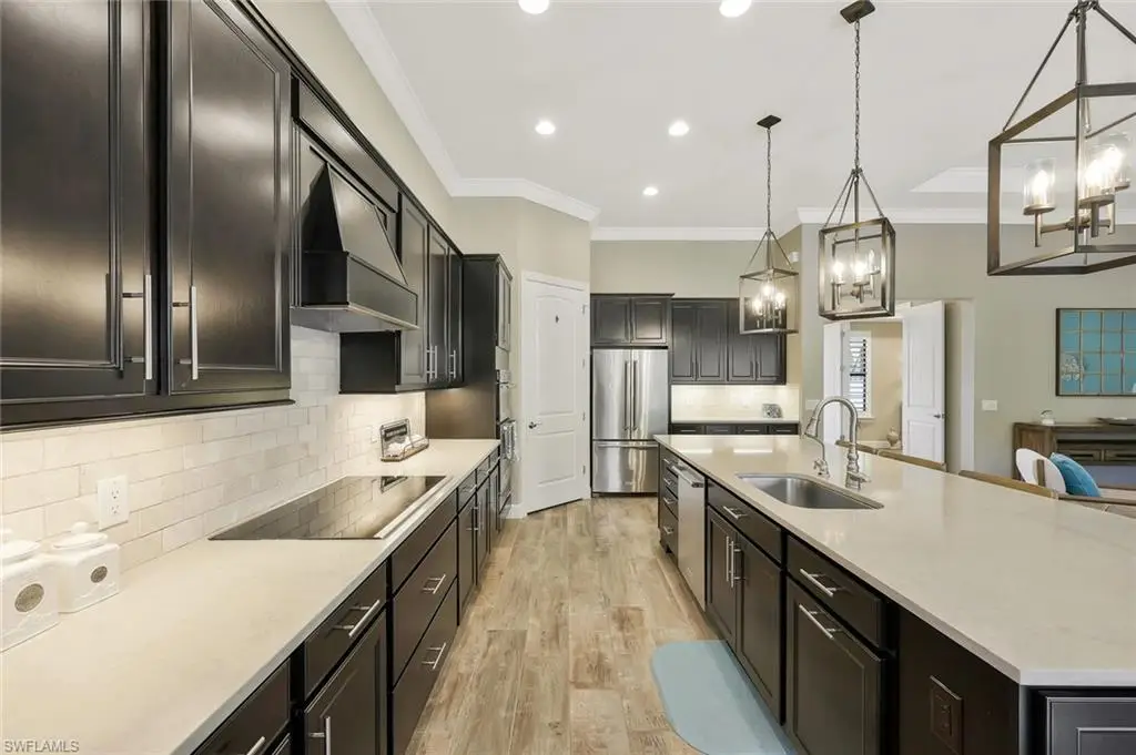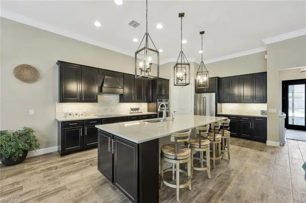 Enjoy the perfect combination of privacy and elegance in this beautiful Pinnacle model Single Family Home located in the Pulte community of Corkscrew Shores! Quietly located near the end of the street, there are many extras and upgrades to this gorgeous 3 Bedroom + Den/3 Bath home which features a peaceful lake and nature preserve view. The owners have updated the entire screen enclosure adding a panoramic picture window panel, upgraded the HVAC system, and re-surfaced the garage with an epoxy floor. Other upgrades include a well appointed outdoor kitchen, hurricane impact resistant doors and windows, heated saltwater pool, above ground spa, custom cabinetry in the gourmet kitchen, designer landscape lighting, and an extended 3 car garage. (4 ft.) Corkscrew Shores is a 24 hour gated community with award winning amenities including tennis, pickleball, bocce, fitness center, walking, biking, kayaking, and a fishing pier. There are no CDD fees and RSW airport, Miromar shopping/dining, and Florida Gulf Coast University are all close by.