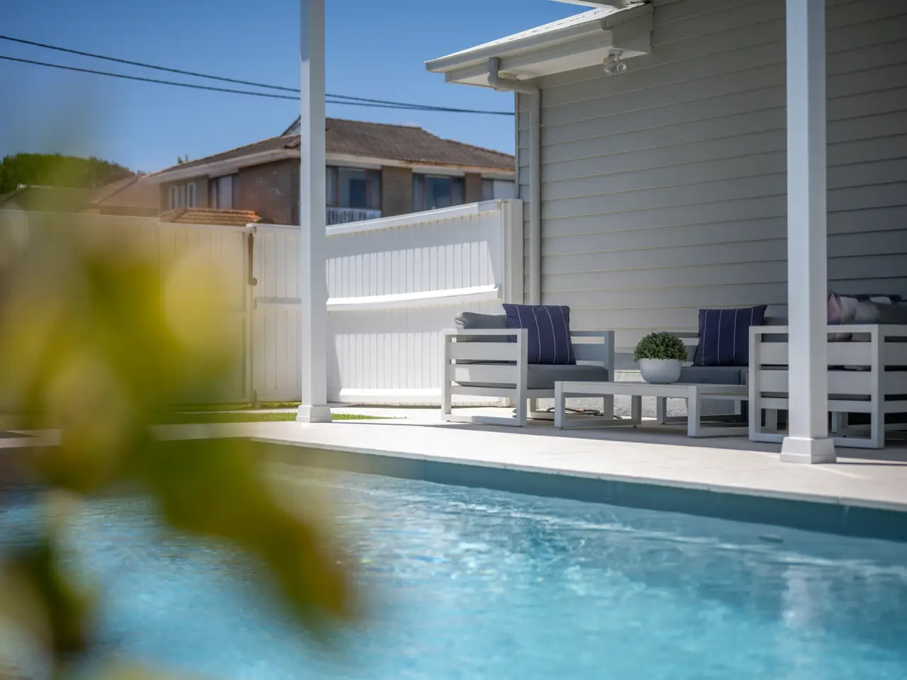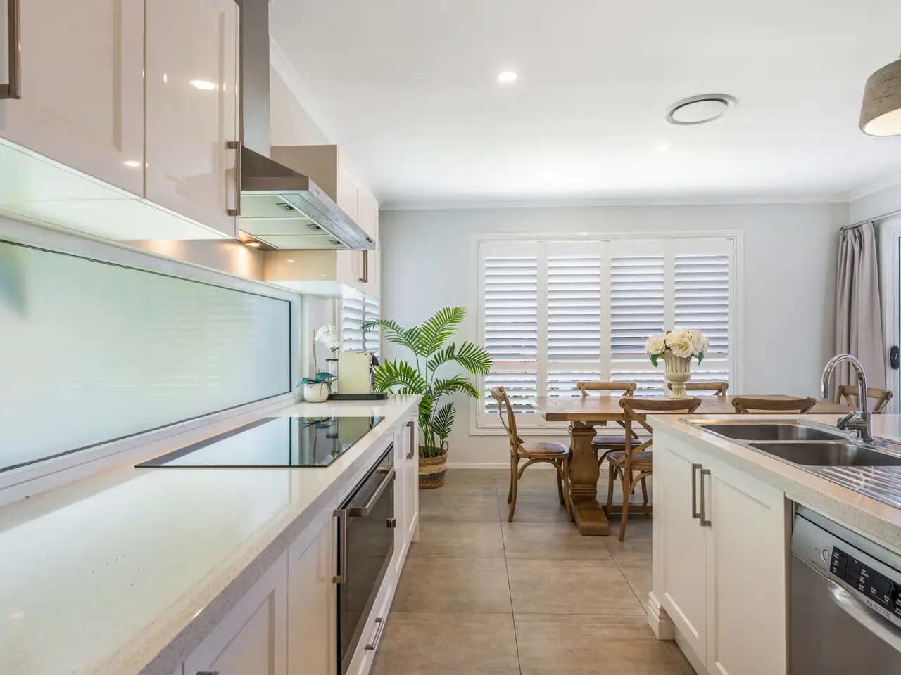 Sparkling resort-style pool Deluxe Caesarstone kitchen with island and walk-in pantry