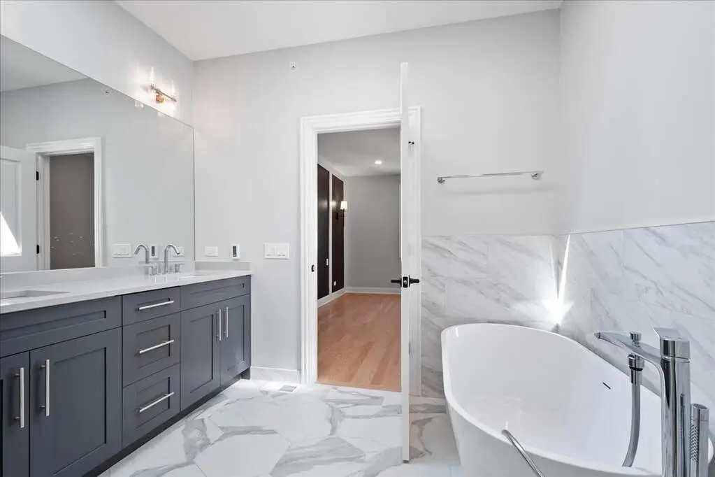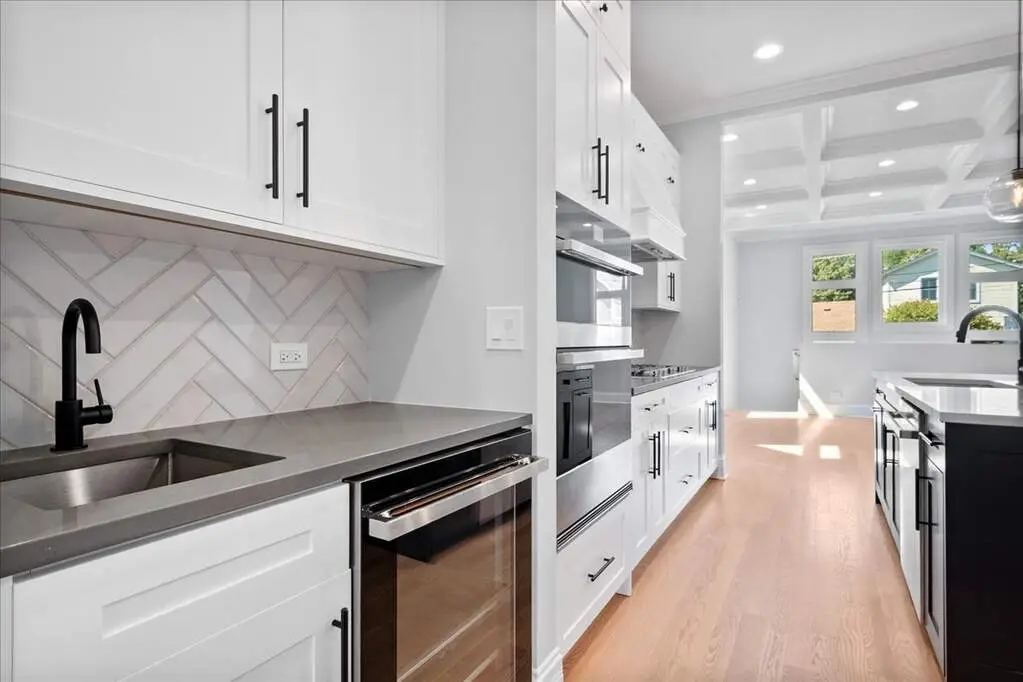 Stunning Newer Construction in Prime Evanston Location Welcome to 2012 Maple, a beautifully crafted single-family home that blends modern design with timeless details. The sharp exterior features board-and-batten siding, black-framed windows, and a charming covered front porch that sets the tone for what's inside. Step into a sun-drenched, open-concept living and dining area-perfect for both everyday living and entertaining. The chef's kitchen is a true showstopper, complete with professional-grade appliances, a large center island, butler's pantry, walk-in pantry, custom white shaker cabinetry with under-cabinet lighting, a herringbone tile backsplash, and sleek quartz countertops. The adjoining family room impresses with a coffered ceiling, custom millwork accent wall, and abundant natural light. A rear mudroom with built-in cubbies keeps everything organized. The second floor is home to a serene primary suite with designer accent wall, bedside sconces, two walk-in closets, and a spa-like bath featuring dual vanities, a spacious glass-enclosed shower, and a freestanding soaking tub. Two additional bedrooms, a full hall bath, and laundry complete this level. The finished lower level offers incredible additional living space with a large recreation room, full wet bar, spacious bedroom, full bath, and convenient laundry room. A two-car parking pad adds to the convenience. All this in an unbeatable location-just steps from the Purple Line, downtown Evanston, shops, groceries, restaurants, the lakefront, and more. 2012 Maple is the perfect blend of style, comfort, and location-ready to welcome you home.