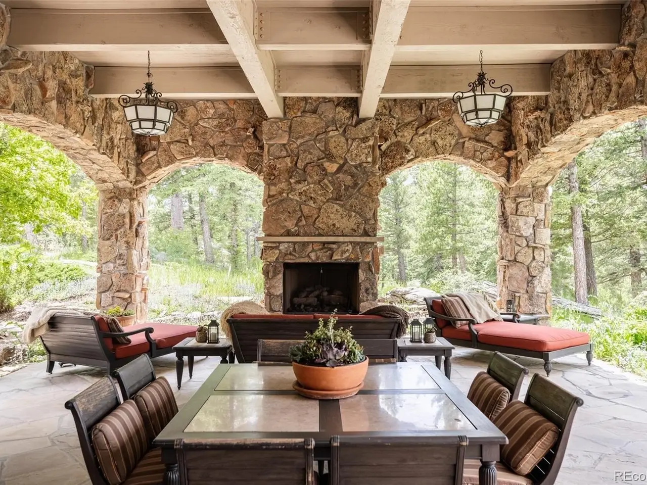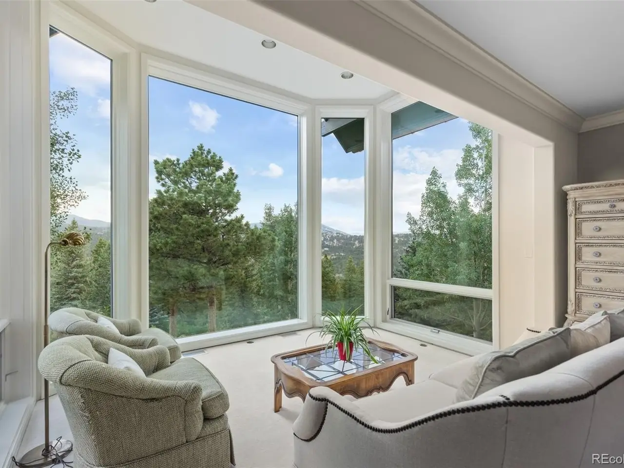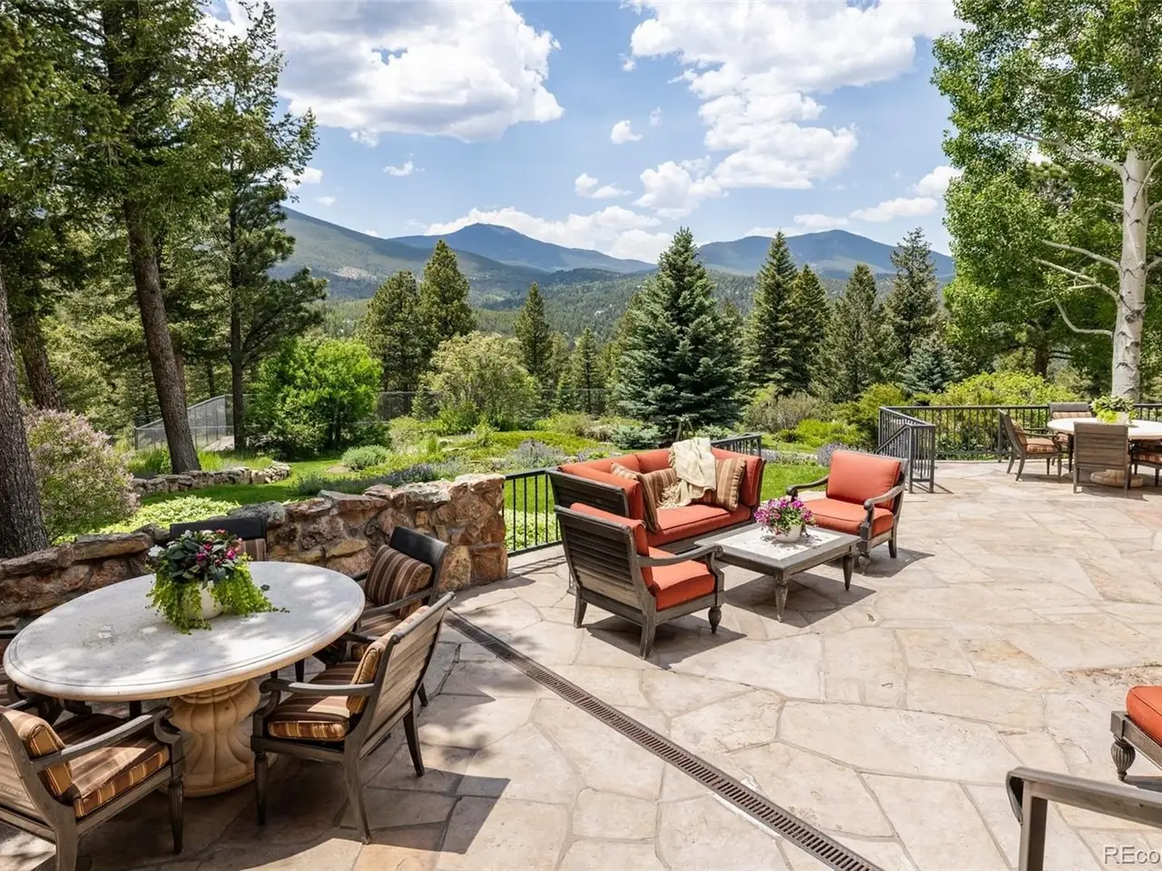 Perched atop two lots comprising 14.5 acres on the pinnacle of Soda Creek, 1275 Silver Tip Lane is the quintessential Colorado property. It offers the utmost in privacy and seclusion - an estate surrounded by mature foliage, bands of aspens and towering pines. Easy access to downtown Evergreen, an hour to top ski resorts or DIA and only 30 minutes to downtown Denver make this retreat ideal for those seeking all that Colorado has to offer. Ten private patios, tiered terraces, gas firepit and fireplaces, an outdoor bbq and bar, and two fully fenced acres all offer views that are magnificent and seemingly endless. The home’s exquisite craftsmanship and unique features are unparalleled and inimitable - handcrafted pecan wood is a marvel, an indoor swimming pool and spa, full-sized tennis court with basketball hoop and viewing deck, classic bar with temperature-controlled wine cellar, home theater, gym, indoor water feature with waterfalls…the list goes on. The grand staircase in the great room leads to the primary suite, positioned to offer some of the best views on the property from the private balcony or sitting area with floor-to-ceiling windows. Relaxation is top of mind while soaking in the tub watching the sunset. Three additional bedrooms offer similar comforts, each with its own 5-piece ensuite bathroom, walk in closet, mountain views and private patio. A guest suite is a haven of its own, providing accommodations such as a full bathroom, sitting area, and private patio. The kitchen’s limestone counters are illuminated by a glass atrium above. Two sinks, a professional grade La Cornue range, extra spacious paneled fridge and freezer, a walk-through pantry, and large island add ease and elegance to daily life. Additional flex spaces offer room for work, leisure or anything in between. This property delivers in every realm and will impress even the most discerning buyers.