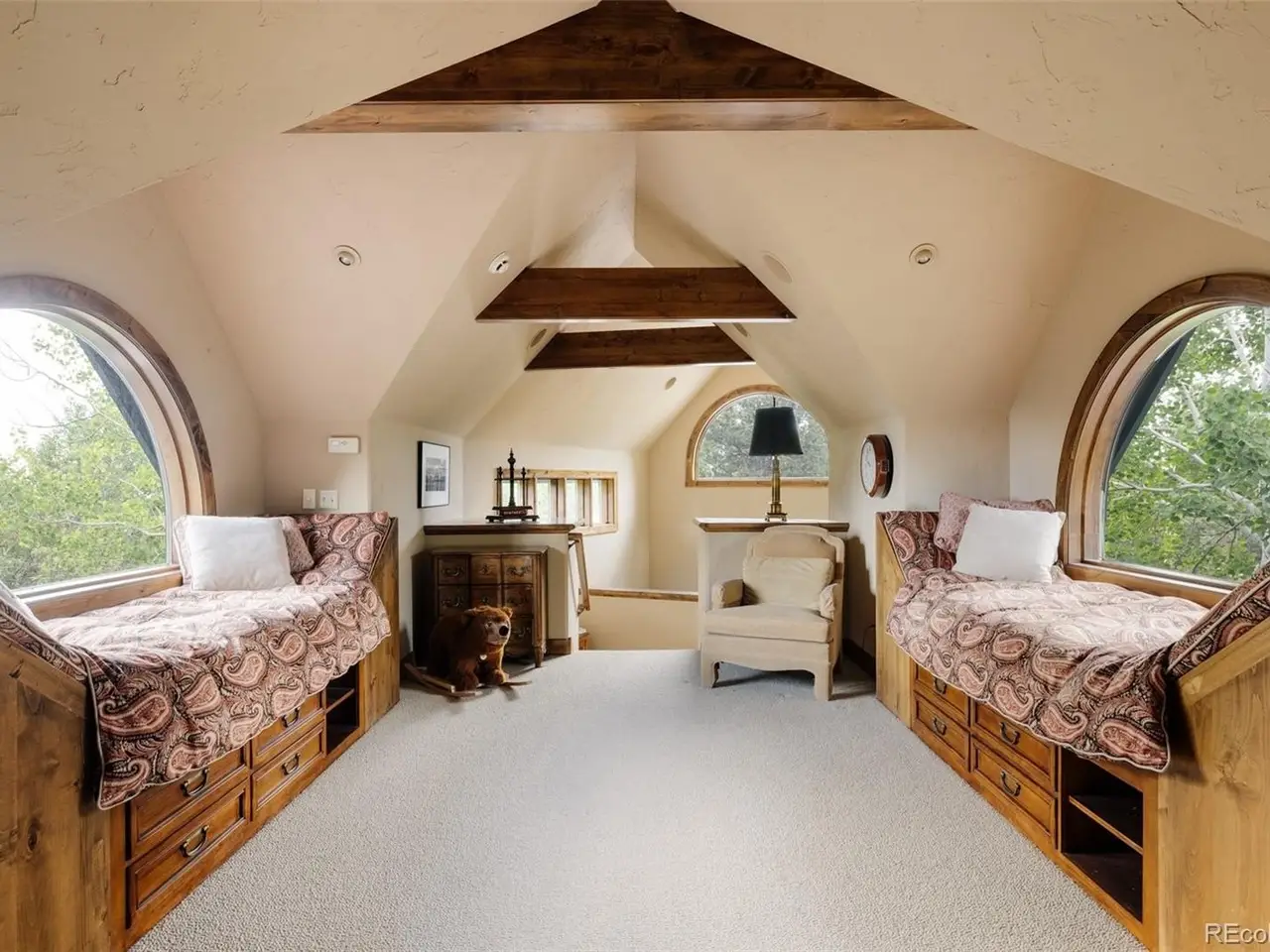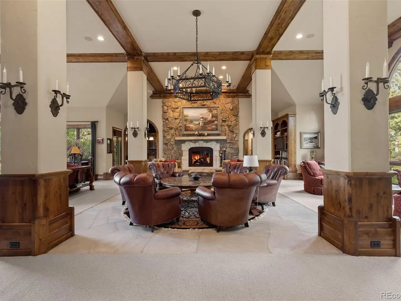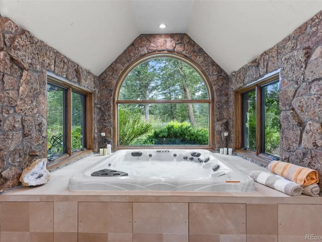 Perched atop two lots comprising 14.5 acres on the pinnacle of Soda Creek, 1275 Silver Tip Lane is the quintessential Colorado property. It offers the utmost in privacy and seclusion - an estate surrounded by mature foliage, bands of aspens and towering pines. Easy access to downtown Evergreen, an hour to top ski resorts or DIA and only 30 minutes to downtown Denver make this retreat ideal for those seeking all that Colorado has to offer. Ten private patios, tiered terraces, gas firepit and fireplaces, an outdoor bbq and bar, and two fully fenced acres all offer views that are magnificent and seemingly endless. The home’s exquisite craftsmanship and unique features are unparalleled and inimitable - handcrafted pecan wood is a marvel, an indoor swimming pool and spa, full-sized tennis court with basketball hoop and viewing deck, classic bar with temperature-controlled wine cellar, home theater, gym, indoor water feature with waterfalls…the list goes on. The grand staircase in the great room leads to the primary suite, positioned to offer some of the best views on the property from the private balcony or sitting area with floor-to-ceiling windows. Relaxation is top of mind while soaking in the tub watching the sunset. Three additional bedrooms offer similar comforts, each with its own 5-piece ensuite bathroom, walk in closet, mountain views and private patio. A guest suite is a haven of its own, providing accommodations such as a full bathroom, sitting area, and private patio. The kitchen’s limestone counters are illuminated by a glass atrium above. Two sinks, a professional grade La Cornue range, extra spacious paneled fridge and freezer, a walk-through pantry, and large island add ease and elegance to daily life. Additional flex spaces offer room for work, leisure or anything in between. This property delivers in every realm and will impress even the most discerning buyers.