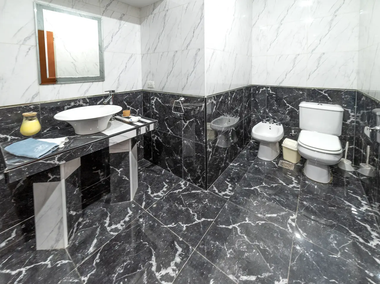 • Designer black-and-white granite flooring