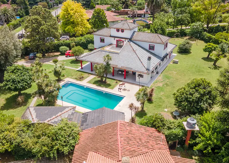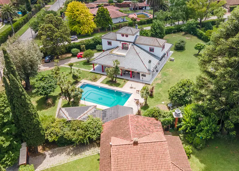 Luxury Art Deco Residence in Barrio Parque El Trébol, Ezeiza A one-of-a-kind property that embodies elegance and exclusivity. One of its walls bears the original signature of a globally renowned football icon — a cultural figure whose legacy transcends generations. This extraordinary detail grants the residence unparalleled historical and cultural value, transforming it into a true collector's piece. Perfect for those seeking not just a home, but a rare artifact symbolizing an unforgettable moment in history. An exclusive opportunity for those who value art, legacy, and prestige. Discover a Property That Redefines Elegance and Exclusivity Set in the heart of the prestigious Barrio Parque El Trébol, this magnificent residence blends the timeless charm of Art Deco architecture with modern amenities, all within a serene natural setting. Main Features: Covered area: 525 m² across two floors, plus attic. Lot size: 2,739 m² with curated landscaping and floral design. Swimming pool: 120 m² (8x15 m, 3 m deep). Five bedrooms (two en-suite), four full bathrooms, and an outdoor powder room. Spacious kitchen with breakfast area and separate laundry room. Expansive living room and grand entrance hall featuring designer pieces and a unique Murano chandelier. Covered garage with additional parking space. From its grand entrance, the residence showcases a design that perfectly balances sophistication and functionality. The ground floor hosts exquisitely decorated social and private areas, featuring black-and-white granite floors, emerald velvet furnishings, and artworks reminiscent of Argentina’s Belle Époque. The kitchen and dining area, connected by a central island, are bathed in natural light through large windows framing the garden and pool views. Upstairs, the bedrooms surround a private terrace designed for relaxation, where lapacho hardwood floors reflect the home’s uncompromising attention to quality. The outdoor space offers a seamless connection with nature. The designer swimming pool, surrounded by mature trees and manicured greenery, becomes the focal point for outdoor leisure and entertainment. Located in a neighborhood celebrated for its tranquility and security, this property is a unique opportunity for those seeking a distinguished, functional home. Ideal for discerning families or design enthusiasts who appreciate natural surroundings without sacrificing modern comfort. A Masterpiece in the Art of Living For exclusive inquiries and private viewings, please don’t hesitate to contact us.