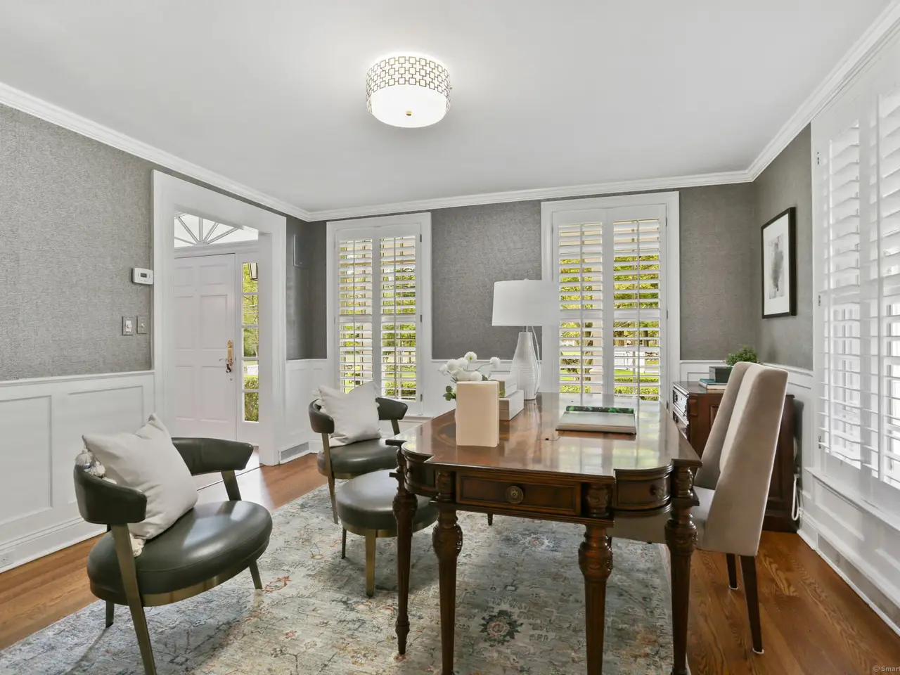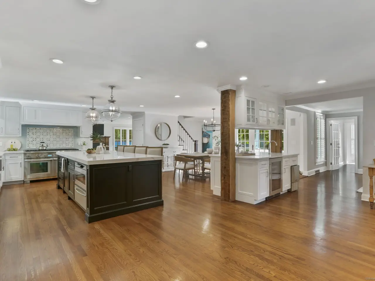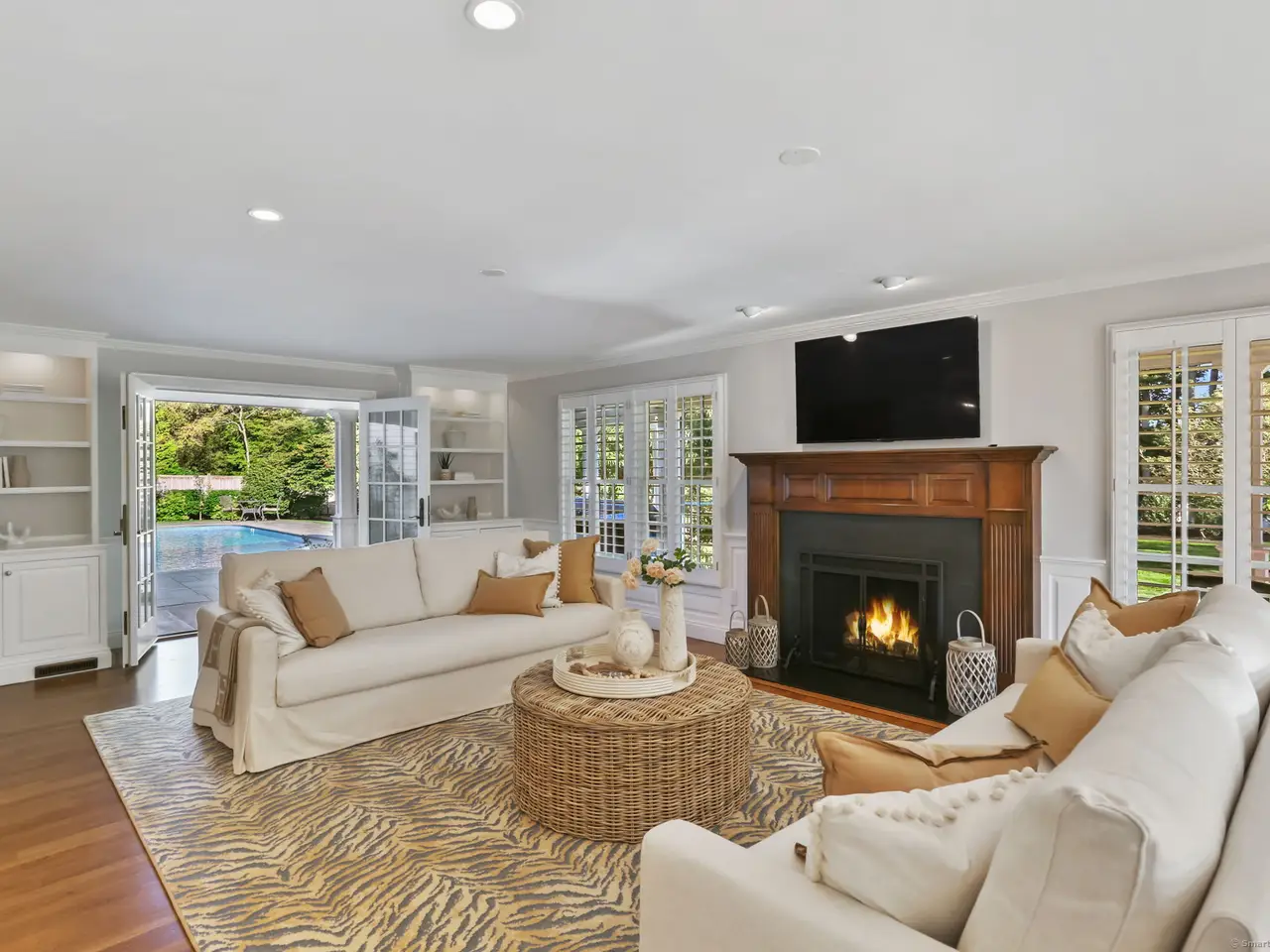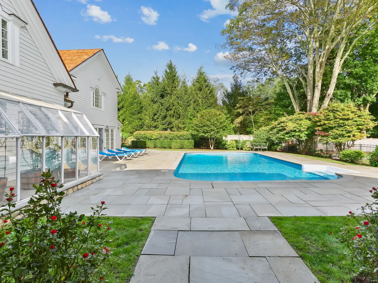 Welcome to 99 Old Academy Road, a distinguished Cape originally reimagined by local architect Richard Swann and thoughtfully expanded in 2019 by Alex Esposito. Arched-top dormers elevate the architecture, blending tradition with luxury. This residence offers 6 bedrooms plus a private two-level guest suite, 7 full / 3 half baths, all set on 2+ acres in lower Greenfield Hill. At the heart of the home, the kitchen offers an open layout with a spacious dining area, custom cabinetry, a floor-to-ceiling glass wine display, and walk-in pantry. The kitchen flows seamlessly onto a bluestone patio with a double-sided fireplace, perfect for indoor-outdoor living. The kitchen leads to the lower level, featuring a stone bar in the game room, a 10-seat cinema, and ample storage. The family room, with its built-ins, poolside views, and gas fireplace, offers an inviting year-round retreat, the main level also includes a private office. Upstairs, every bedroom is paired with its own private bath, each with a unique design. The custom mahogany library serves as a passage to the East Wing, where the main level offers a gym, poolside lounge, & outdoor shower, while the upper-level features three additional en-suite bedrooms and a second laundry room. Outdoors, enjoy wraparound mahogany decks, multiple bluestone patios, a heated pool, volleyball court, pergola gardens, and fruit trees. 99 Old Academy Road isn't just a home, it's a lifestyle of elegance, comfort, and unforgettable spaces.