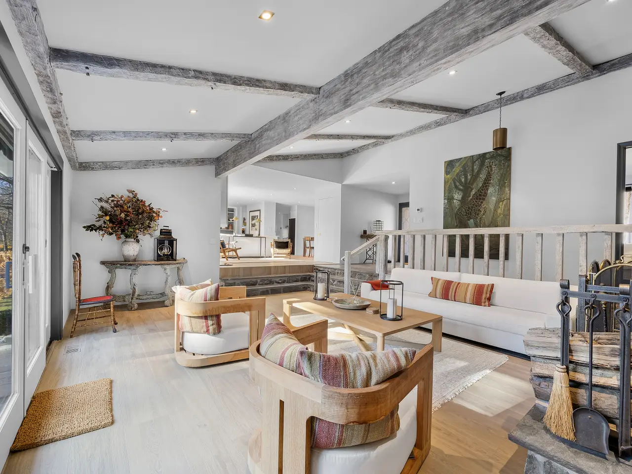 Situated on 2 manicured acres in Southport and surrounded by multi-million-dollar estates, this gated, European-inspired country home blends timeless charm with modern elegance. A white-pebble drive, stone walls, and sweeping lawns with mature trees create a private estate feel. Inside, the home balances warmth with sophistication. Offering 3 bedrooms on the main level and a 4th bedroom option in the lower level with full bath ensuite. Hand-hewn beams, slate entry, and a fieldstone fireplace pair seamlessly with crisp white walls, bold black accents, and striking designer lighting. The open yet defined layout features multiple entertaining areas, a sleek eat-in kitchen, and beautifully renovated baths. More than a home, this is an experience-an extraordinary Southport estate where modern luxury, historic charm, and a setting of rare beauty come together.